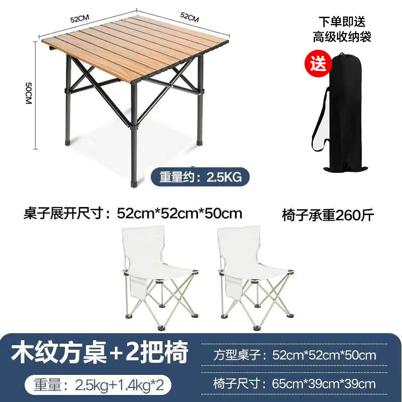 • 나뭇결 색상 - (두꺼운 브래킷) - 52cm 정사각형 테이블 + 의자 * 2 (무료 보관 가방)