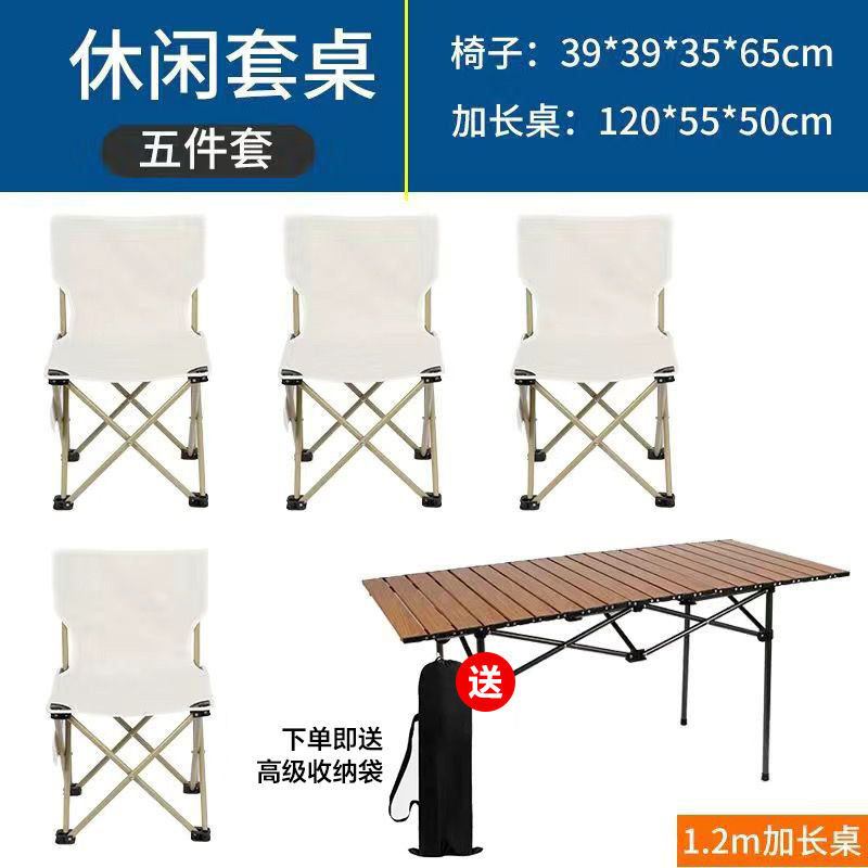 • 카키색 - (두꺼운 스탠드) - 120cm 싱글 테이블 + 의자 * 4 (무료 보관 가방)