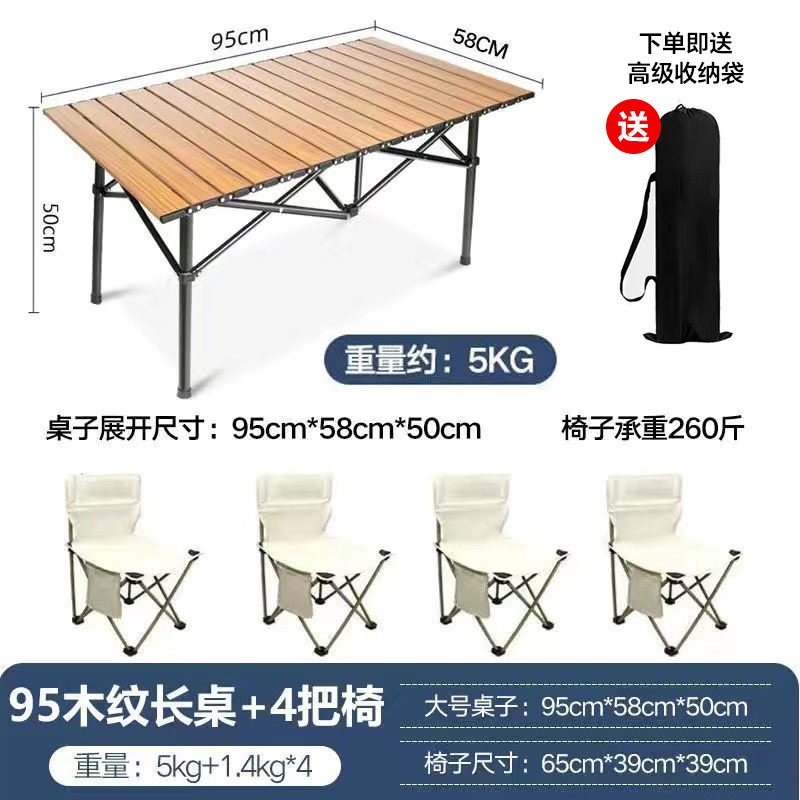 • 나뭇결 색상 - (두꺼운 스탠드) - 95cm 싱글 테이블 + 의자 * 4 (무료 보관 가방)