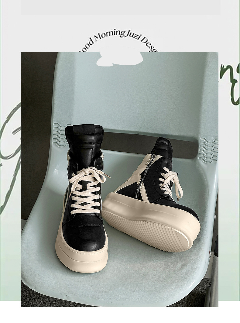 2024 새로운 반전 삼각형 플랫폼 신발 남성 가을 겨울 흑백 패션 정품 가죽 다크 블랙 하이 스트리트 커플 트렌디 신발스토어 가기