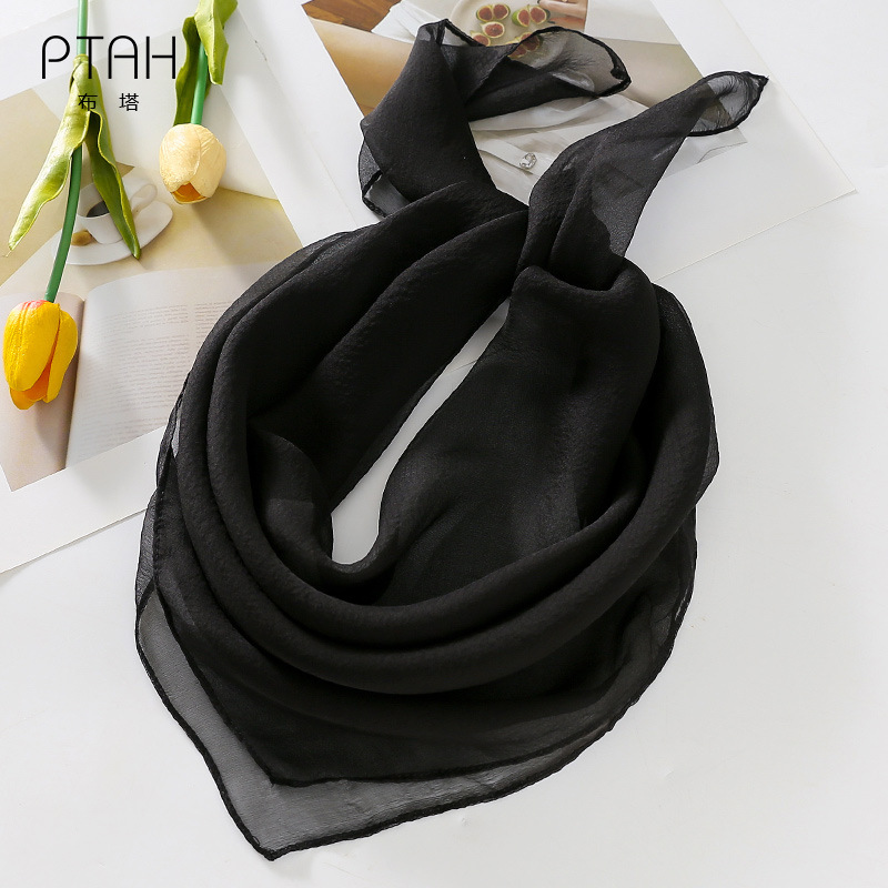 부타 뽕나무 실크 일반 스카프 여성용 실크 인쇄 스퀘어 스카프 솔리드 컬러 버블 소스 진주 새틴 스카프 PT23Q090