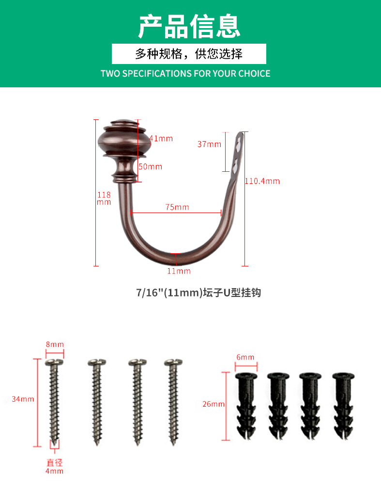 특수 커튼 액세서리 항아리 랜턴 U 자형 후크 국경 제조 업체 재고 철 페인트 천 커튼 로프 후크