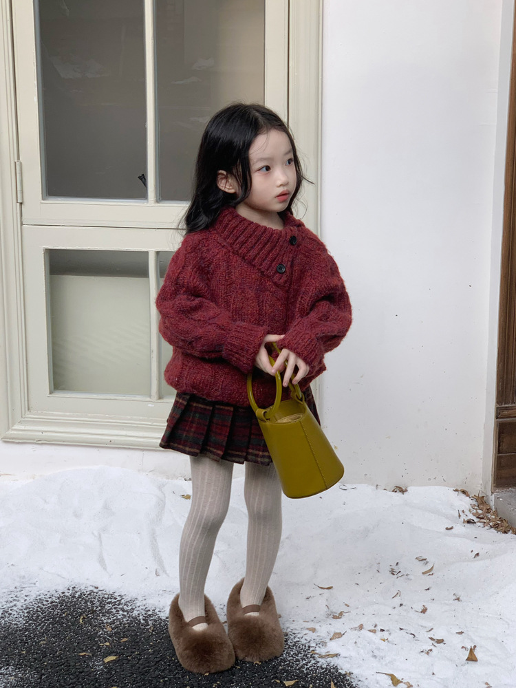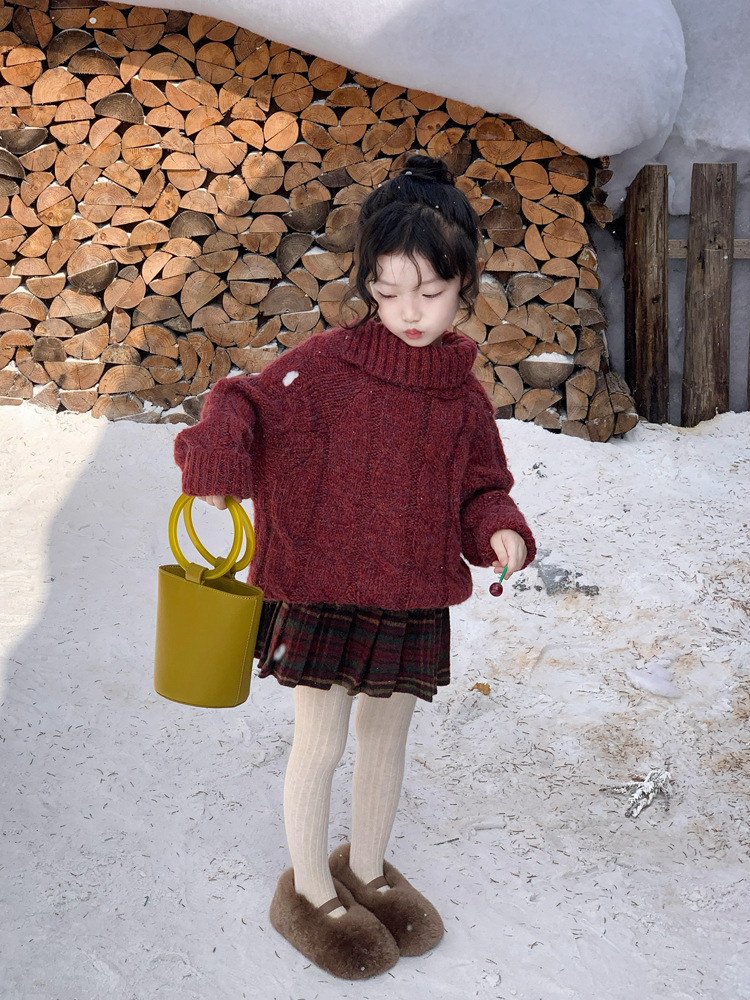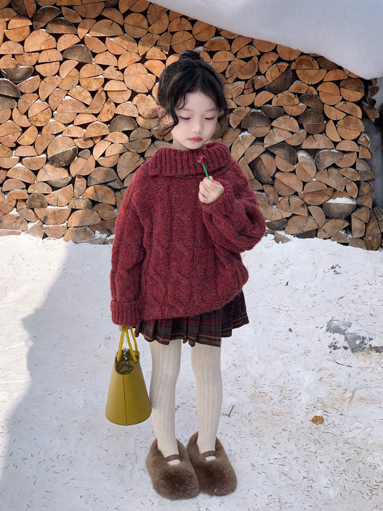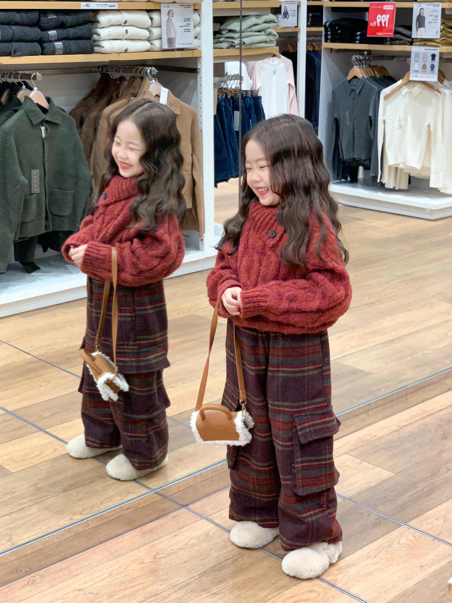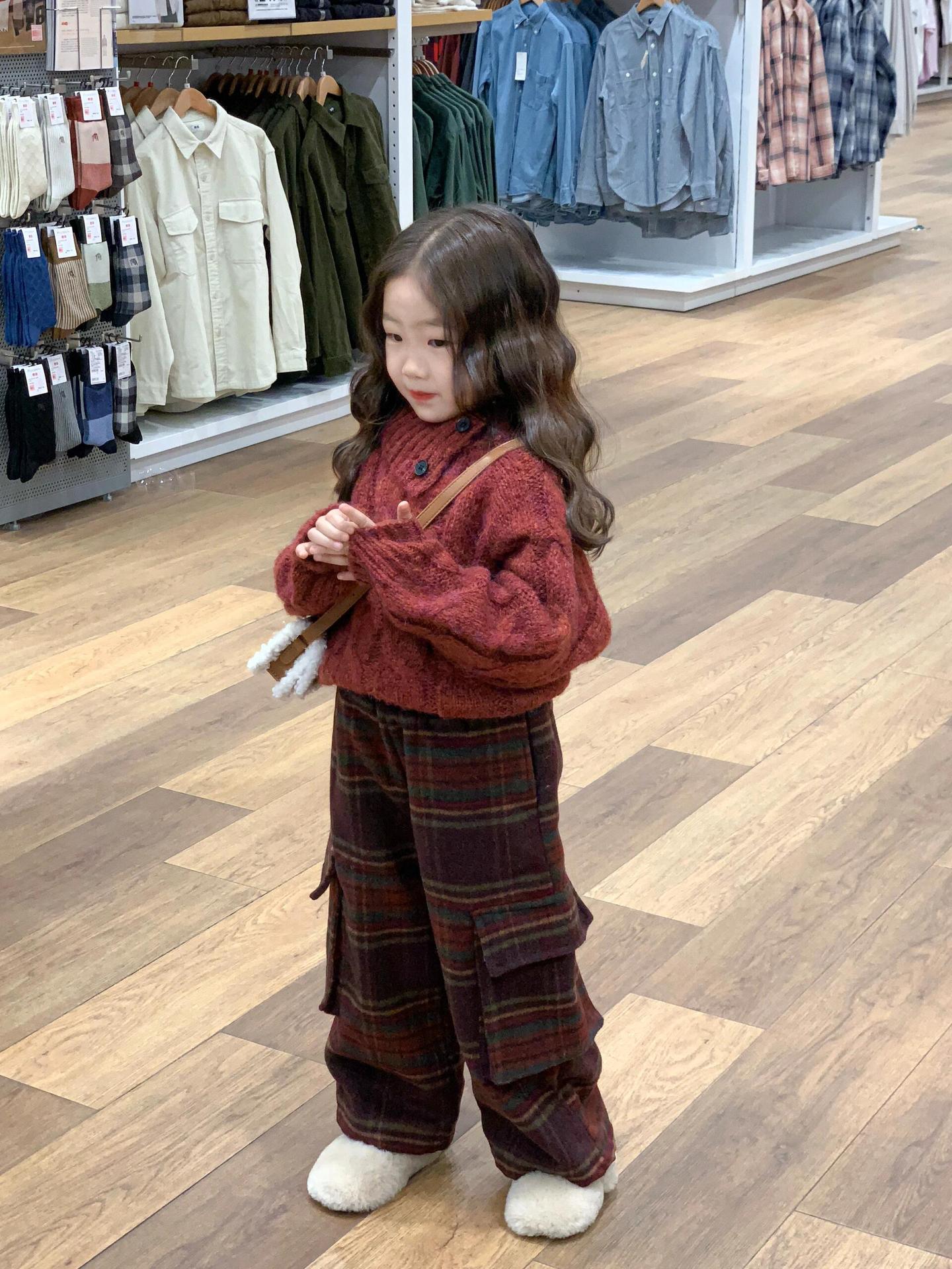 겨울 어린이 소녀 서양식 크리스마스 신년 레드 풀오버 스웨터 탑 모직 기모 프레슬리 바지 세트스토어 가기