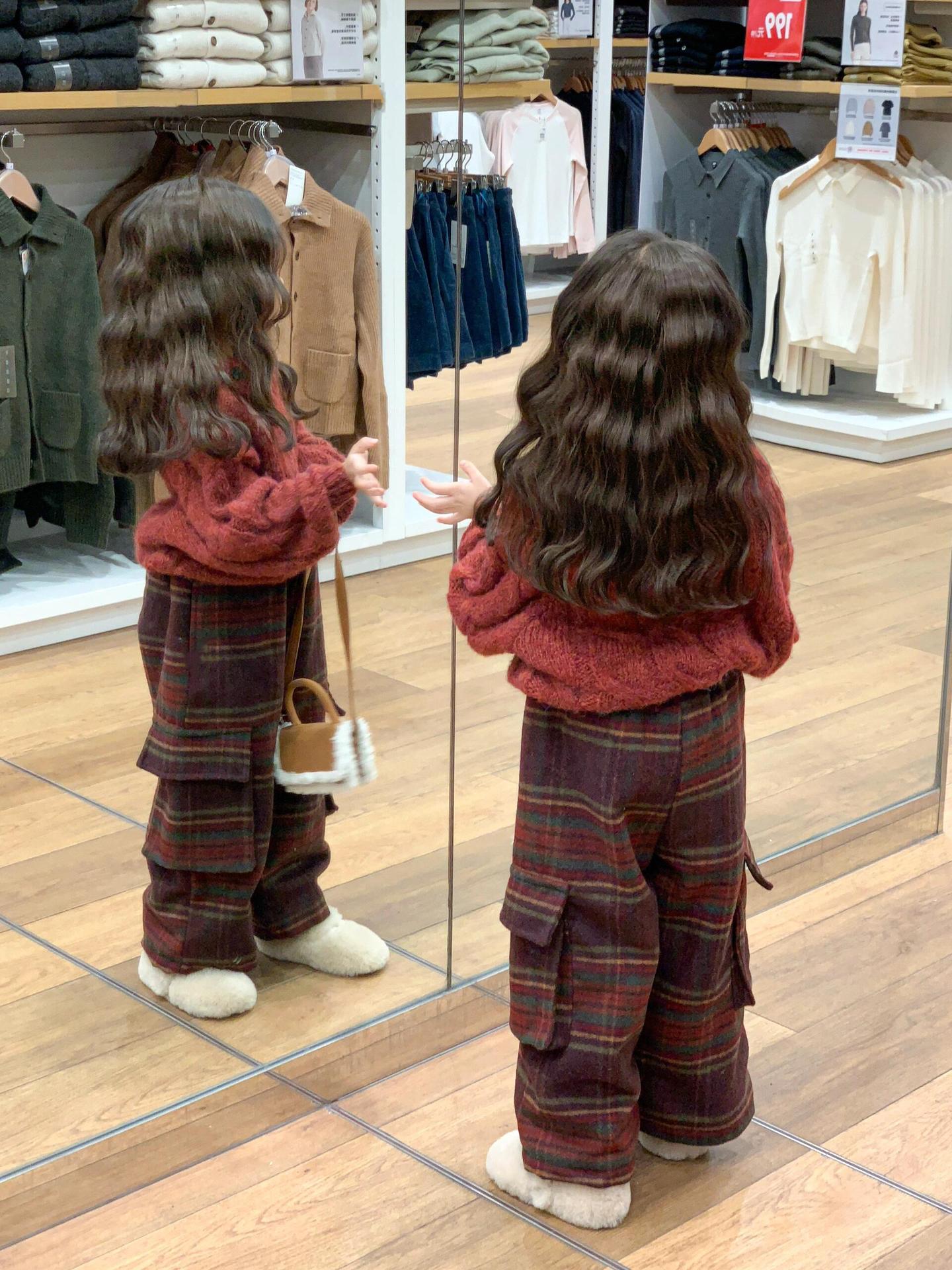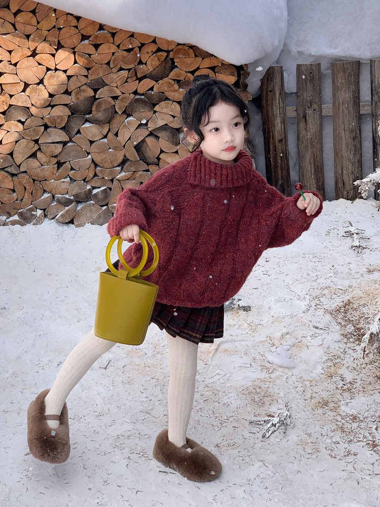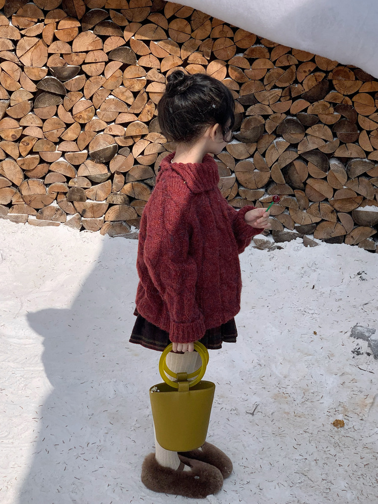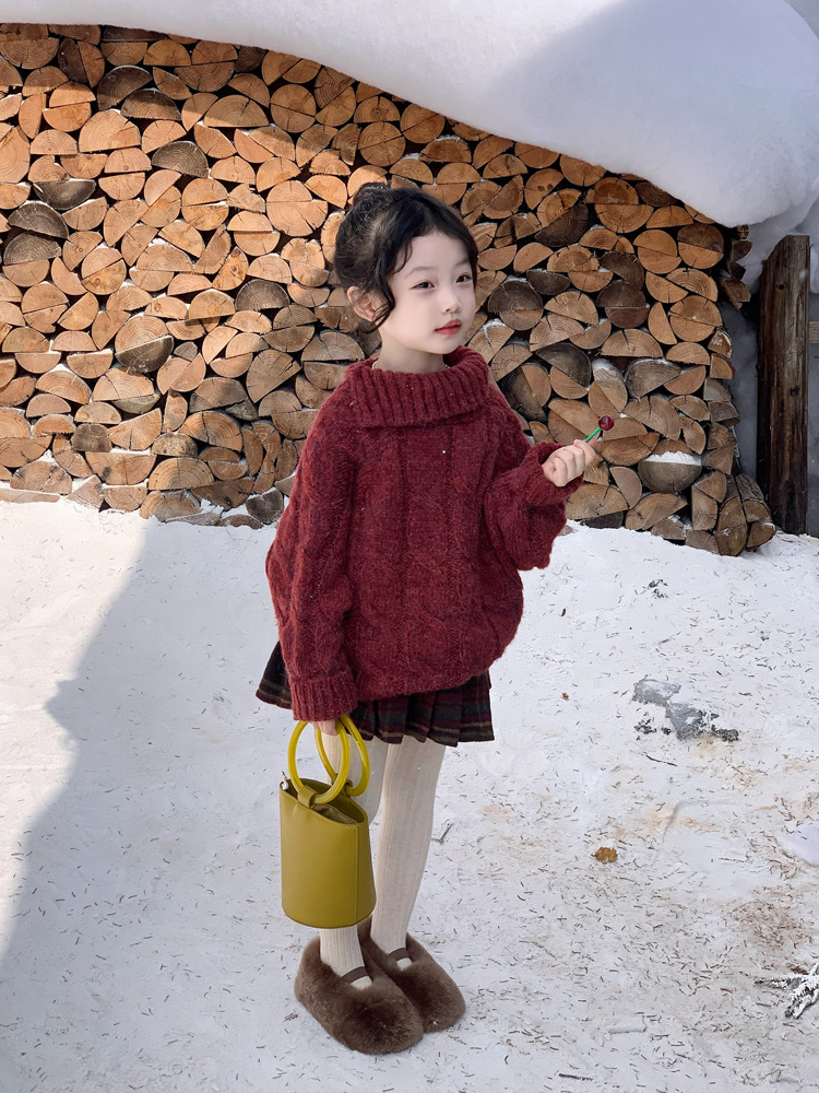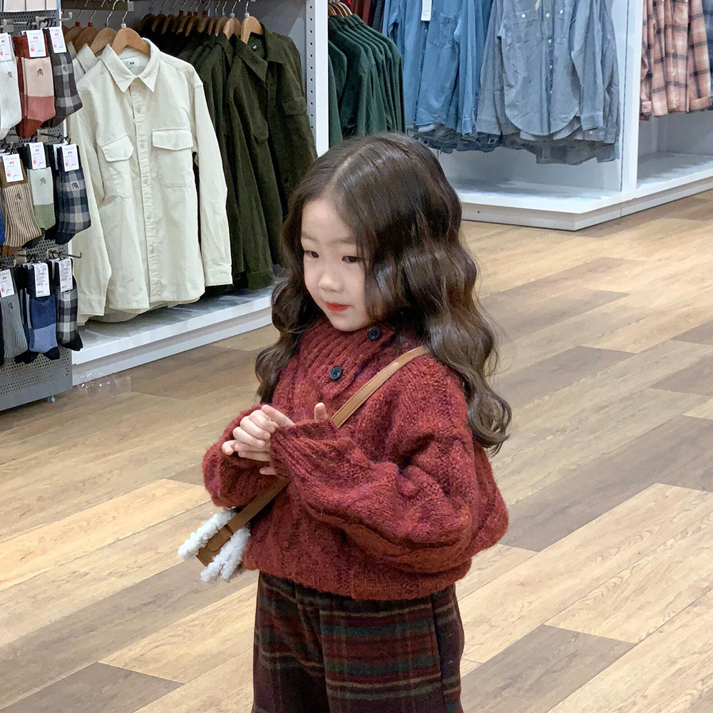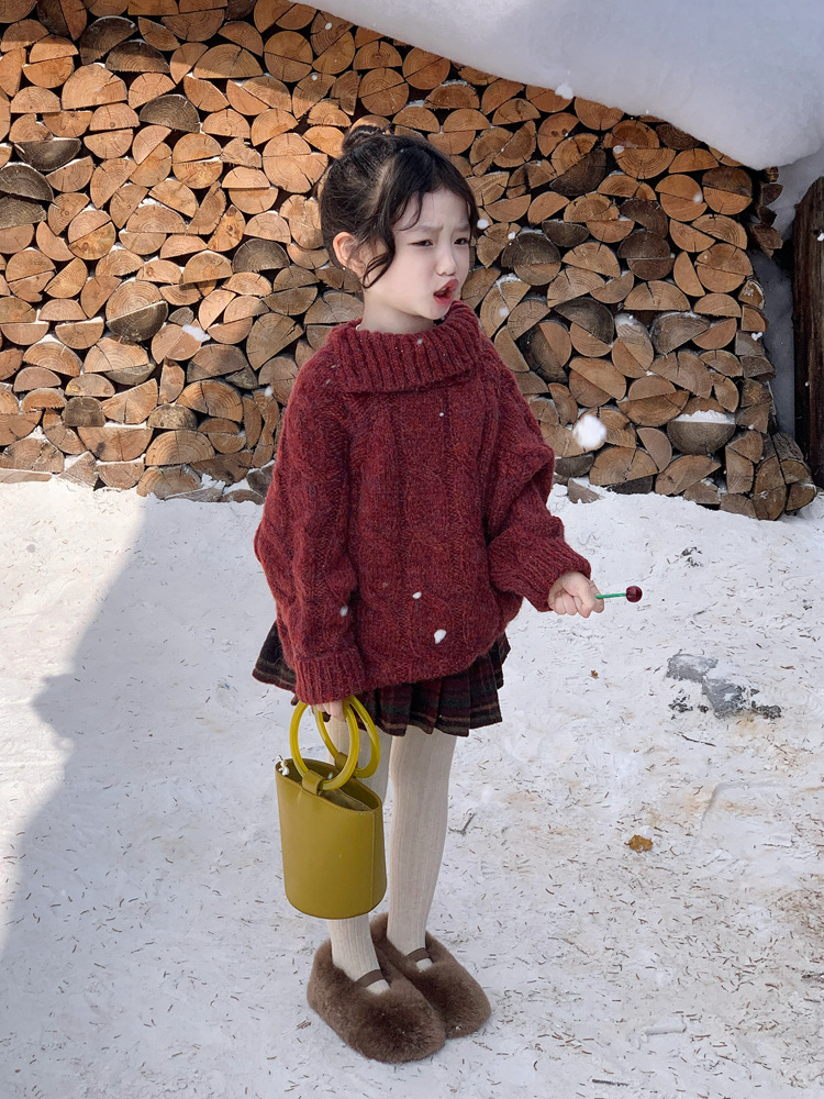 겨울 어린이 소녀 서양식 크리스마스 신년 레드 풀오버 스웨터 탑 모직 기모 프레슬리 바지 세트스토어 가기