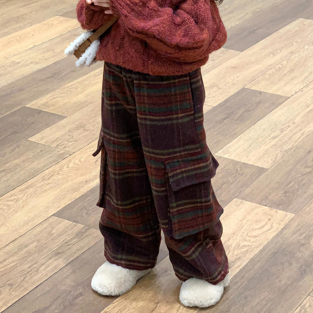 • 모직 벨벳 체크 무늬 팬츠
