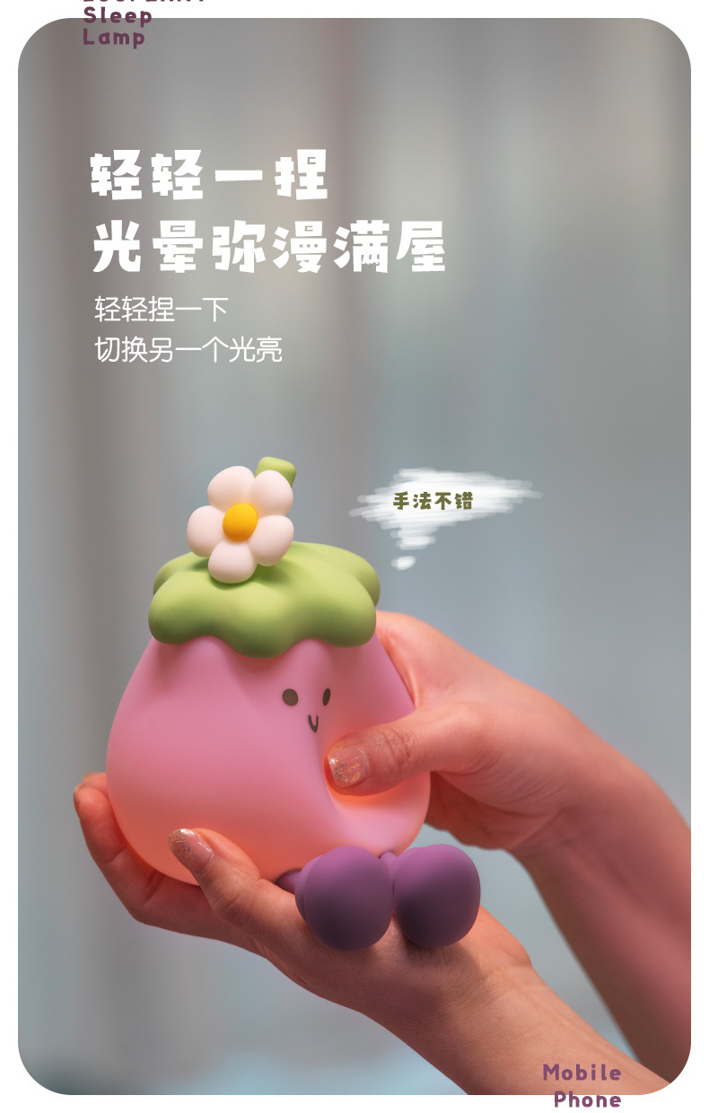 Solanum 야간 조명 어린이 선물 엄마와 유아 편안함 먹이 실리콘 플랩 유도 지연 시간 사랑스러운 디자인 분위기 빛