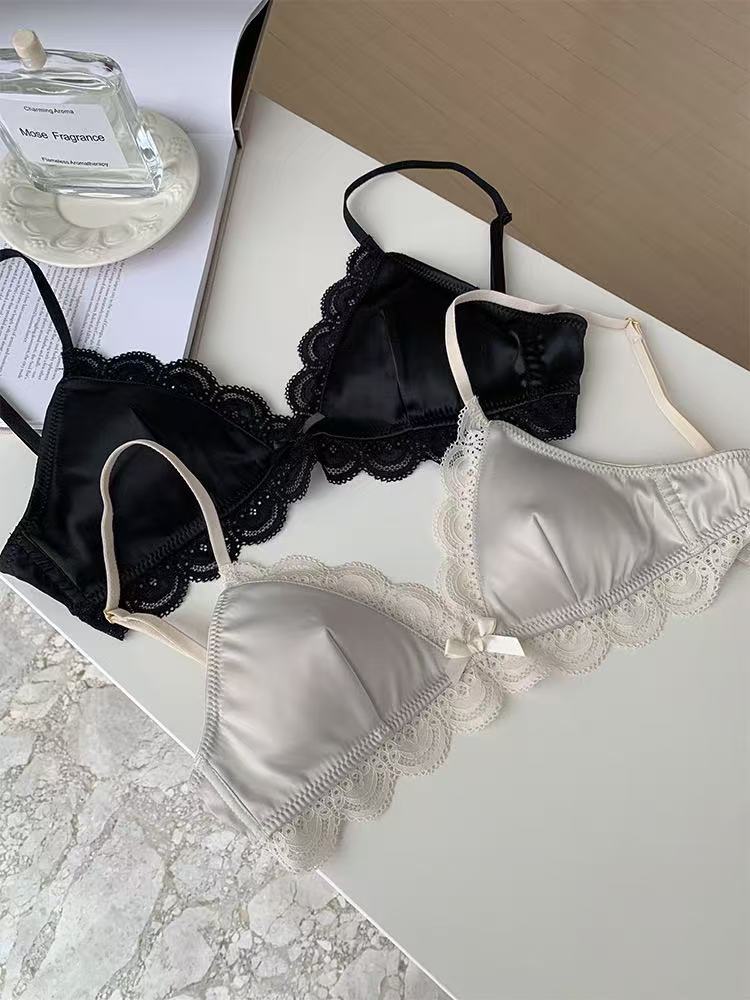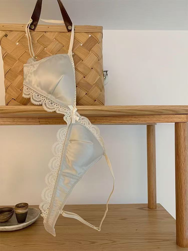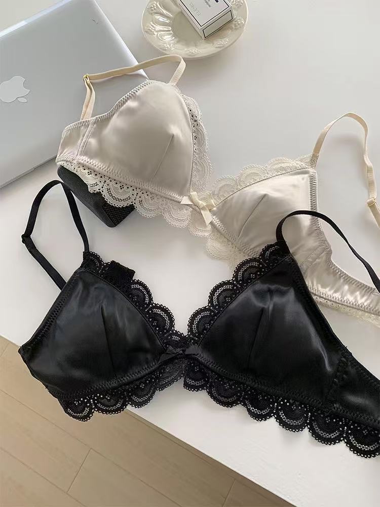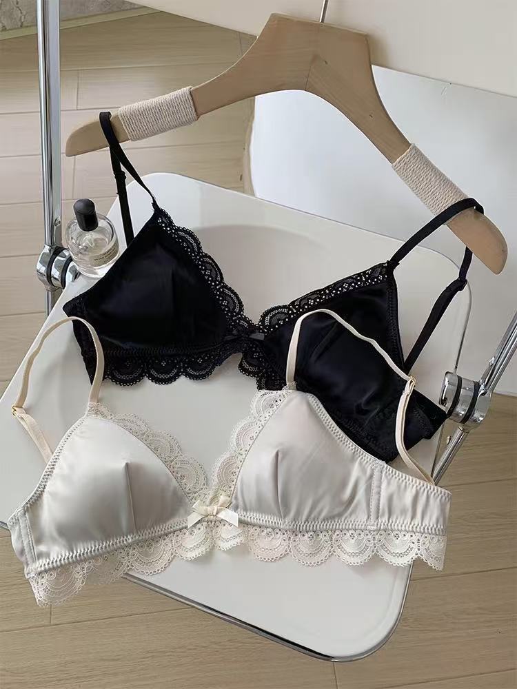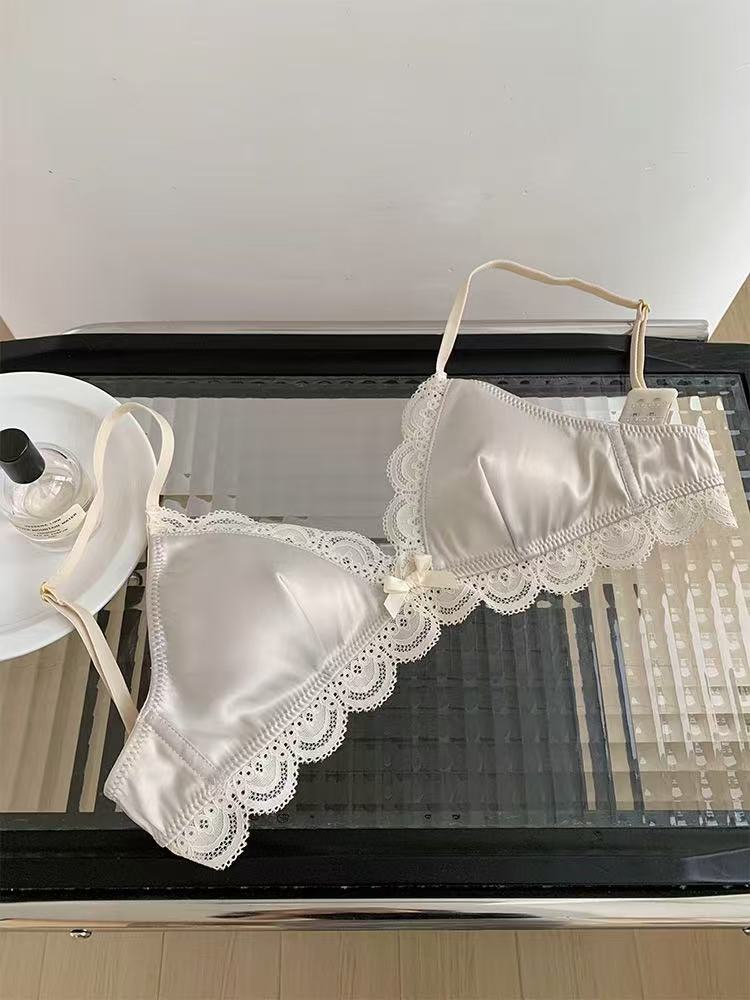 한국식 심플 삼각 컵 보우 레이스 새틴 속옷 작은 가슴 처짐 방지 편안한 아름다운 등 소녀 브라