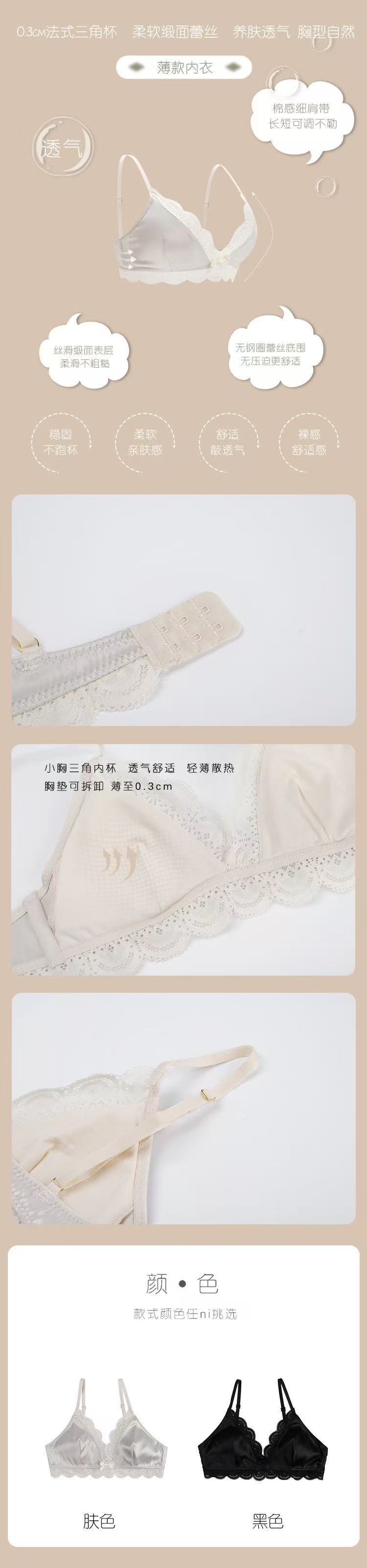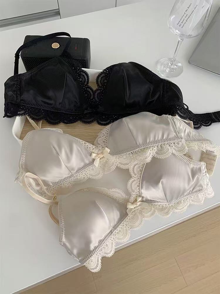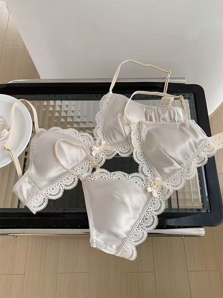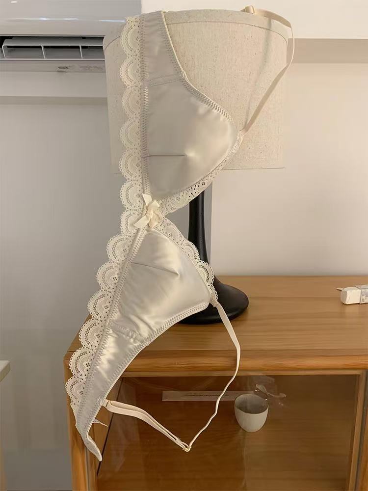 한국식 심플 삼각 컵 보우 레이스 새틴 속옷 작은 가슴 처짐 방지 편안한 아름다운 등 소녀 브라