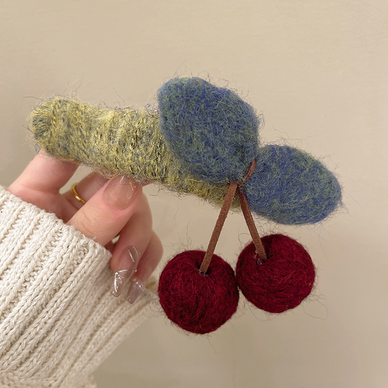 새로운 중국식 양모 체리 그랩 클립 여성용 하이 엔드 시즈 트위스트 헤어핀 백 헤드 한 캐릭터 상어 클립 액세서리스토어 가기