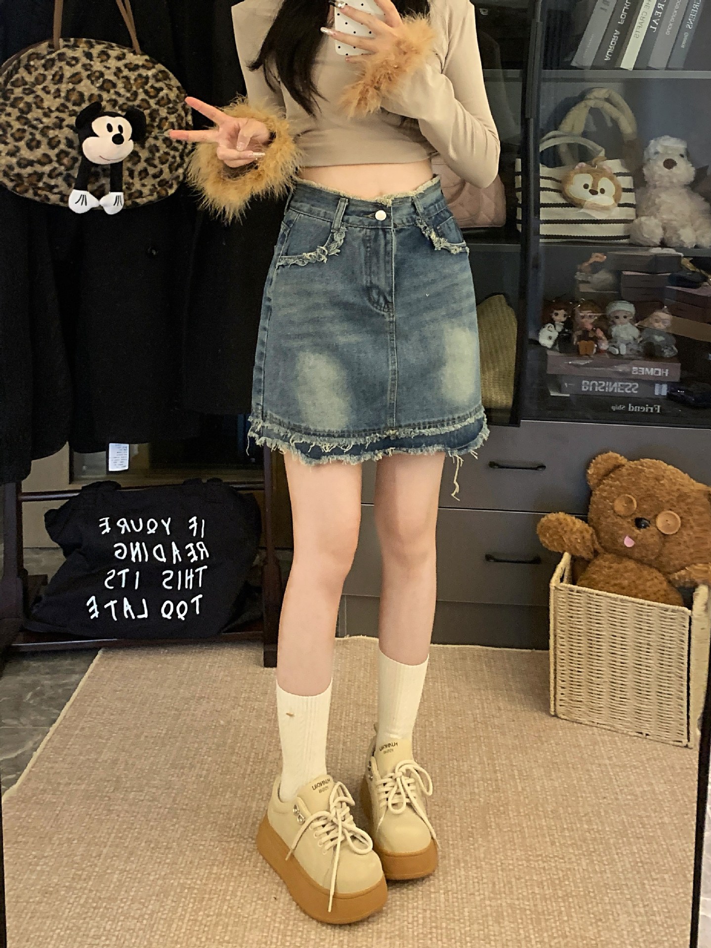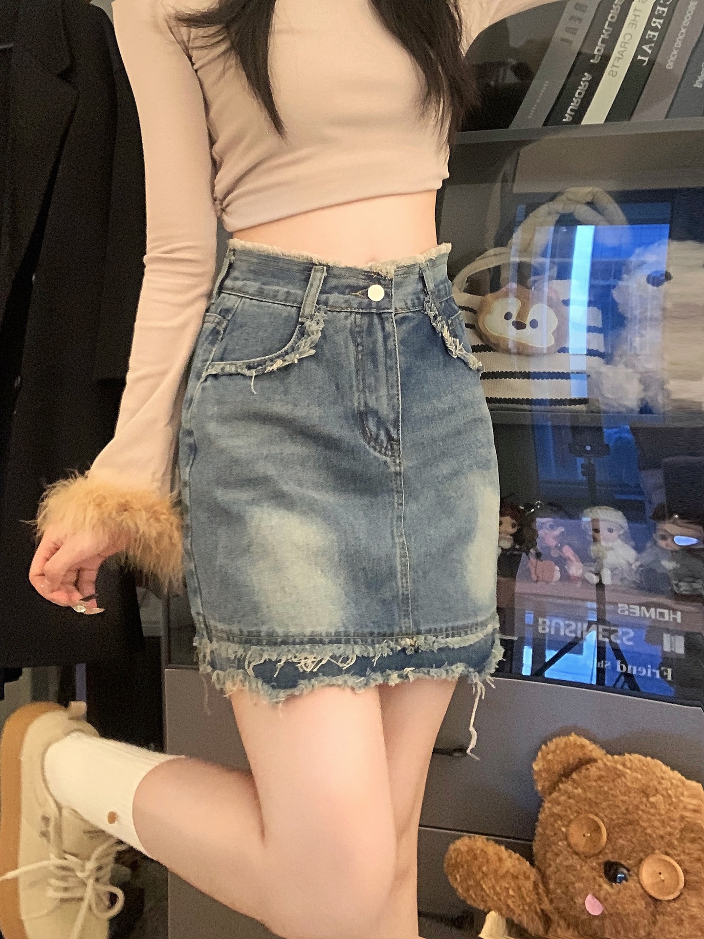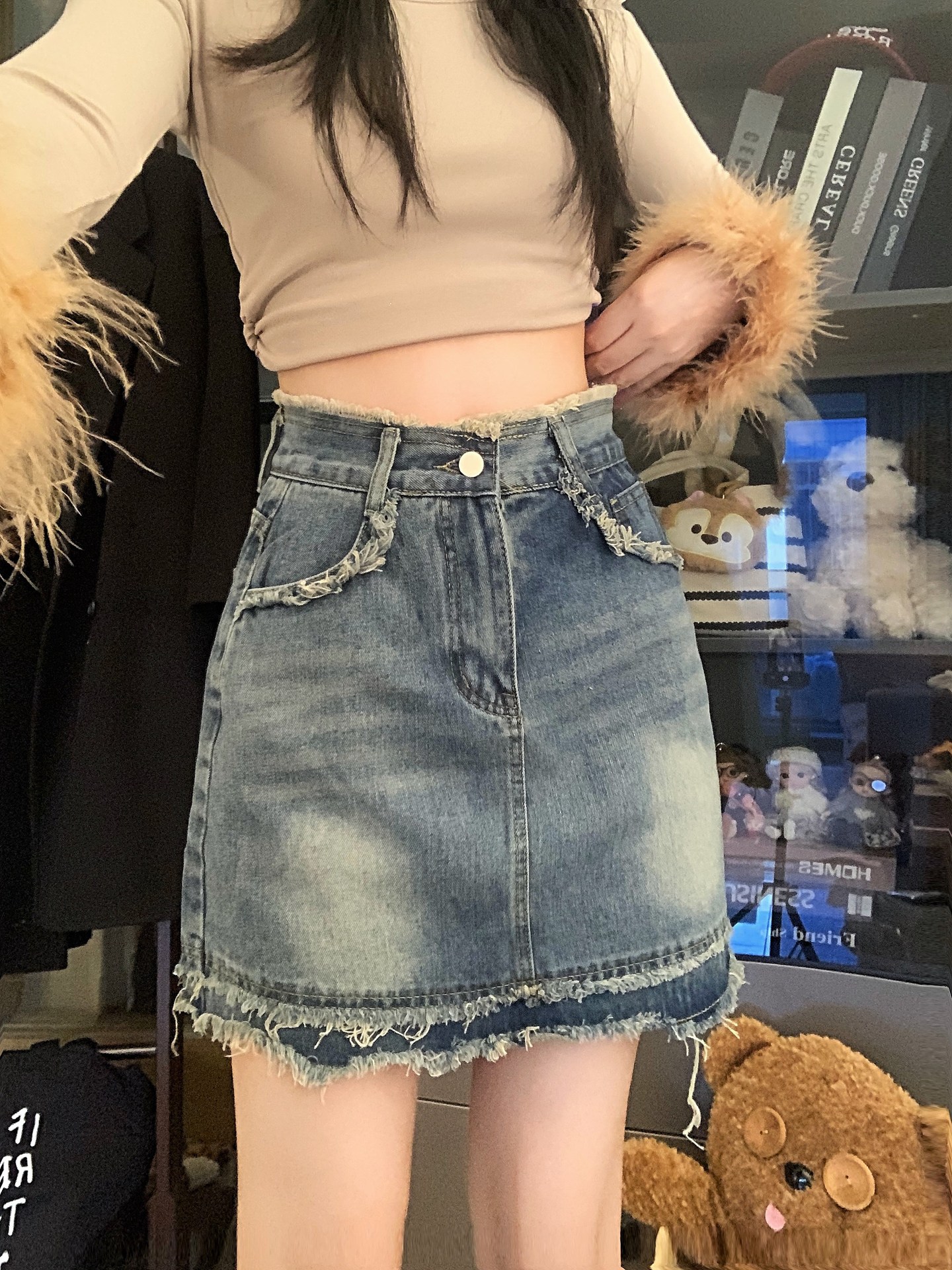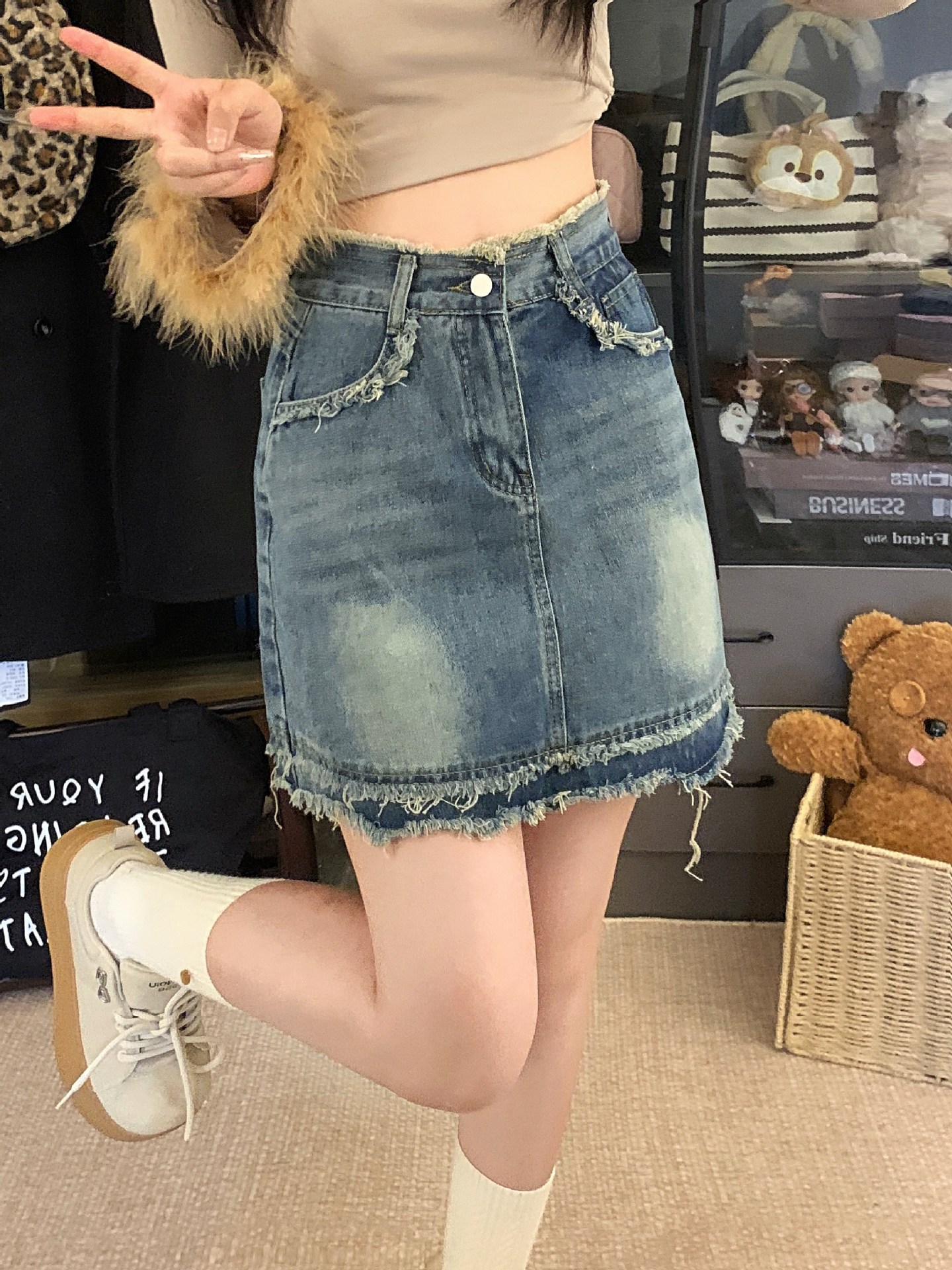 2025 봄 새로운 레트로 아메리칸 스타일 데님 스커트 여성 높은 허리 엉덩이 스커트 데님 스커트 여성 쇼트 스커트스토어 가기