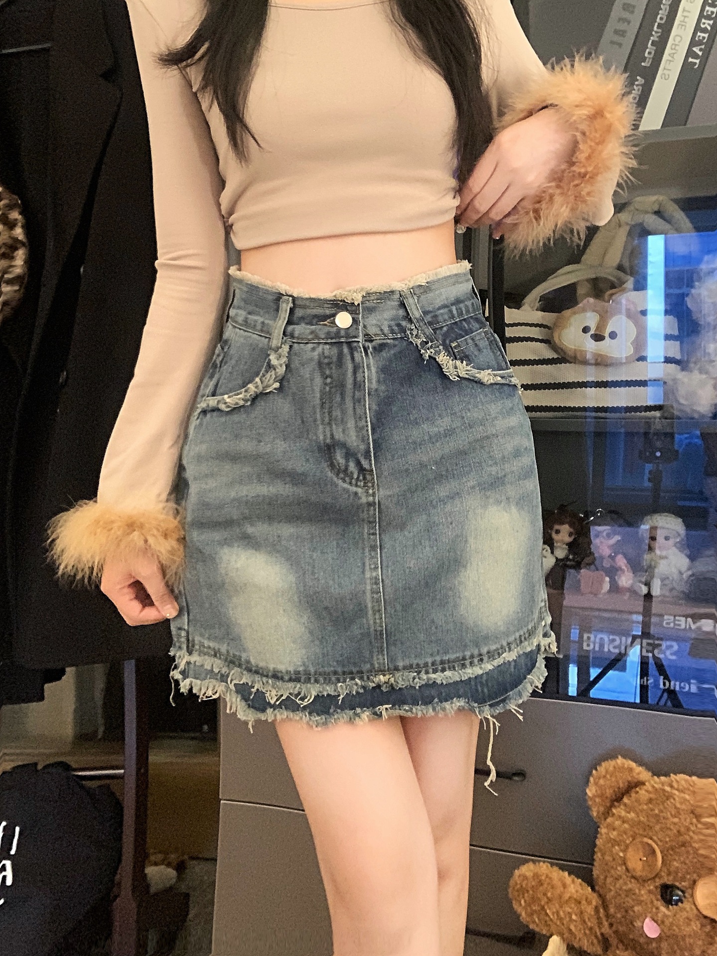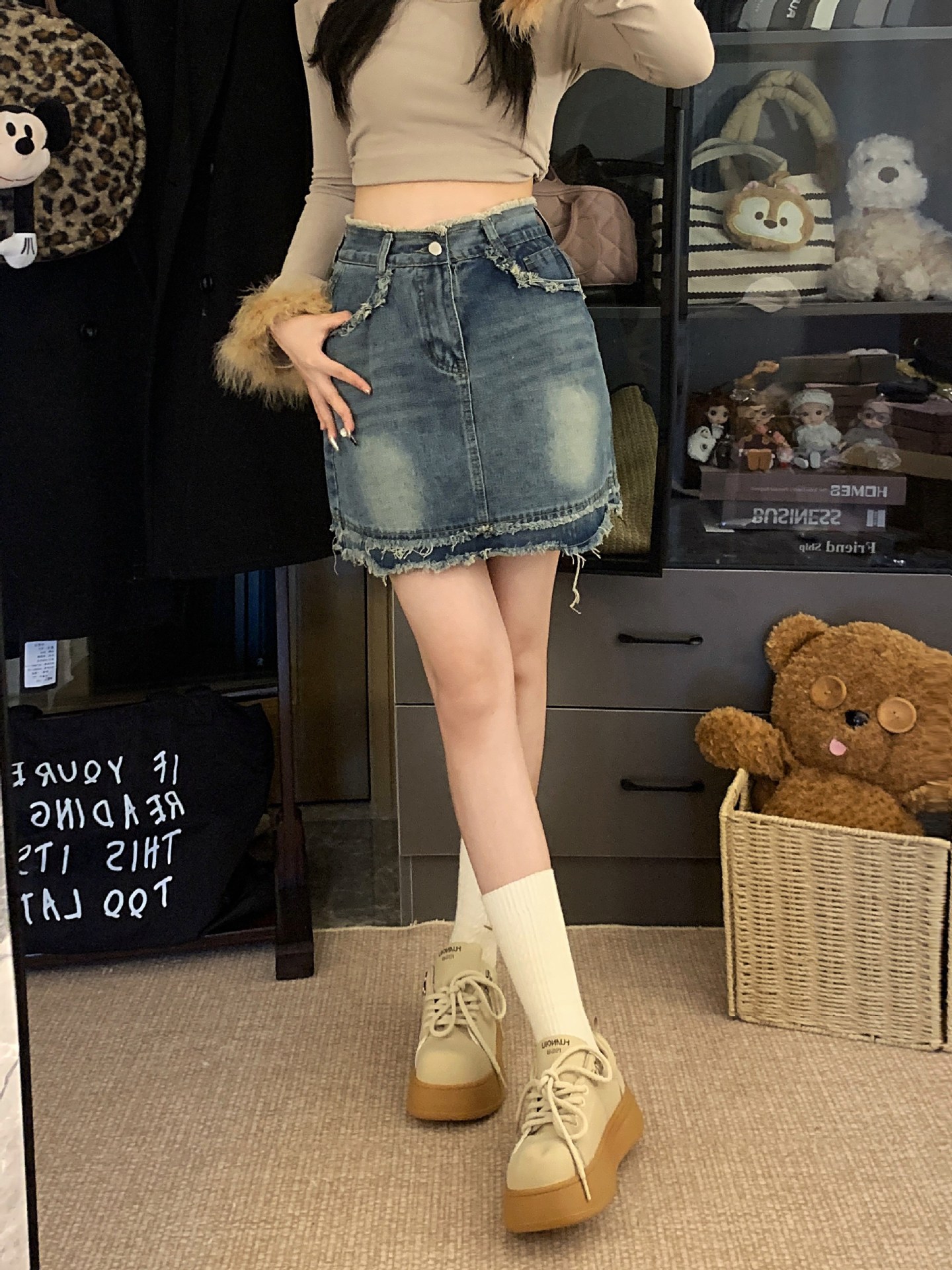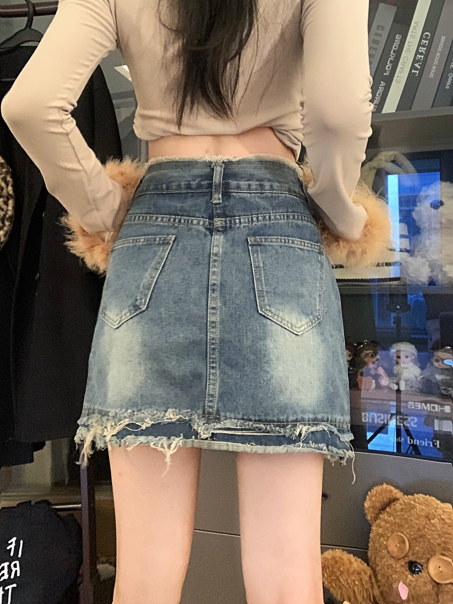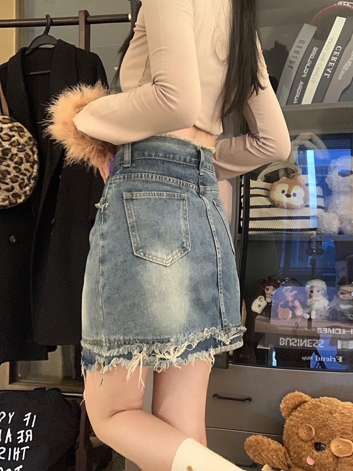 2025 봄 새로운 레트로 아메리칸 스타일 데님 스커트 여성 높은 허리 엉덩이 스커트 데님 스커트 여성 쇼트 스커트스토어 가기