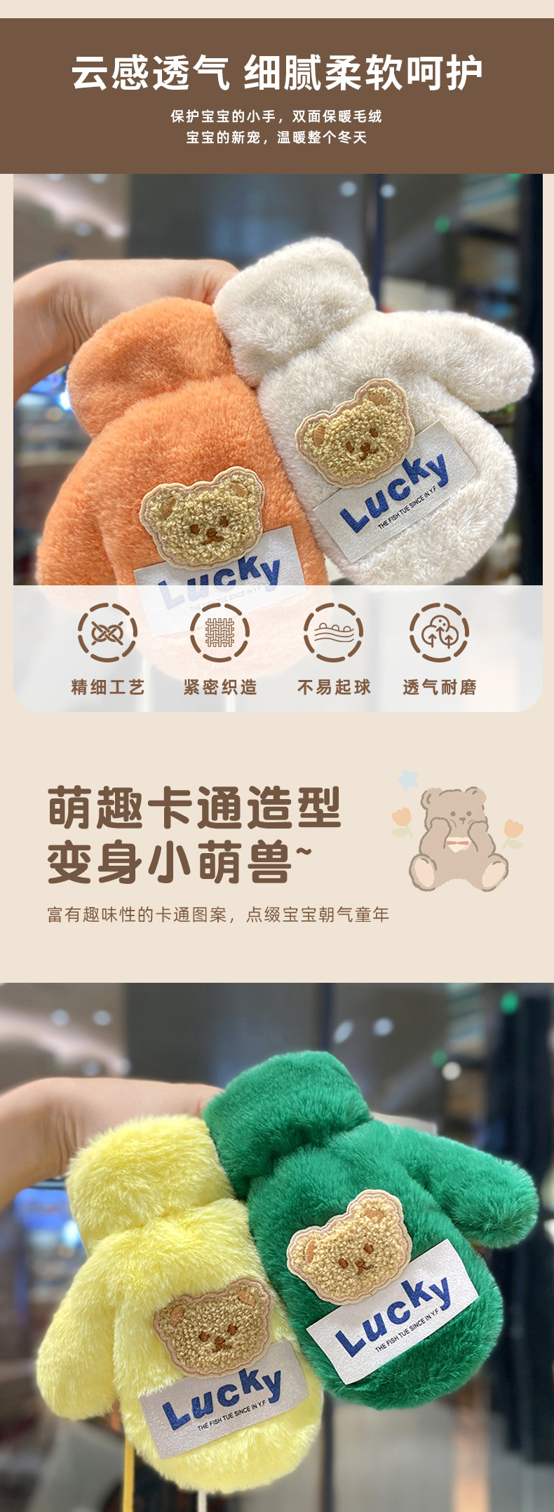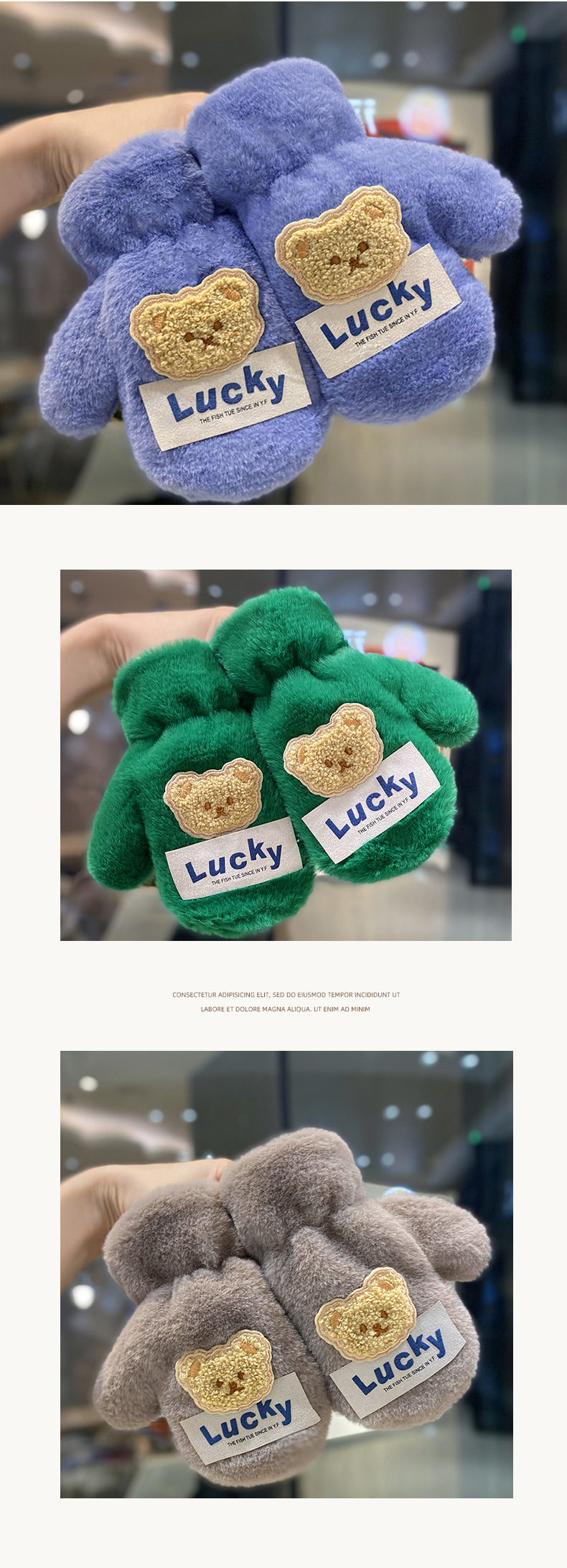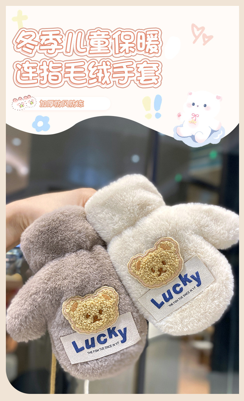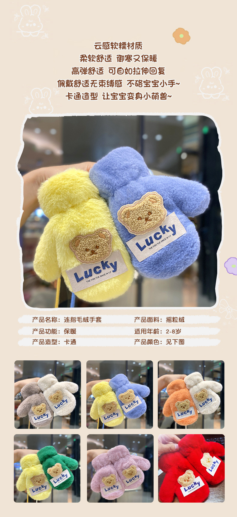 새로운 봉제 귀여운 아기 겨울 부동액 손가락으로 목에 매달려 겨울 기모 두꺼운 따뜻한 어린이 장갑 도매스토어 가기