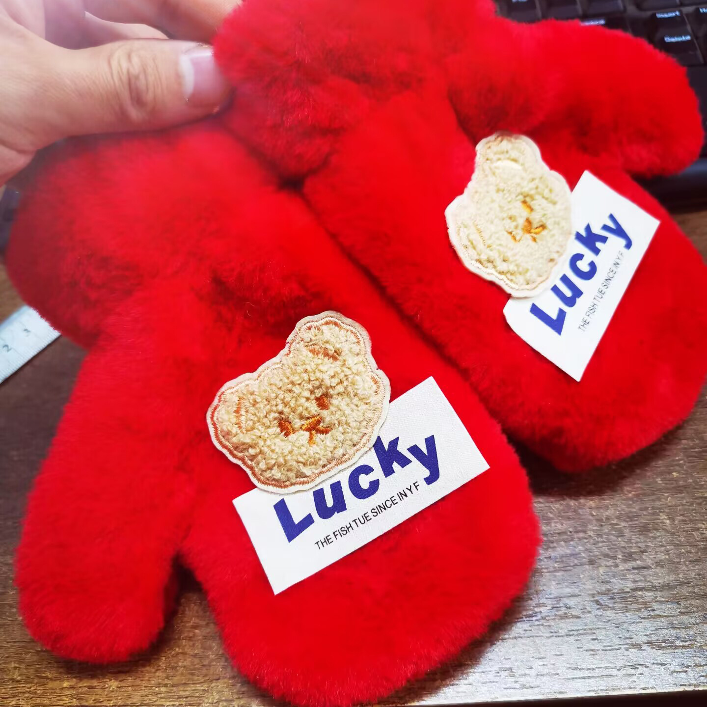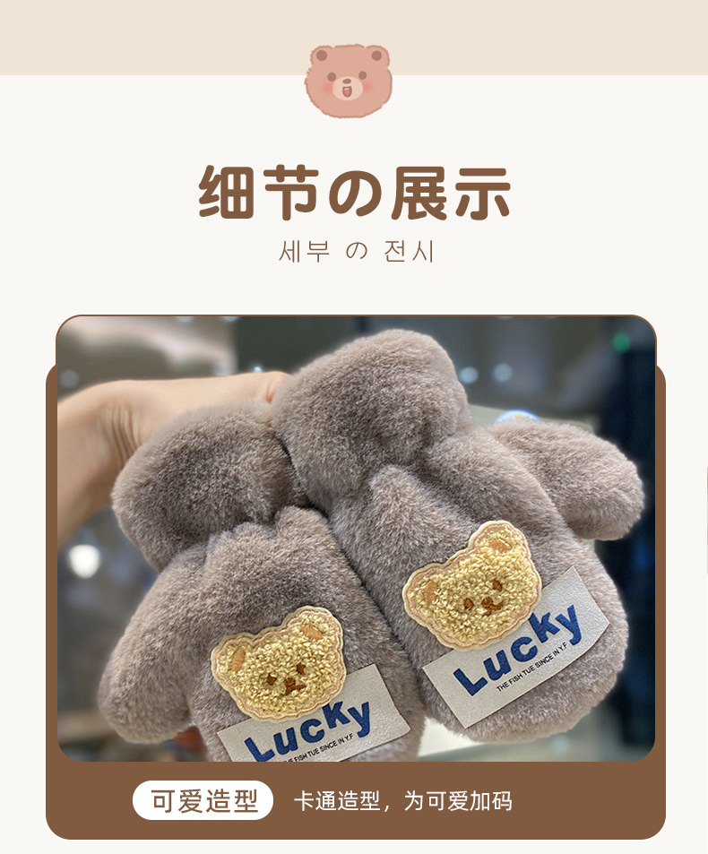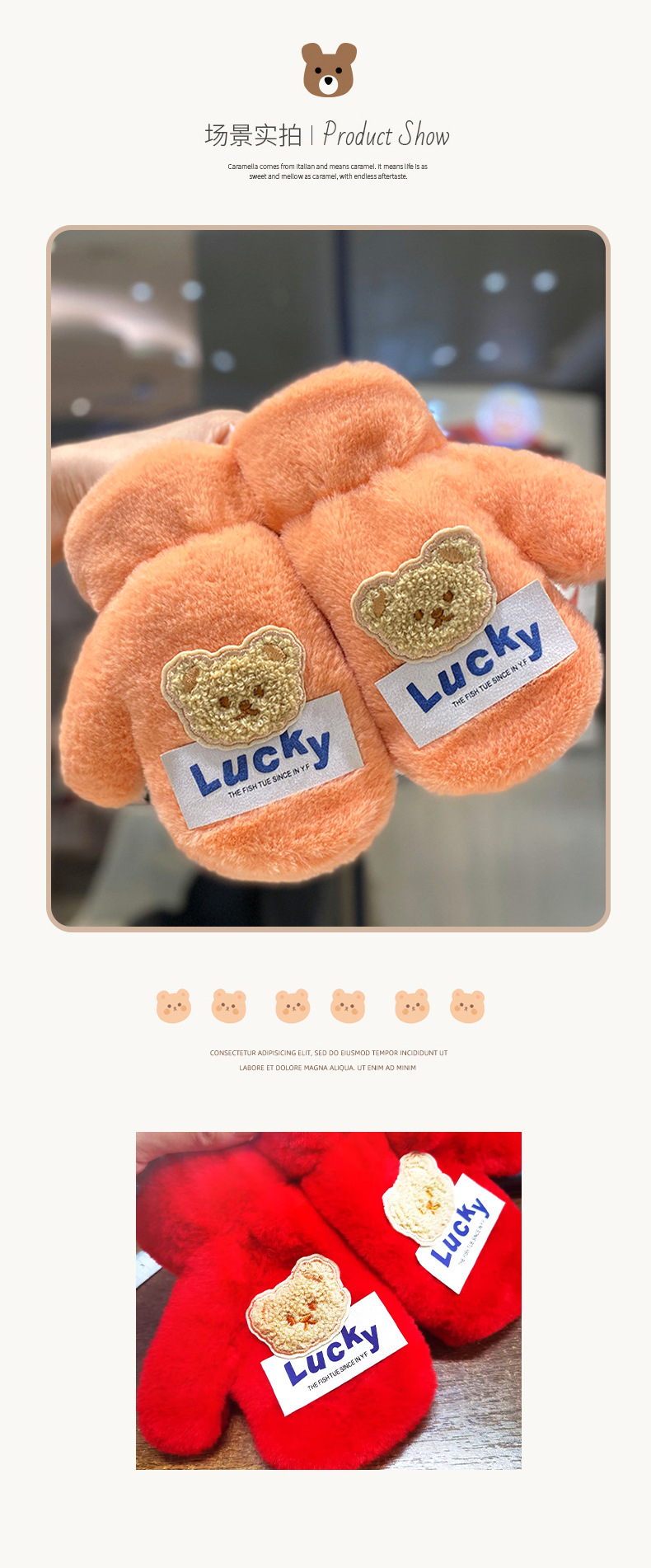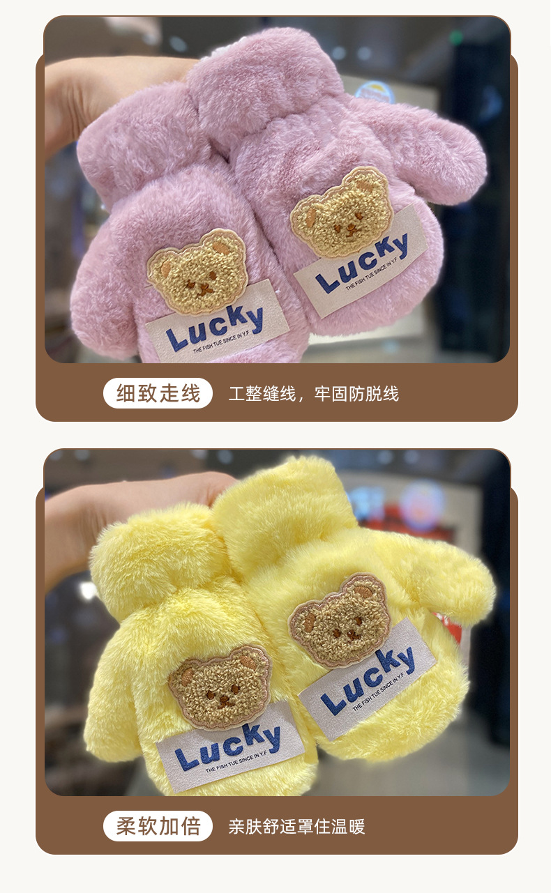 새로운 봉제 귀여운 아기 겨울 부동액 손가락으로 목에 매달려 겨울 기모 두꺼운 따뜻한 어린이 장갑 도매스토어 가기