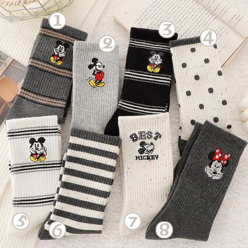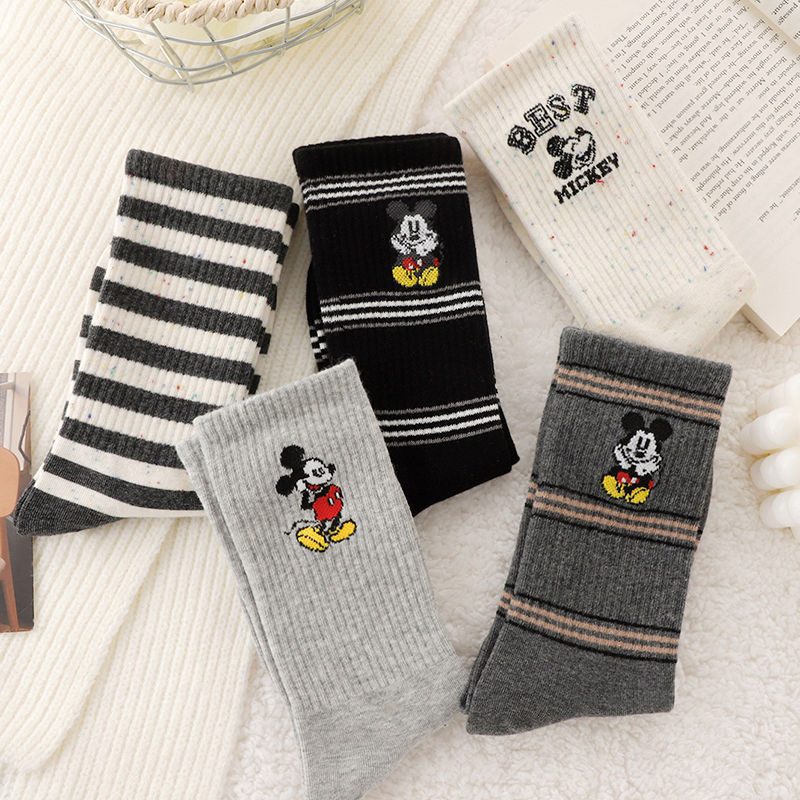 새로운 가을과 겨울 여성 양말 줄무늬 스택 일본 미키 만화 유행 양말 한국식 중간 배럴 폭발 학술 스타일스토어 가기