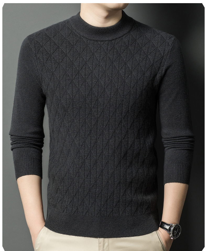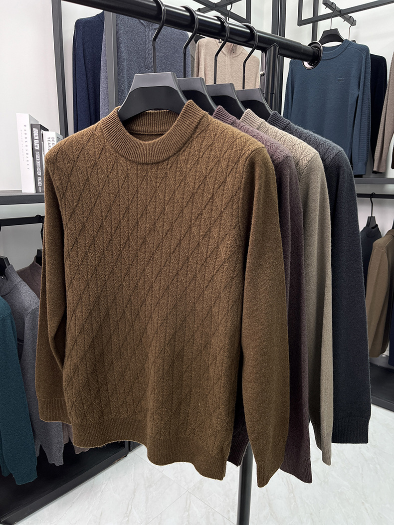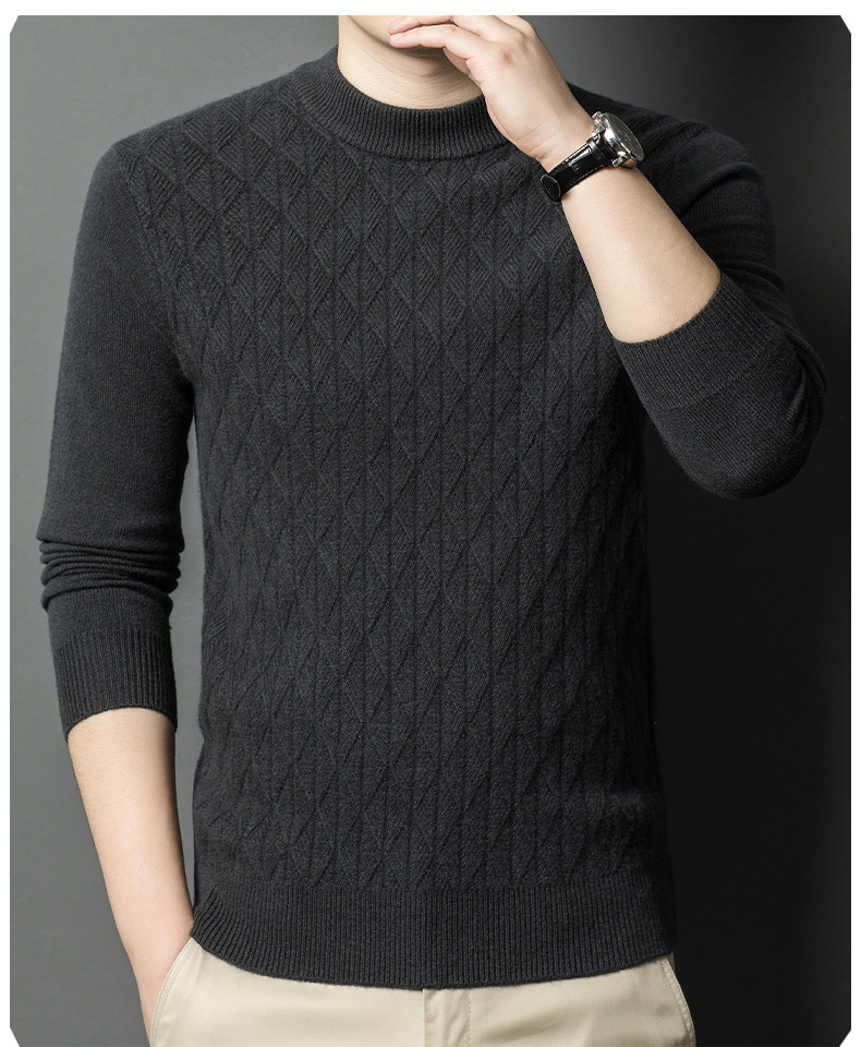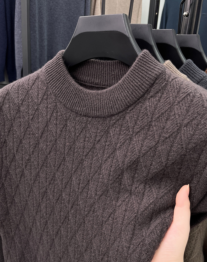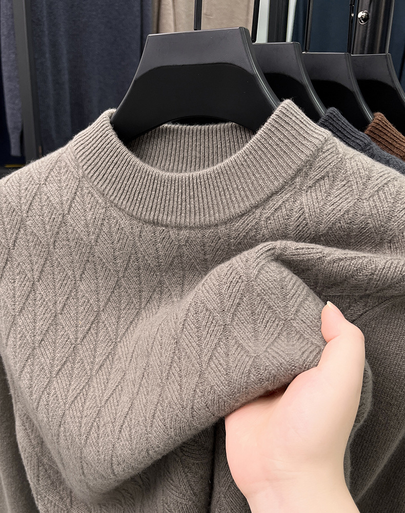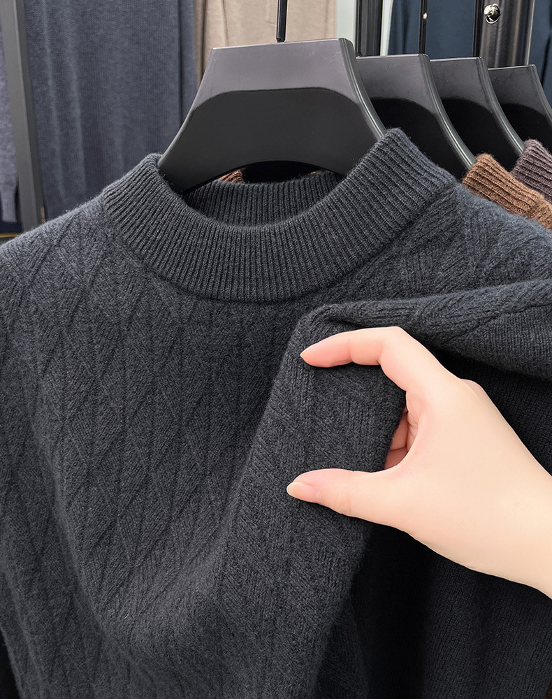 남자 둥근 목 100 순수한 양모 스웨터 겨울 두꺼운 따뜻한 니트베이스 스웨터 캐주얼 내부 울 스웨터스토어 가기