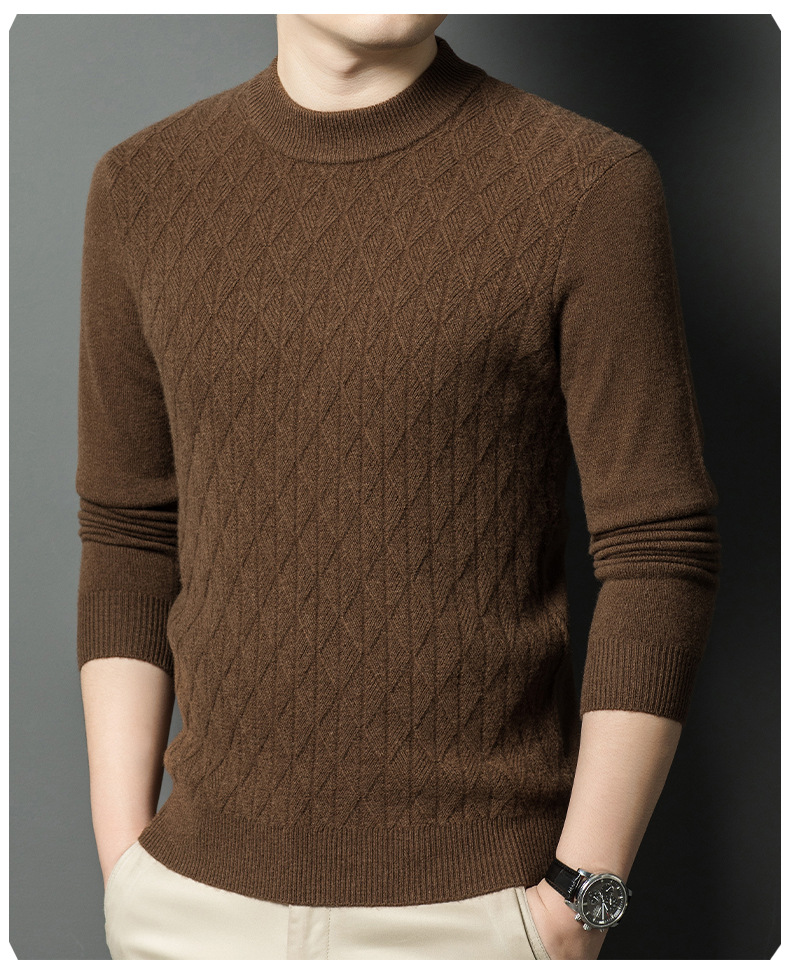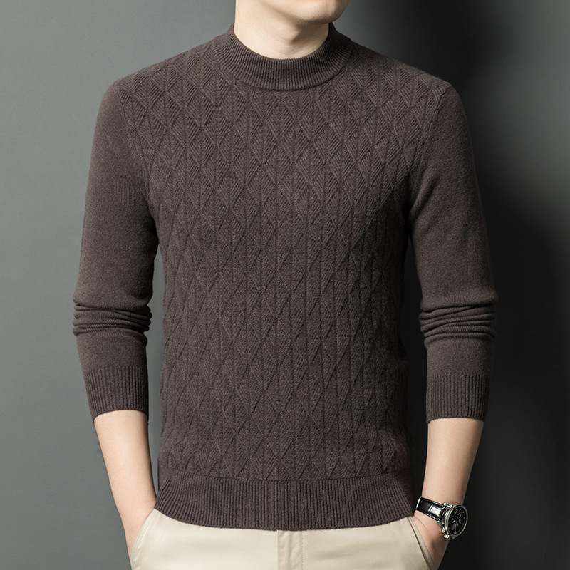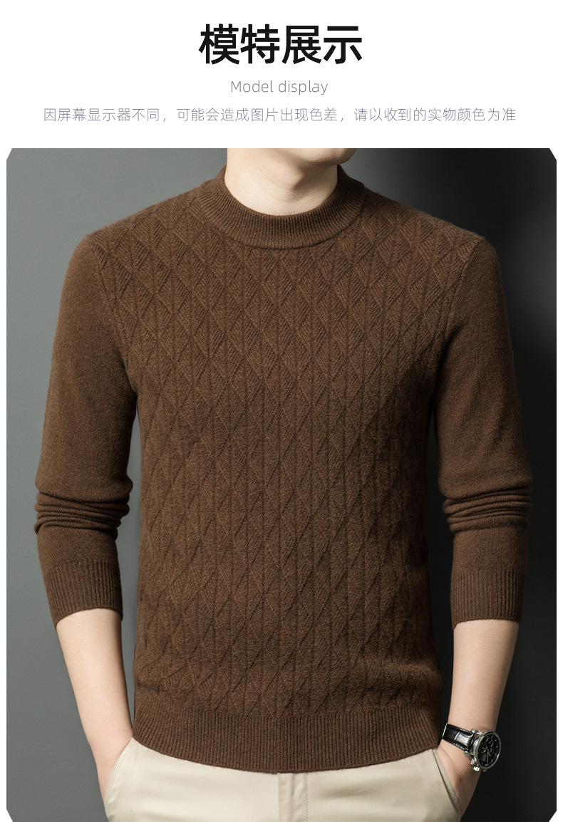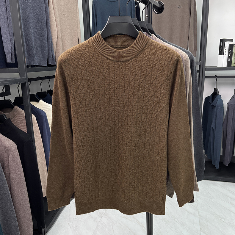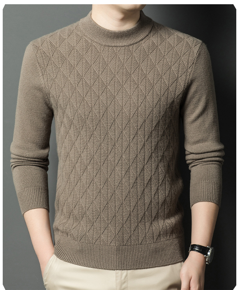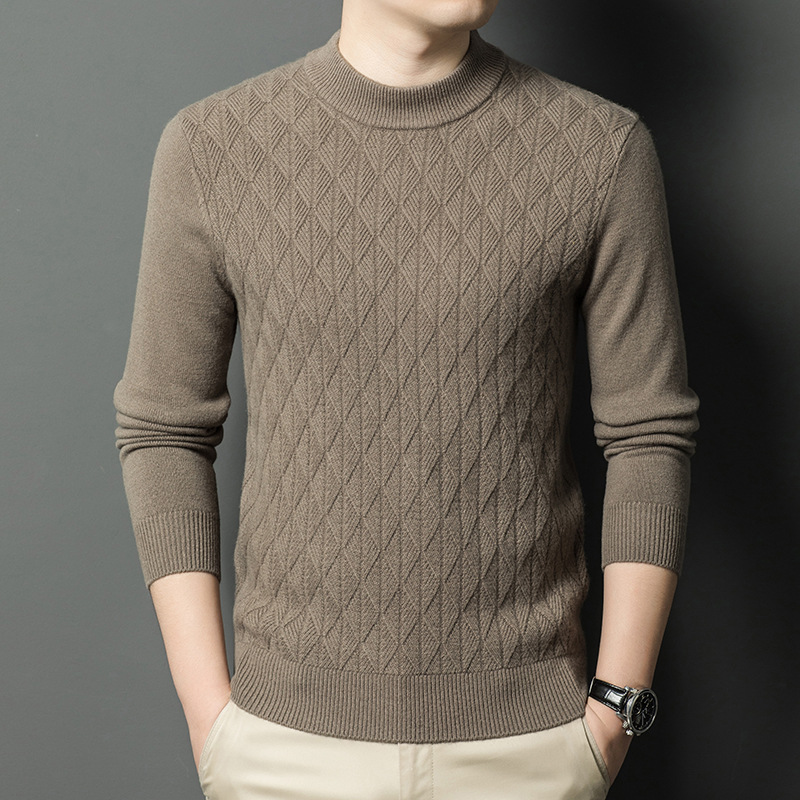 남자 둥근 목 100 순수한 양모 스웨터 겨울 두꺼운 따뜻한 니트베이스 스웨터 캐주얼 내부 울 스웨터스토어 가기