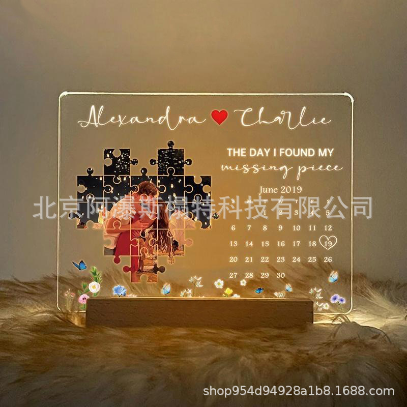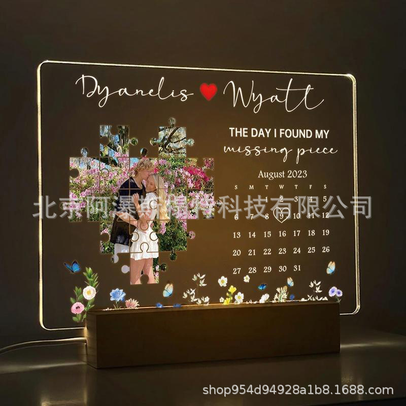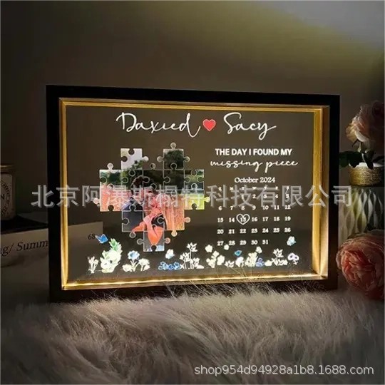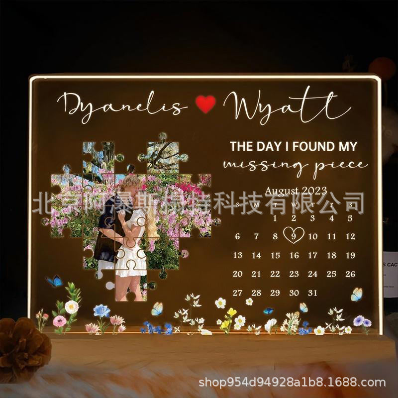 국경 간 폭발성 발렌타인 데이 창조적 인 선물 커플 직소 달력 빛나는 장식품 맞춤형 거울 램프