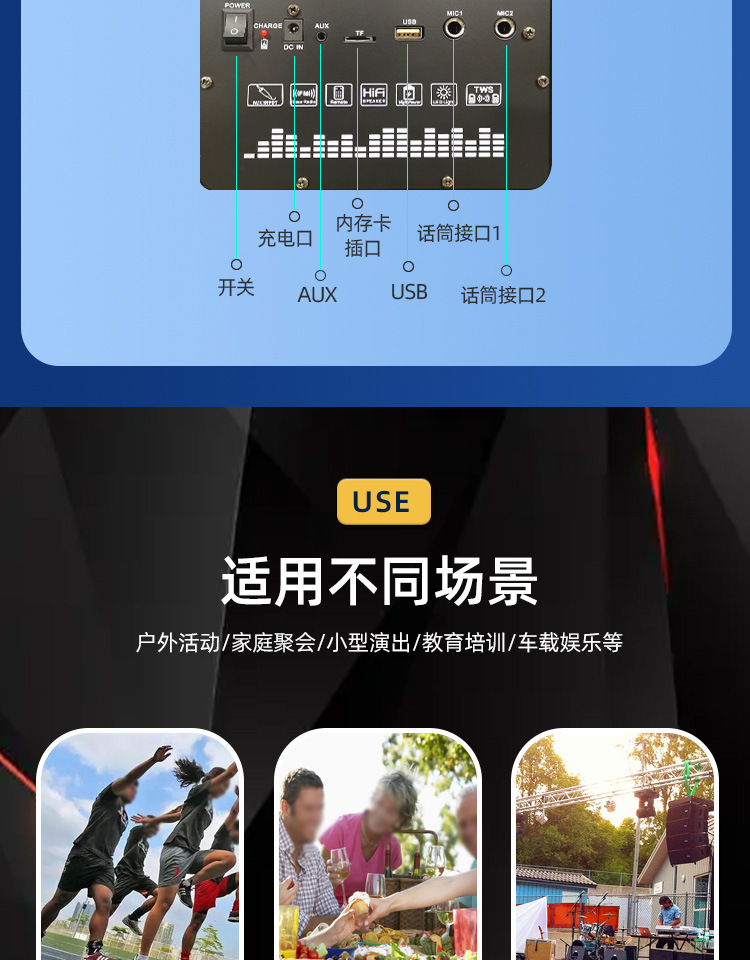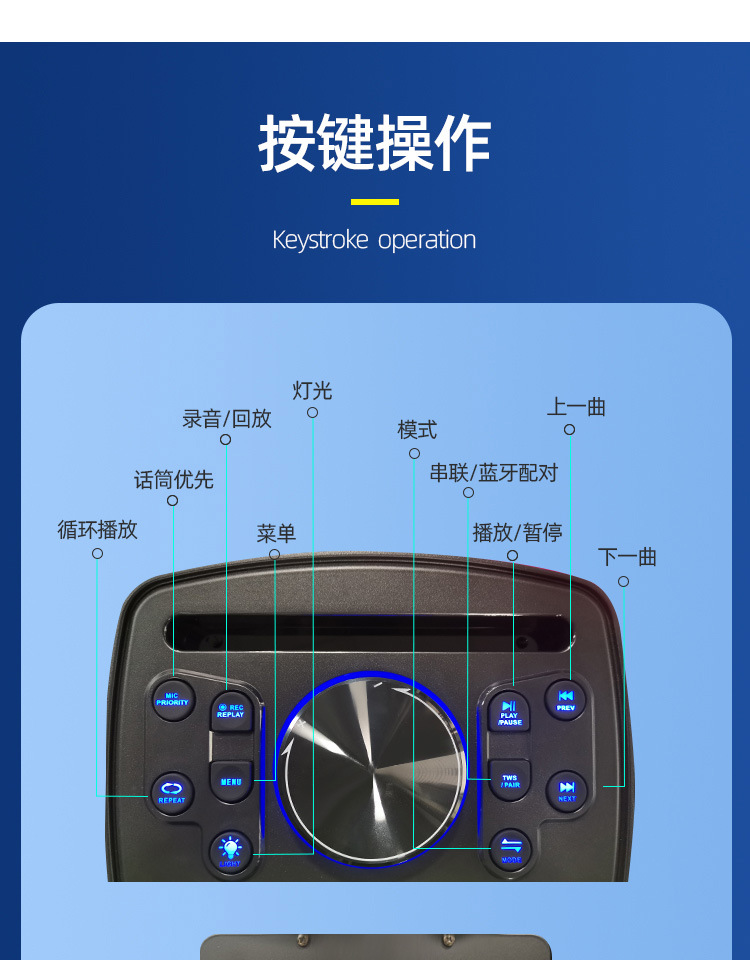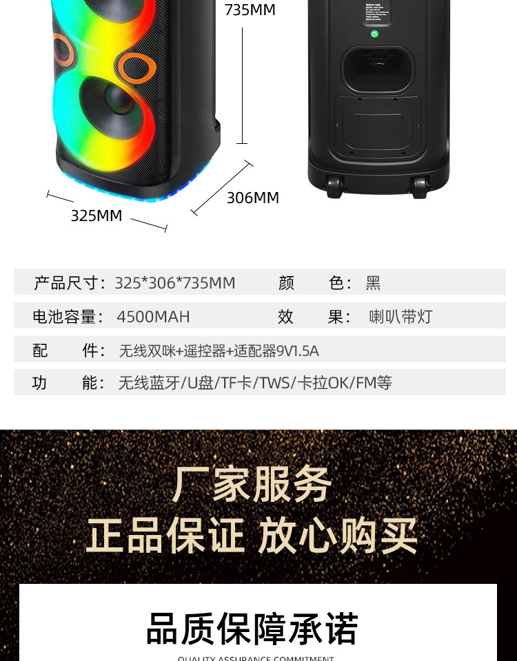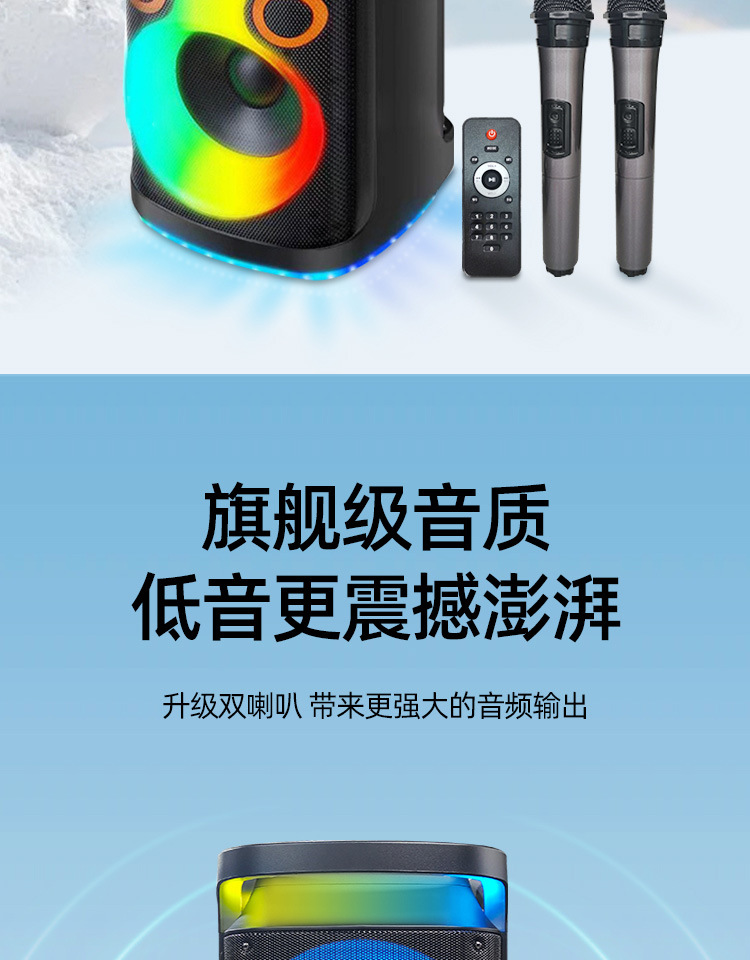 국경 간 새로운 RGB 조명 스피커 듀얼 8 인치 스피커 무선 마이크 K-노래 서브 우퍼 블루투스 스피커
