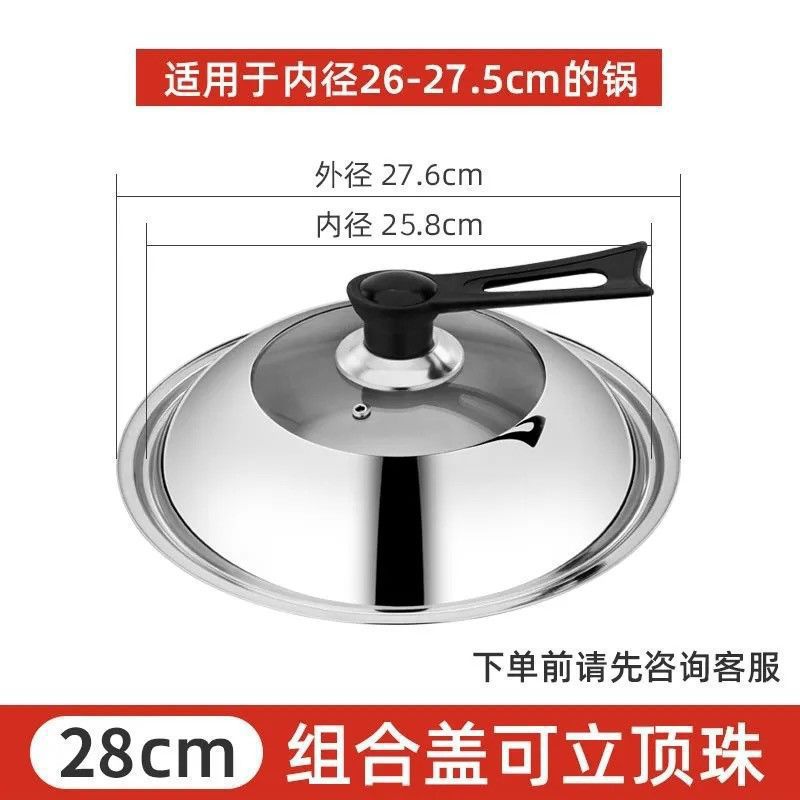 304 냄비 커버 두꺼운 스테인레스 스틸 가정용 고온 폭발 방지 가시 유리 조합 커버 프라이팬 드롭 방지 전기 냄비 커버스토어 가기
