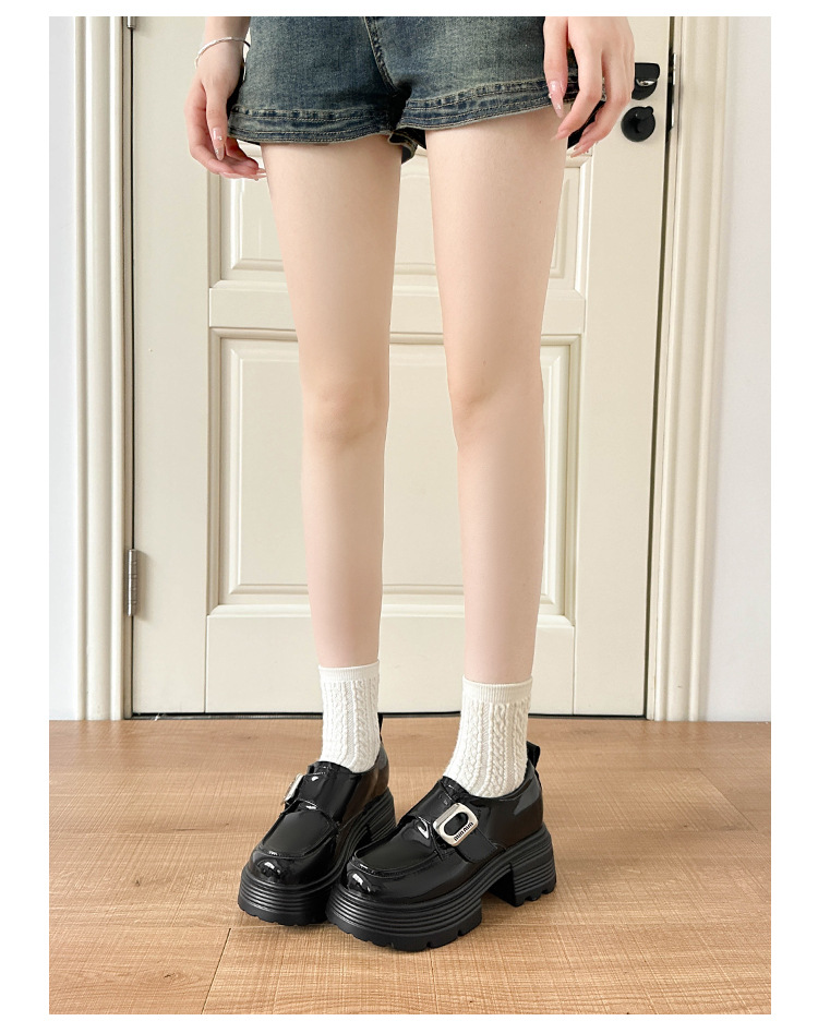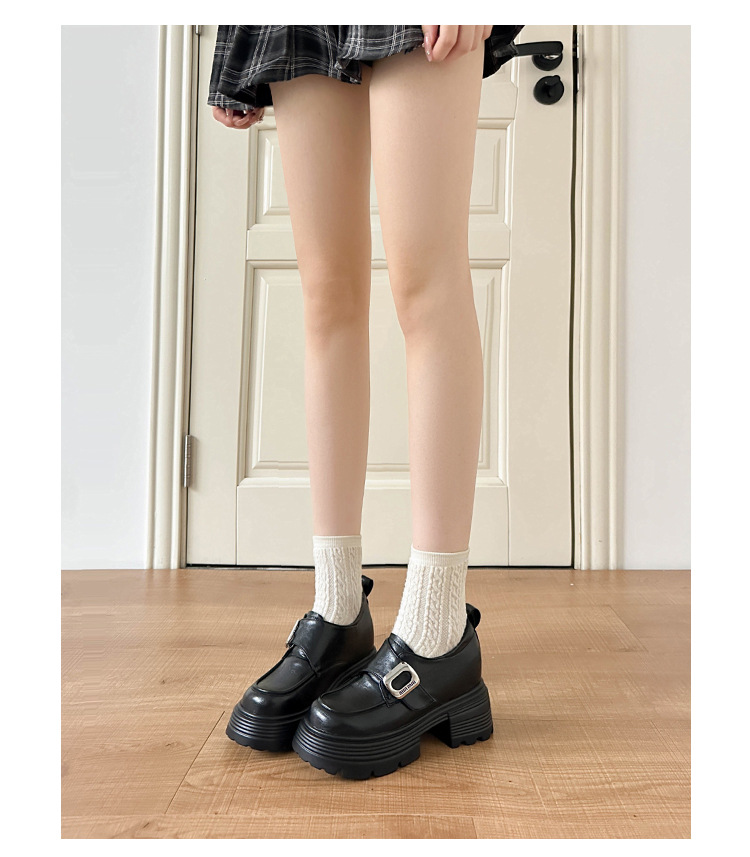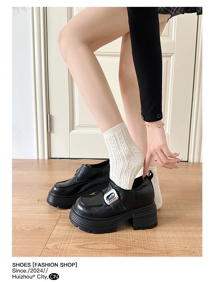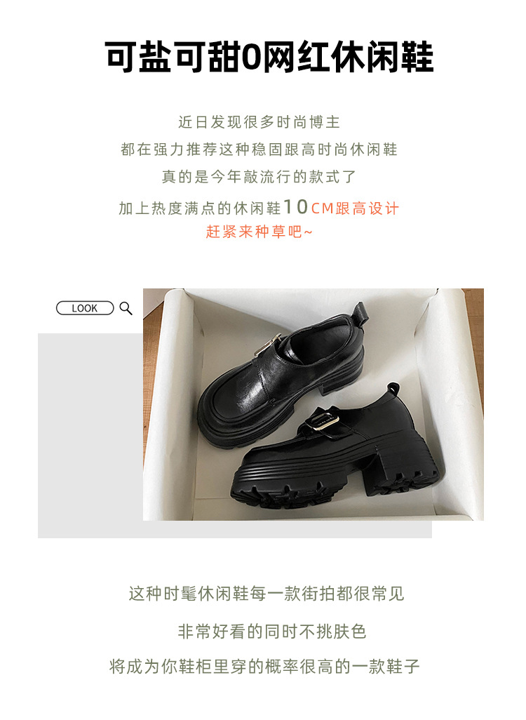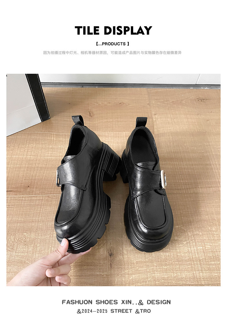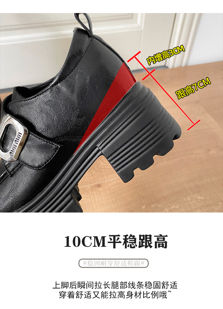 재고 있음】여성용 키높이 가죽 신발, 깊은 굽, 두꺼운 굽, 하이힐, 두꺼운 밑창 신발, 32 사이즈, 키 작은 여성용 10cm 키높이 단화스토어 가기