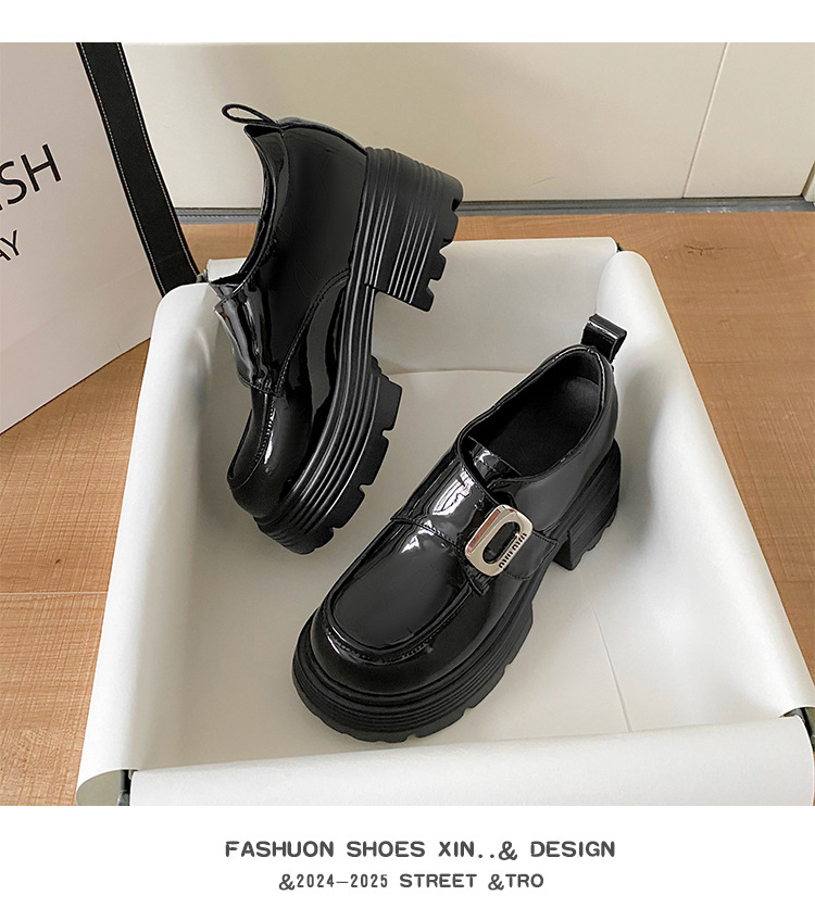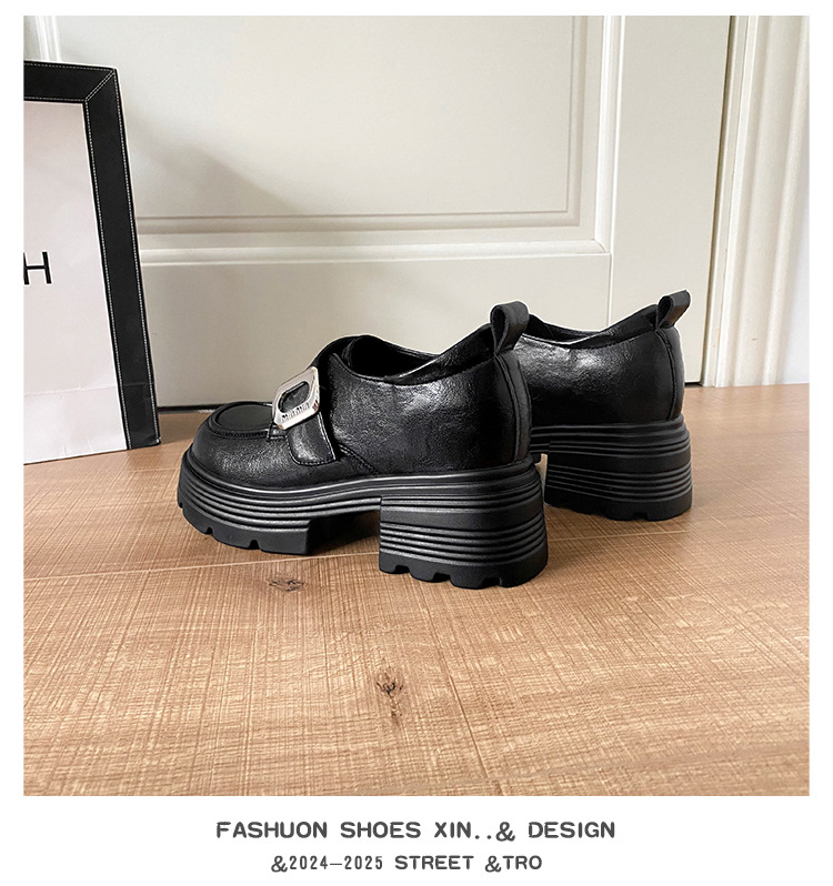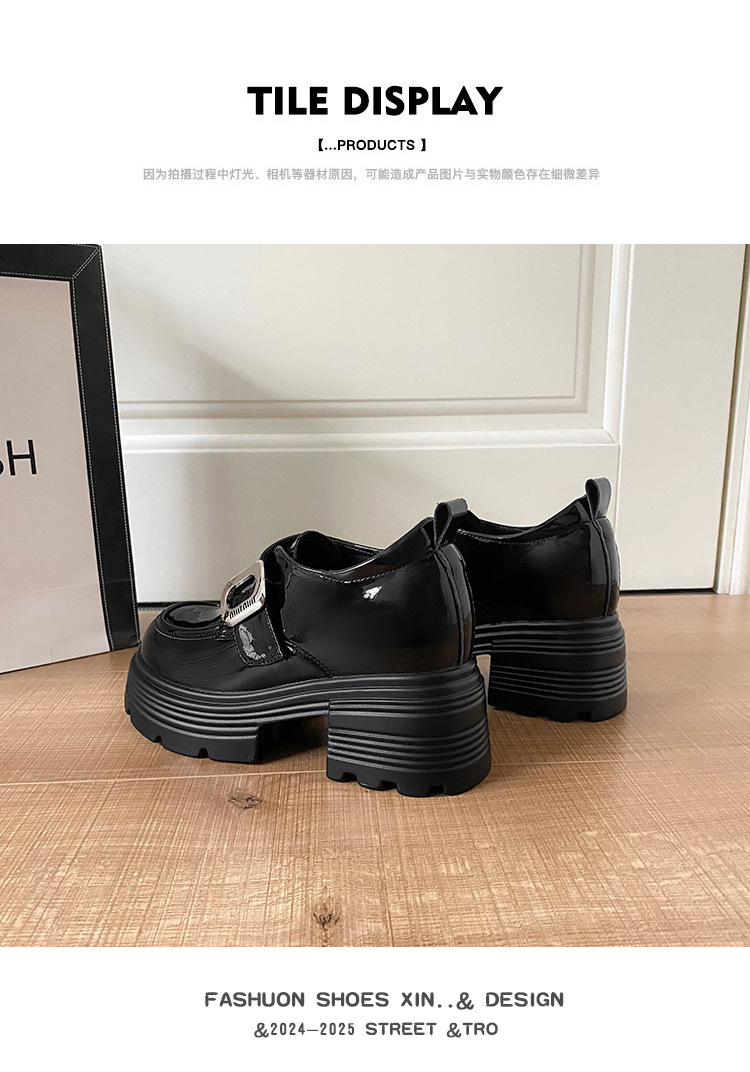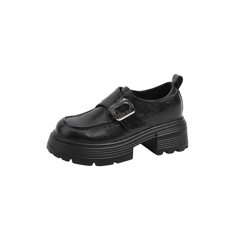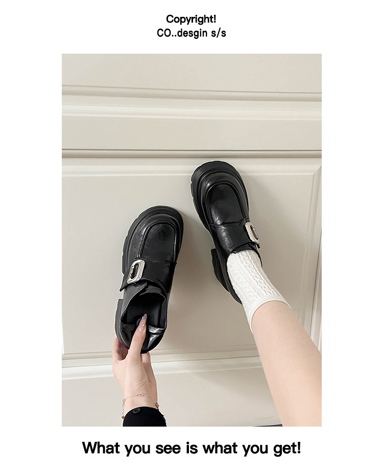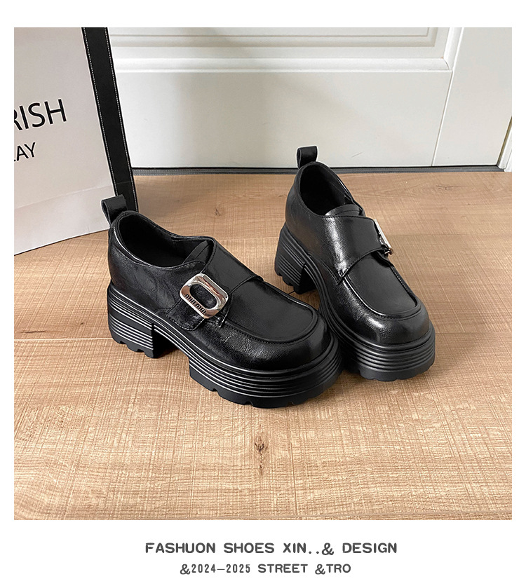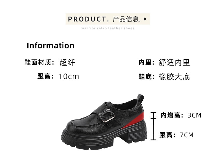 재고 있음】여성용 키높이 가죽 신발, 깊은 굽, 두꺼운 굽, 하이힐, 두꺼운 밑창 신발, 32 사이즈, 키 작은 여성용 10cm 키높이 단화스토어 가기