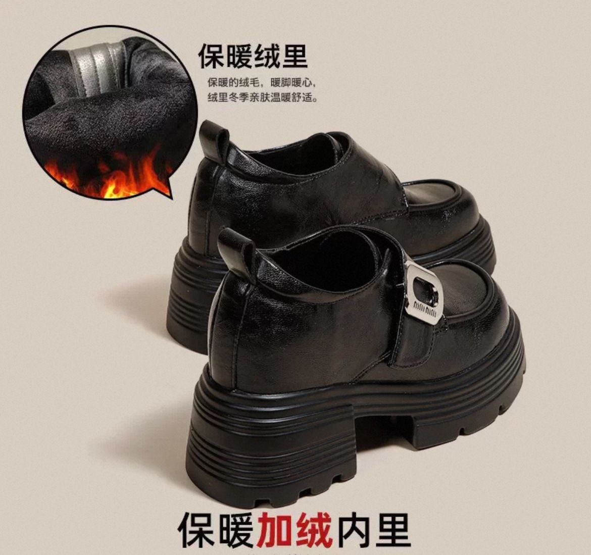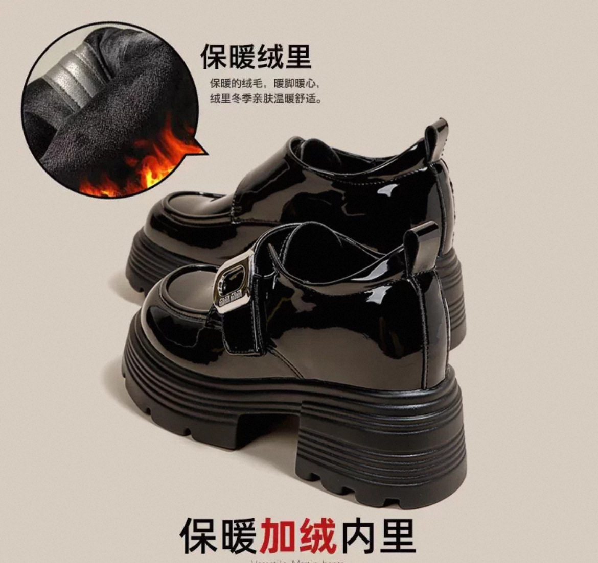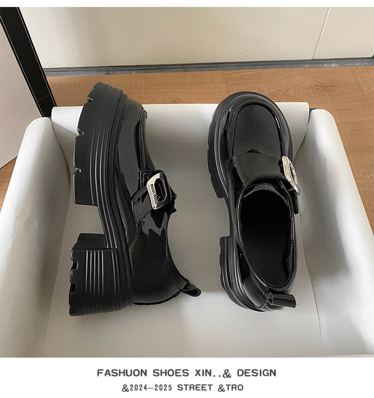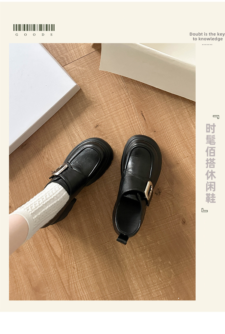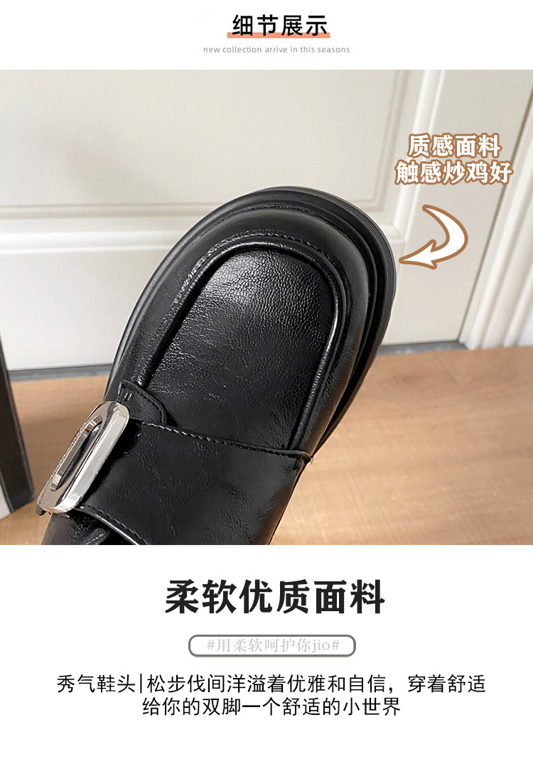 재고 있음】여성용 키높이 가죽 신발, 깊은 굽, 두꺼운 굽, 하이힐, 두꺼운 밑창 신발, 32 사이즈, 키 작은 여성용 10cm 키높이 단화스토어 가기