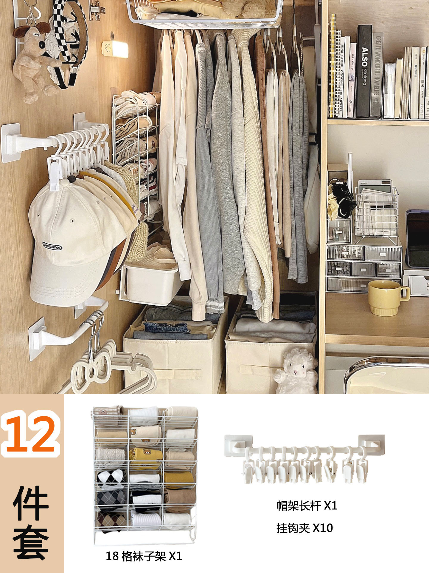 • 벽걸이형 수납선반 * 긴 막대 + 후크 10개 + 못이 없는 접착제, 업그레이드 및 강화