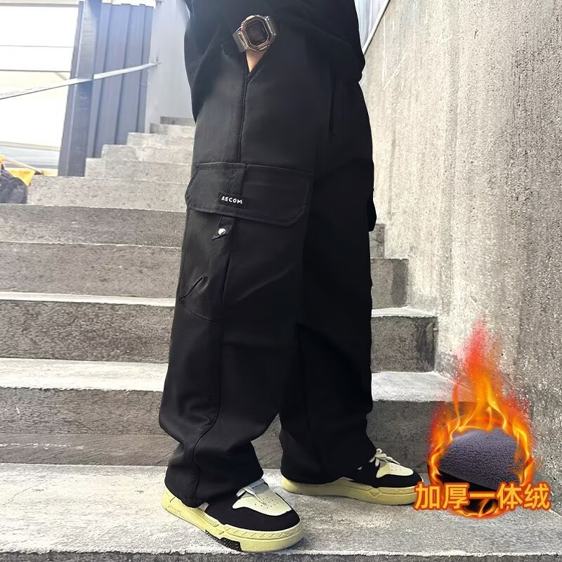 남자들의화물 바지 긴 바지 가을과 겨울 새로운 기모 스포츠 중 큰 어린이 가을 원피스 시즌 스트레이트 다리 넓은 다리 캐주얼 패션