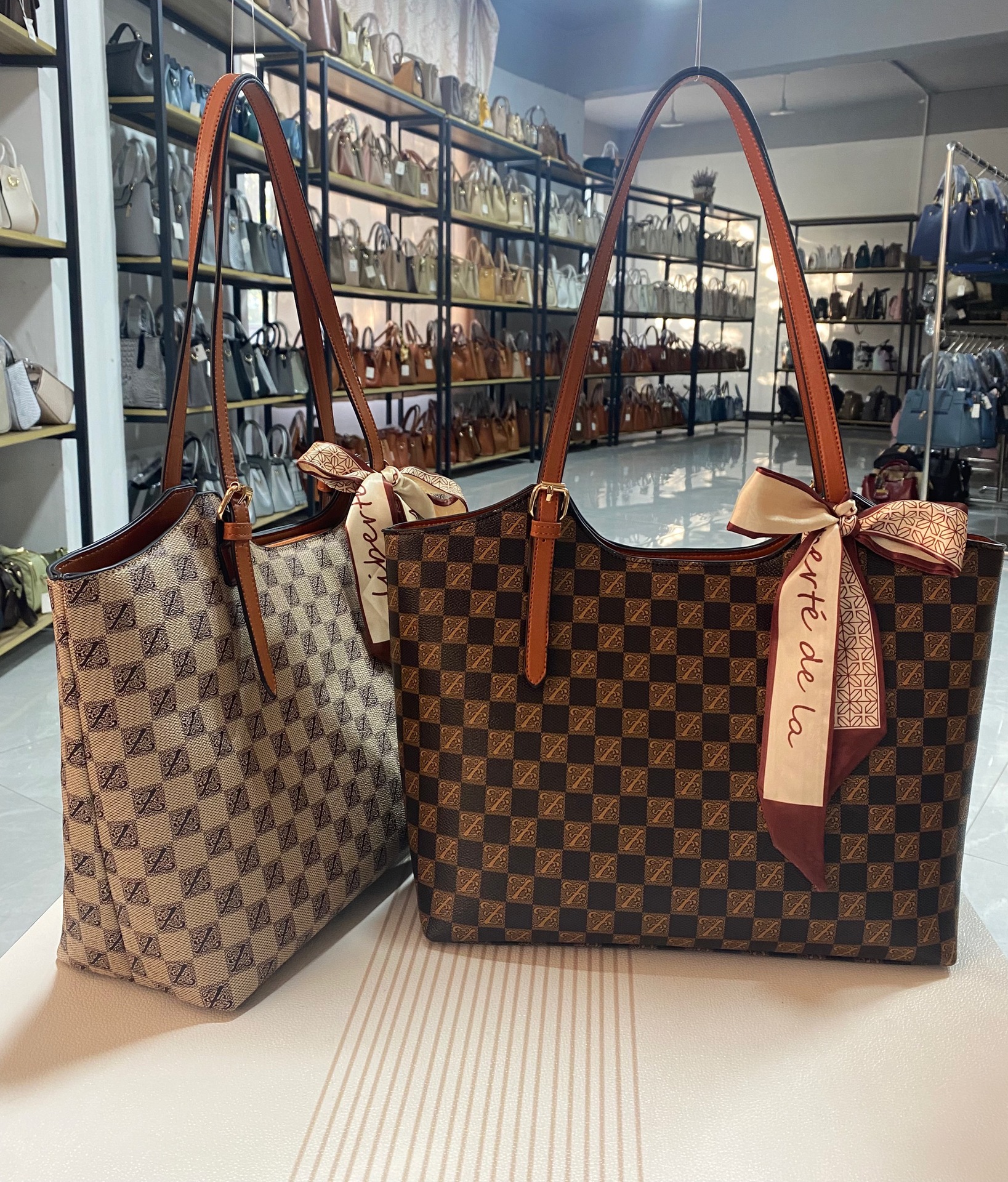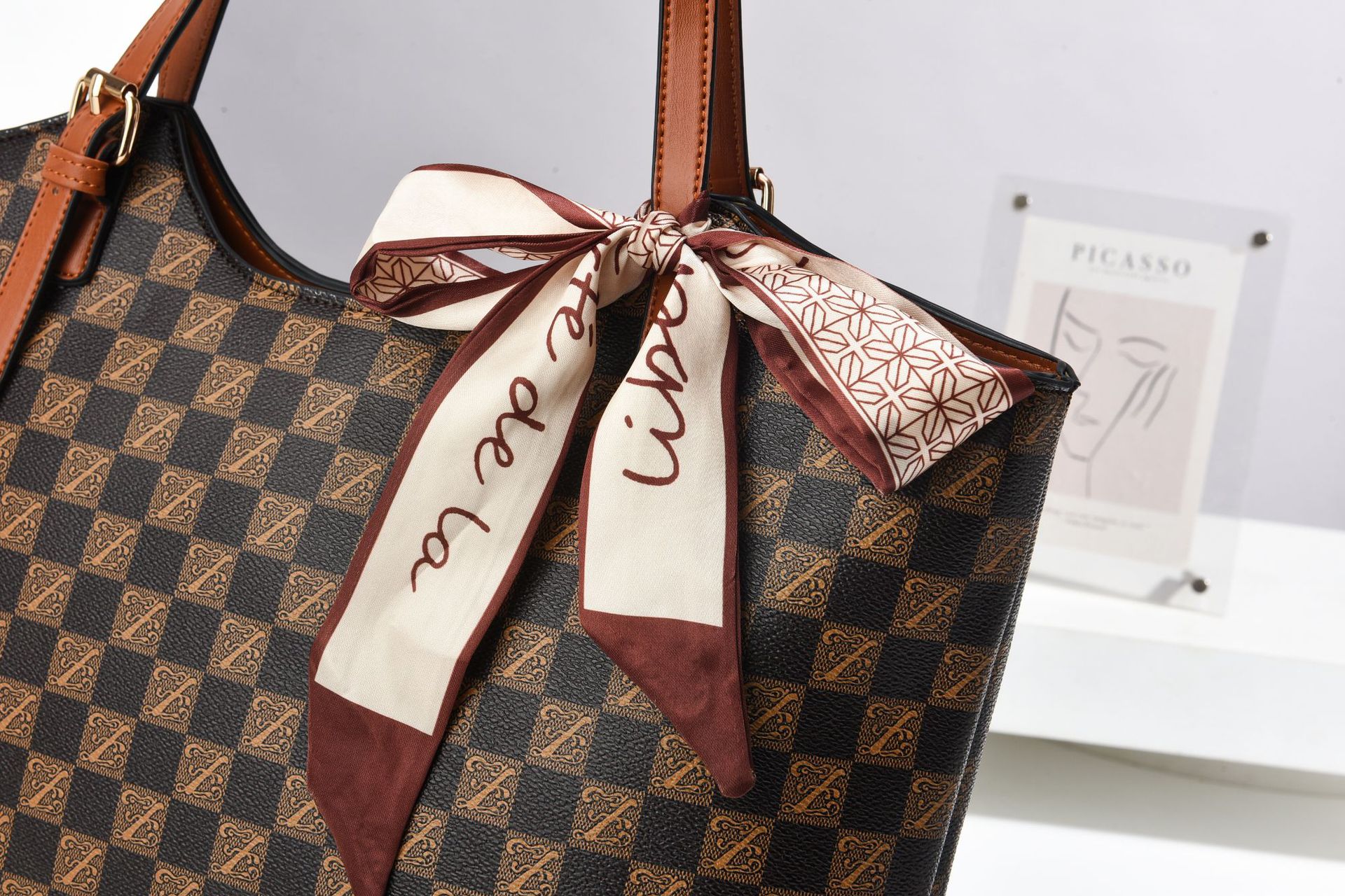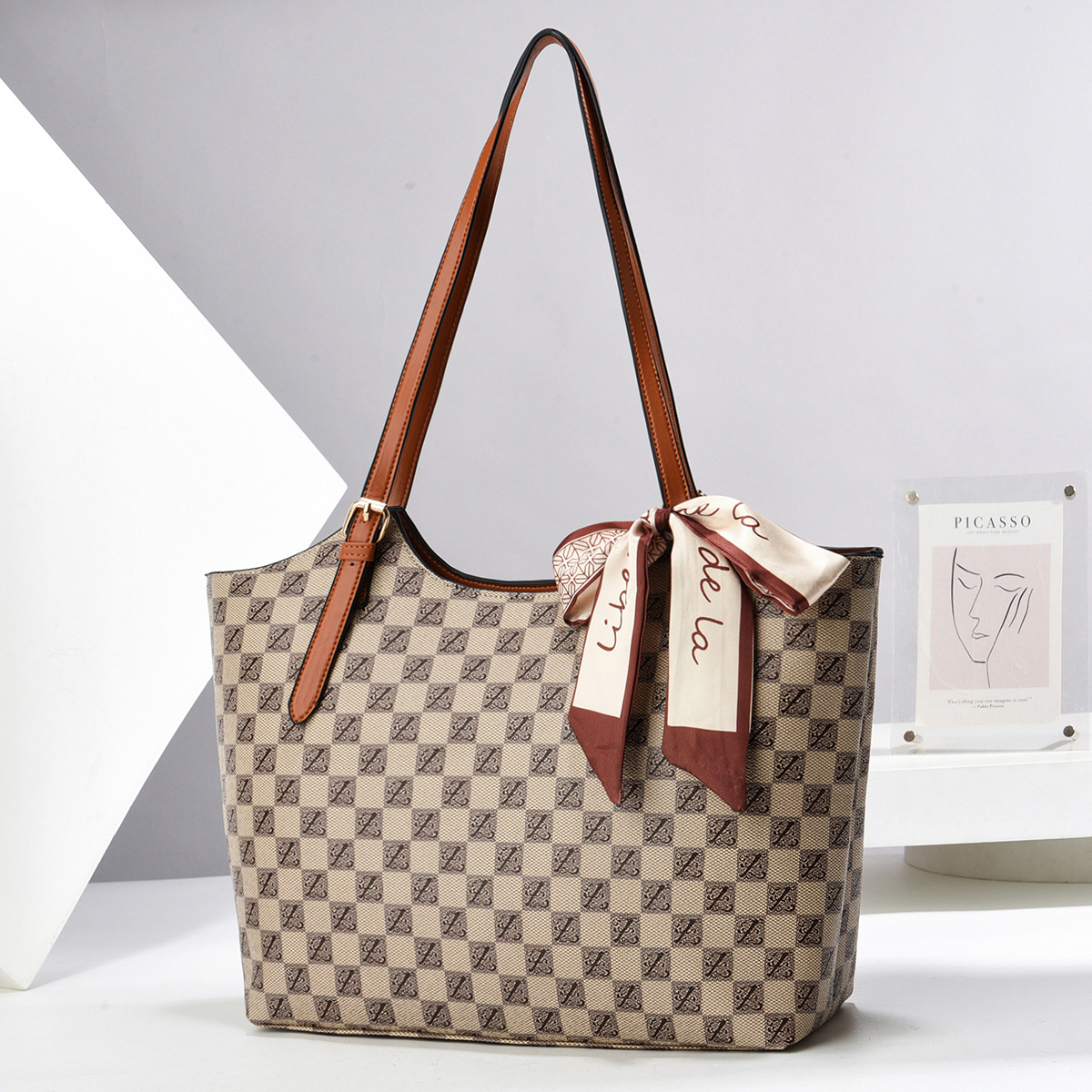 토트 백 체커 보드 타이 저우 여성 가방 여성용 여성용 가방 어깨 크로스 바디 백 섬유 올 매치 핸드백 백