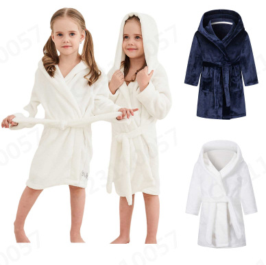 어린이 후드 잠옷 플란넬 남아 여아 산호 벨벳 잠옷 가을 겨울 사계절 목욕 가운 긴 소매 귀여운 스타일
