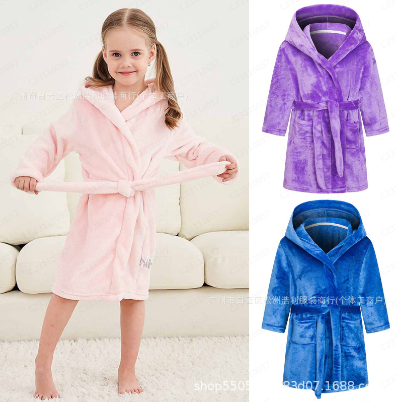 어린이 후드 잠옷 플란넬 남아 여아 산호 벨벳 잠옷 가을 겨울 사계절 목욕 가운 긴 소매 귀여운 스타일스토어 가기