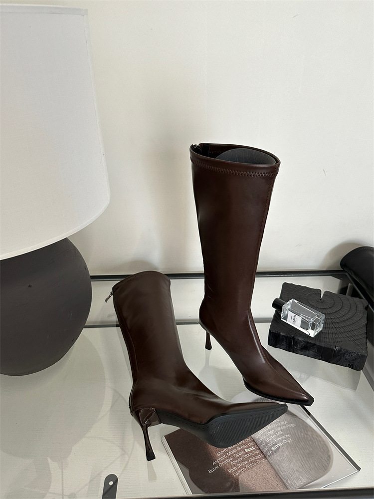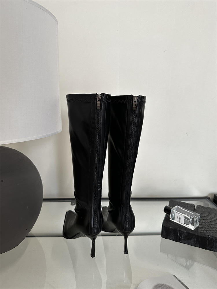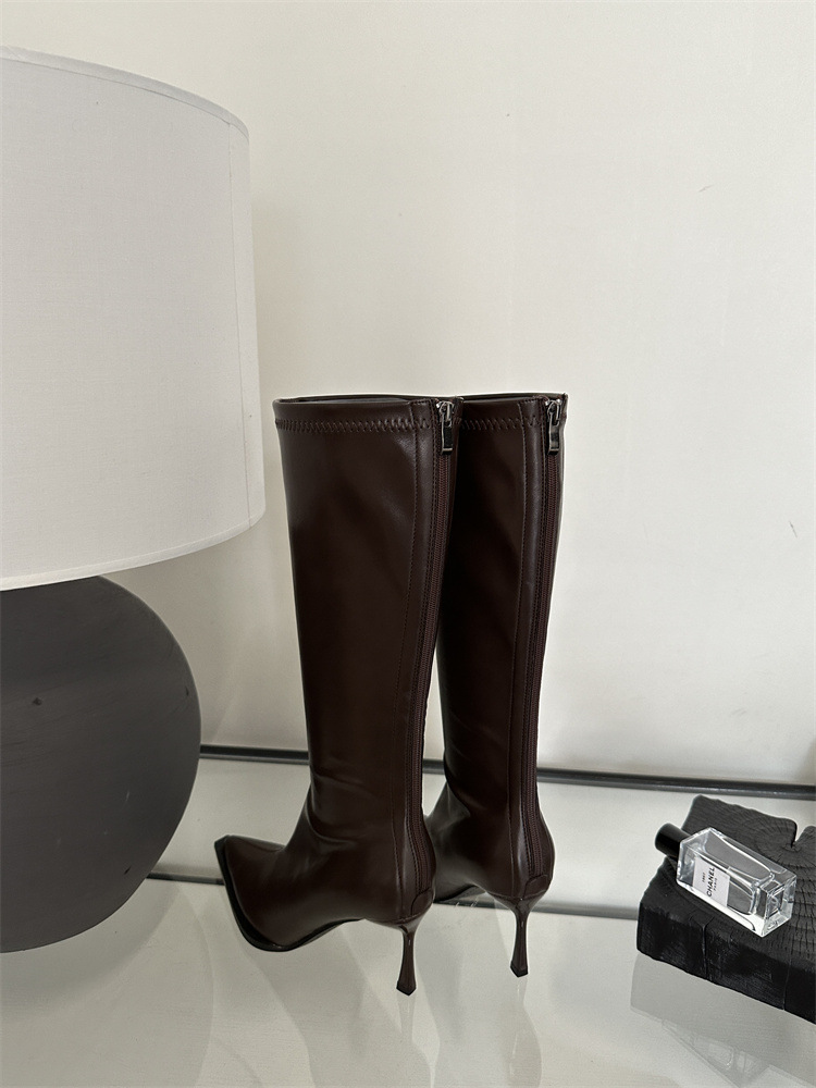 유럽과 미국 스타일이지만 무릎 롱 부츠 여성용 뾰족한 하이힐 부츠 작은 하이 부츠 리어 지퍼 슬리밍 스트레이트 탄성 부츠