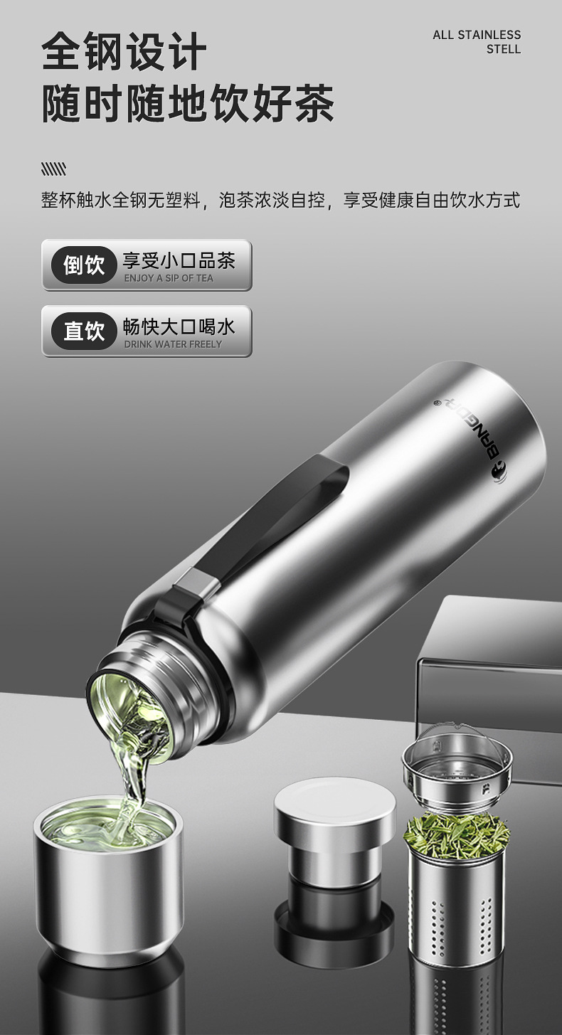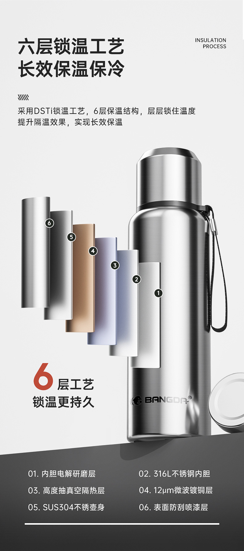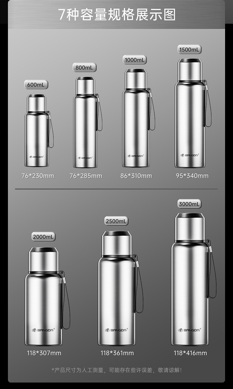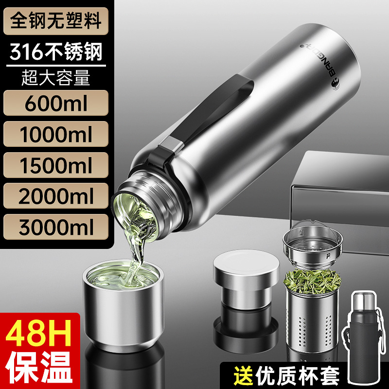 Bonda 316 스테인레스 스틸 라이너 진공 올 스틸 보온병 야외 여행 등산 휴대용 대용량 보온병