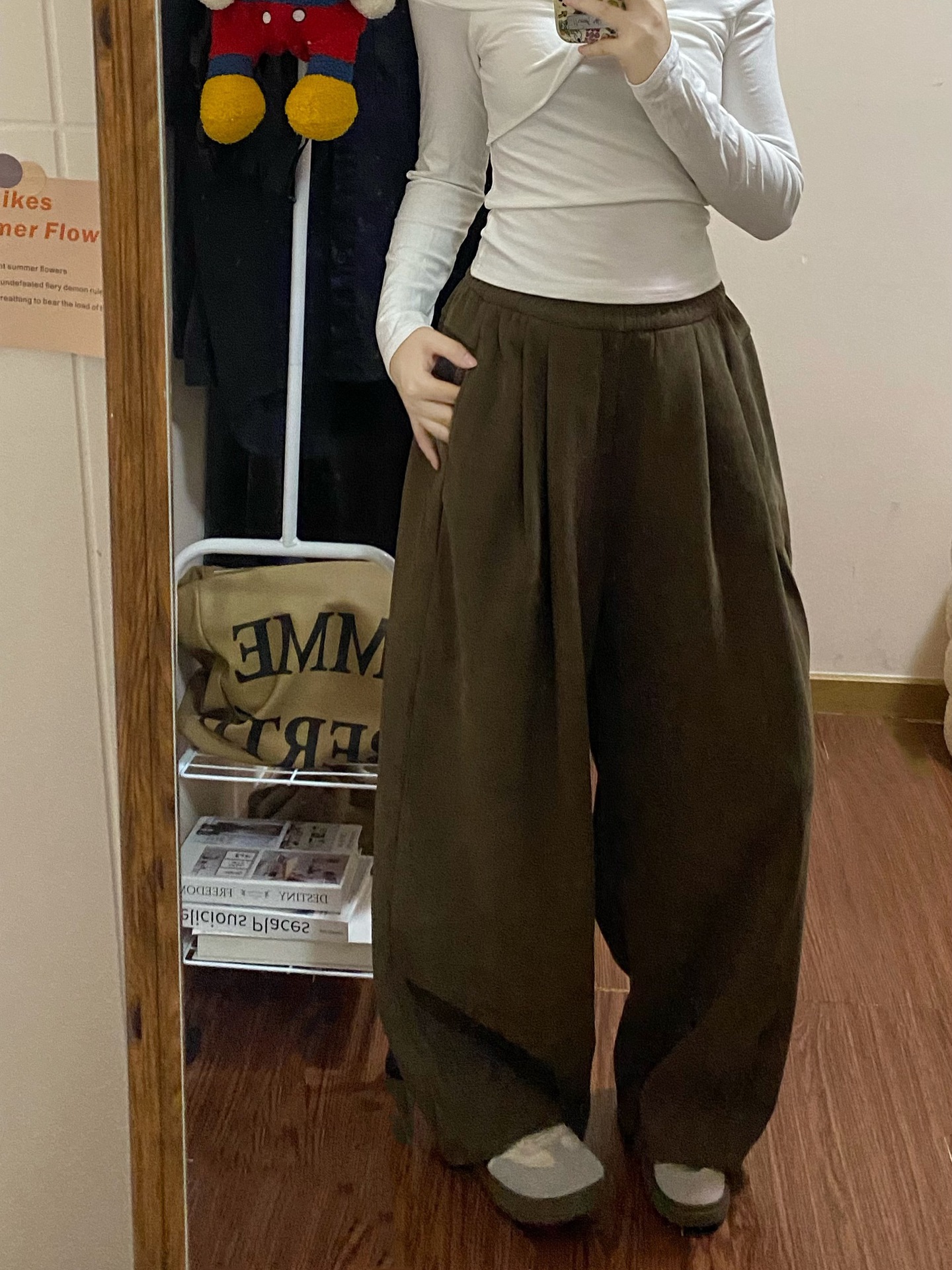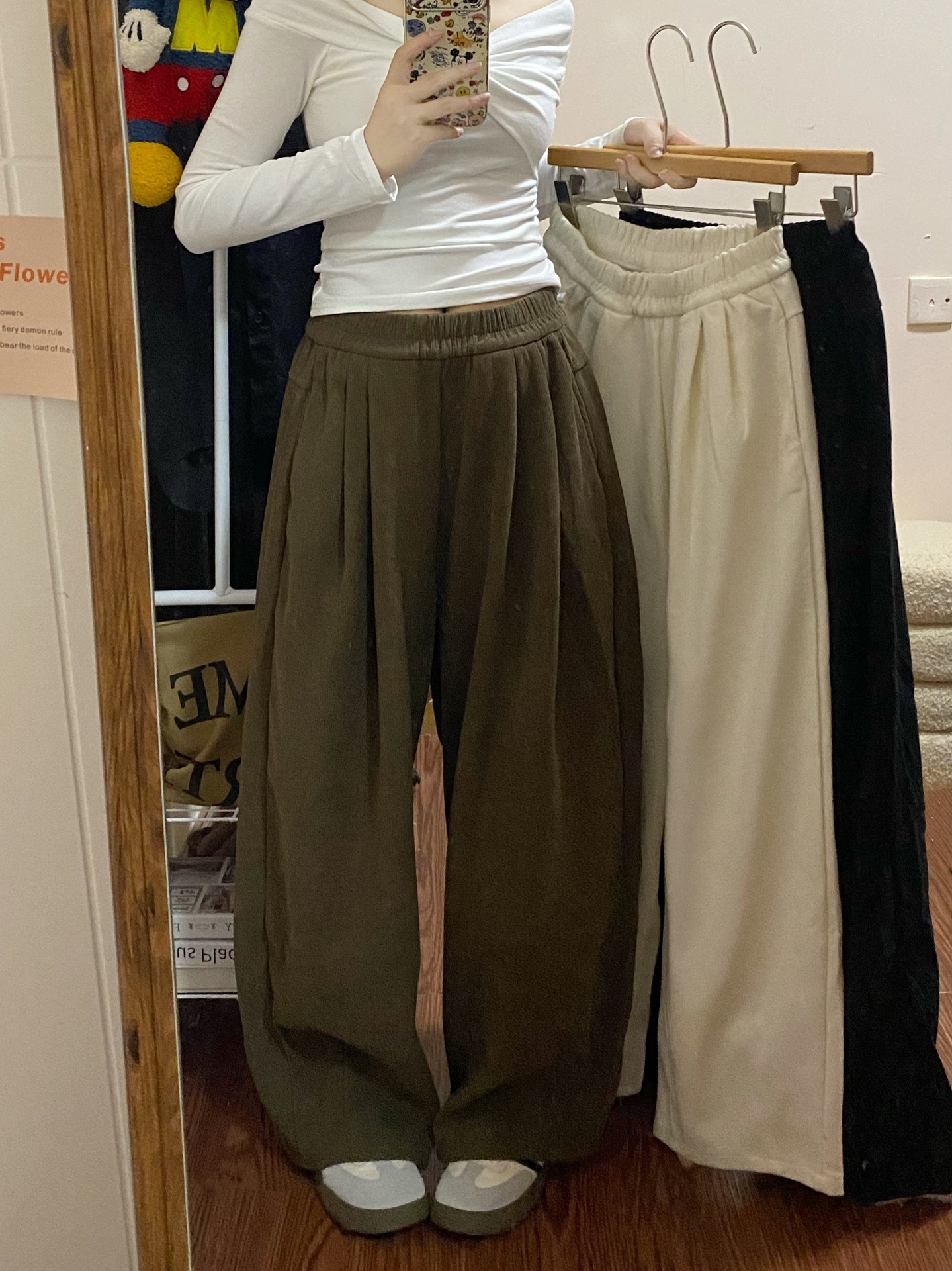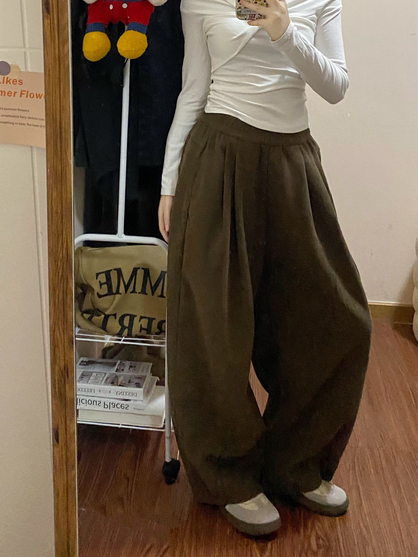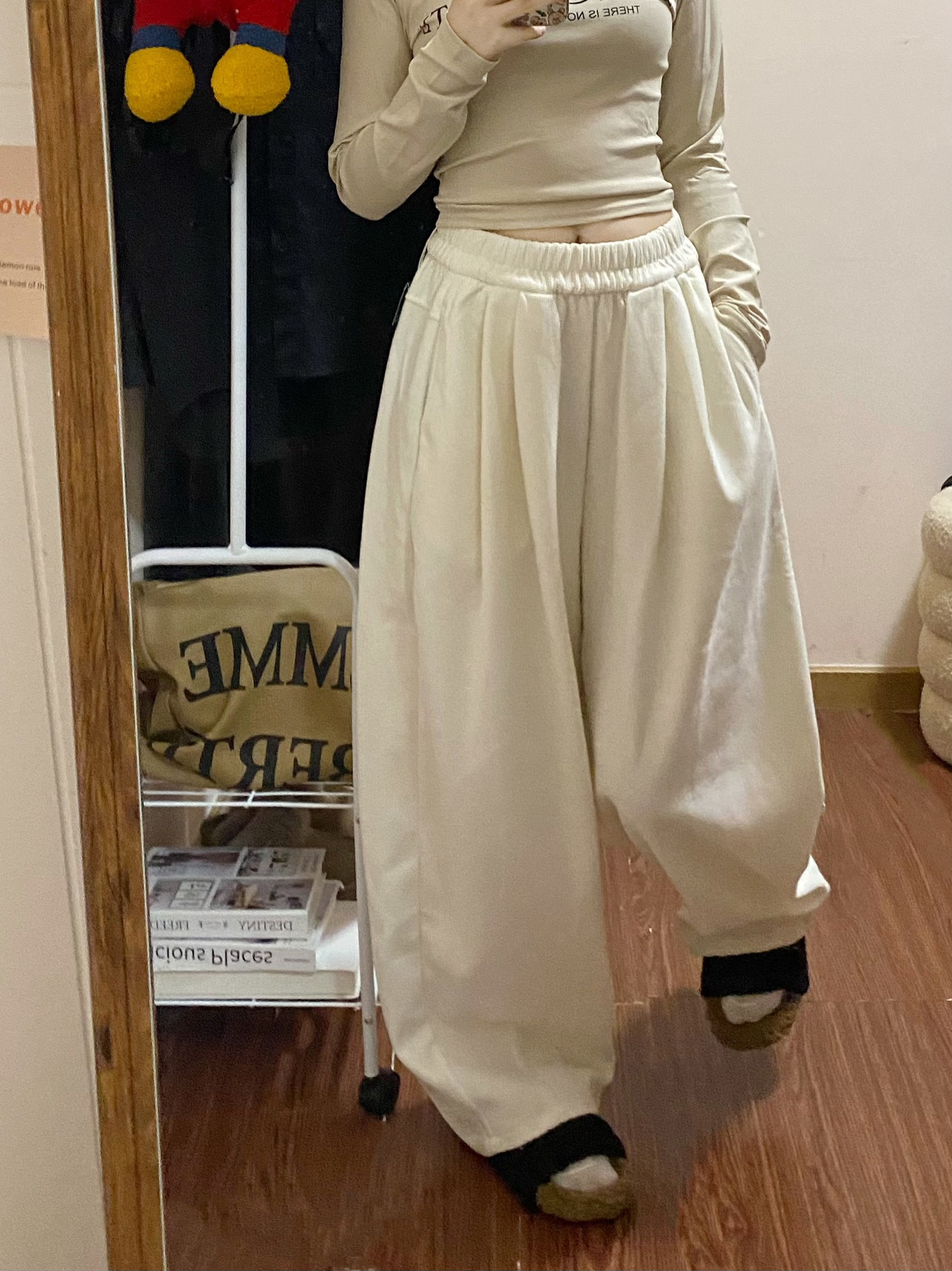 새로운 복합 가공 탄성 높은 허리 느슨한 슬리밍 풍선 핫팬츠 올 매치 캐주얼 고기 고기 걷기 넓은 다리 바지