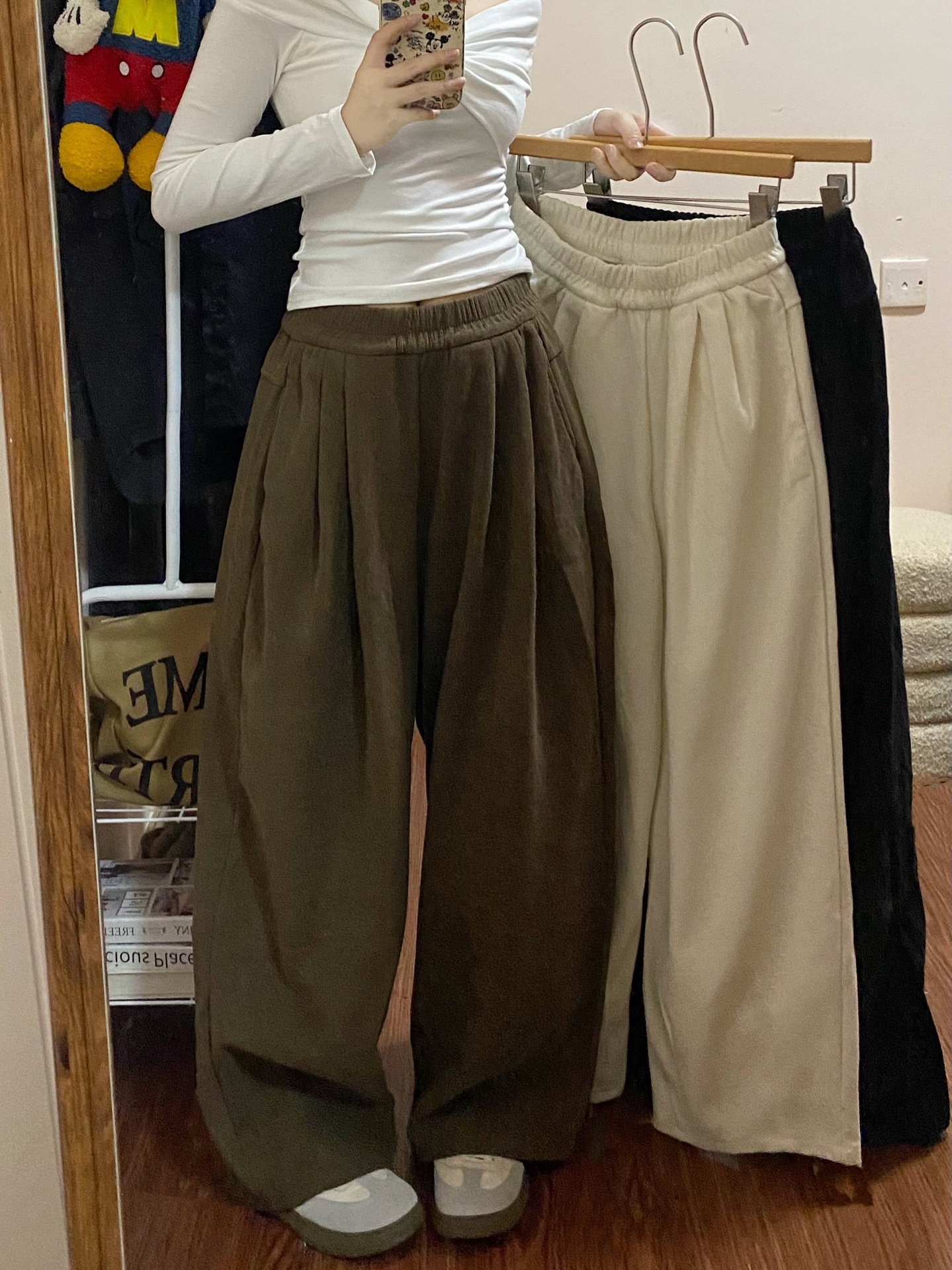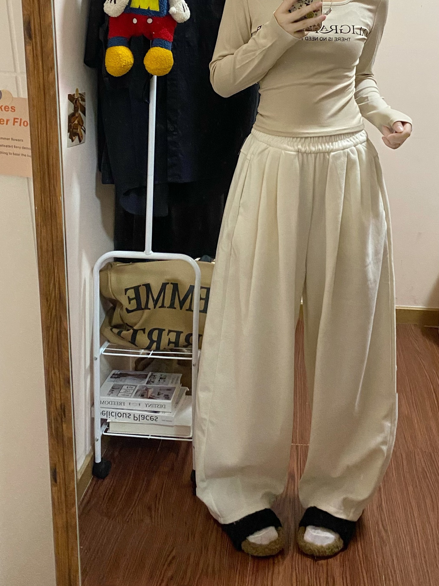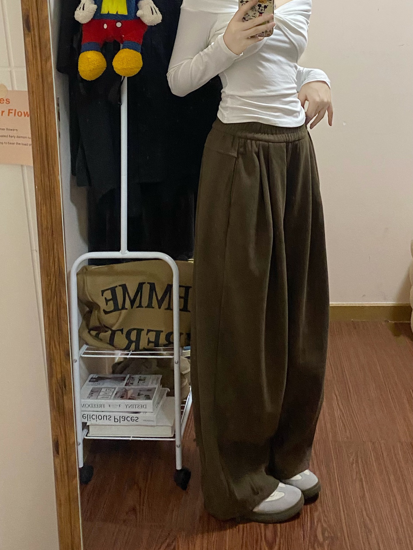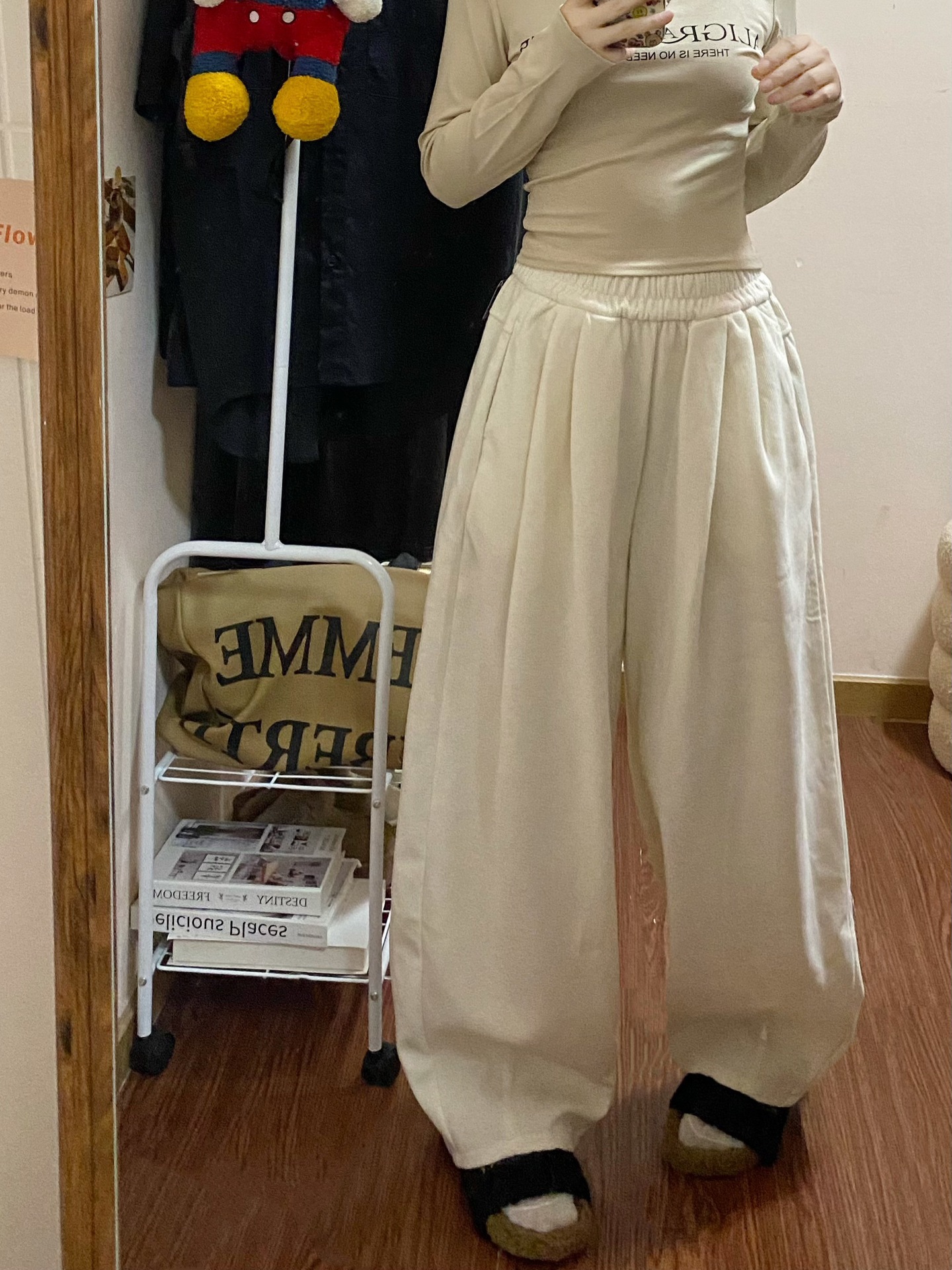 새로운 복합 가공 탄성 높은 허리 느슨한 슬리밍 풍선 핫팬츠 올 매치 캐주얼 고기 고기 걷기 넓은 다리 바지