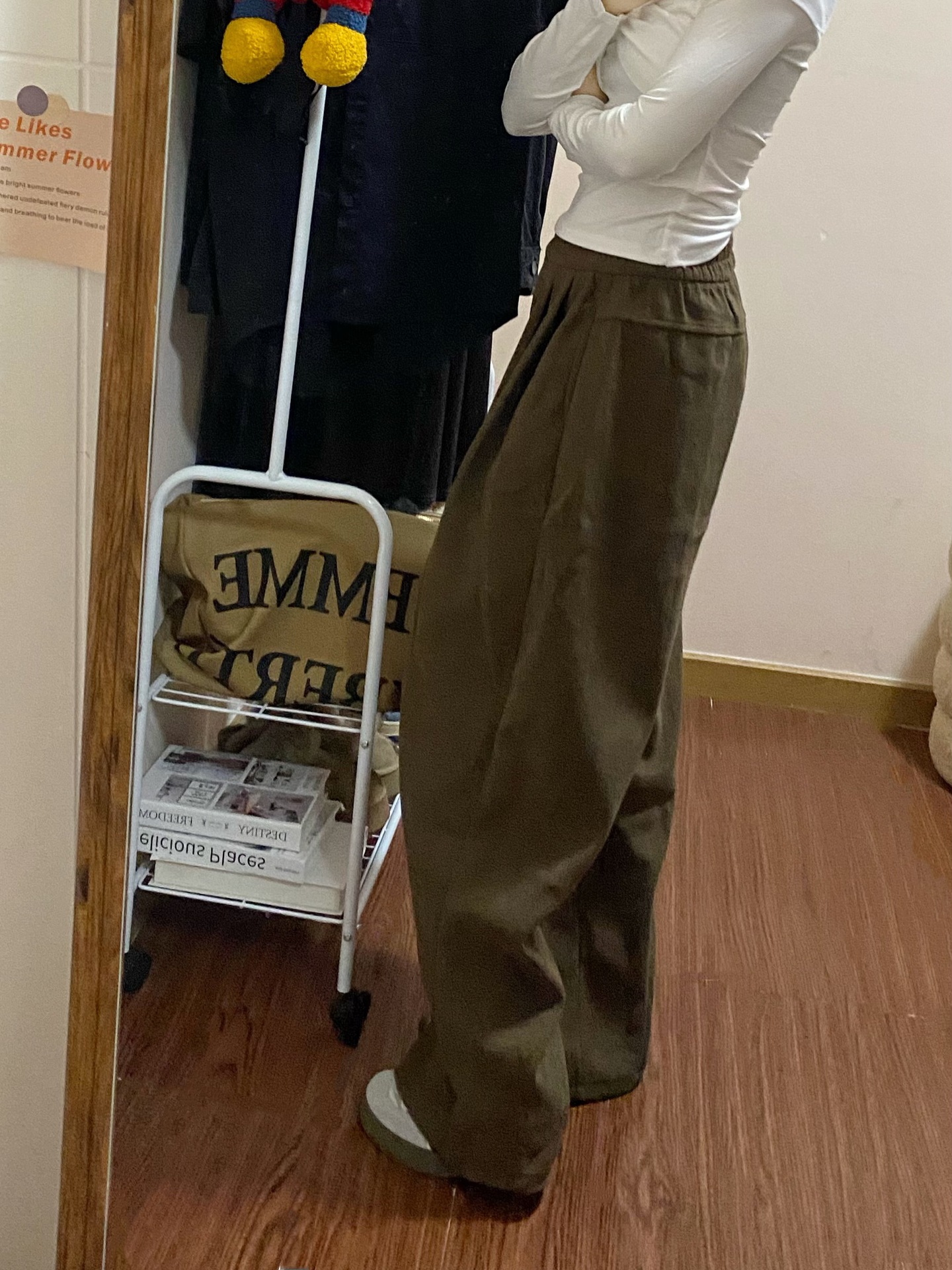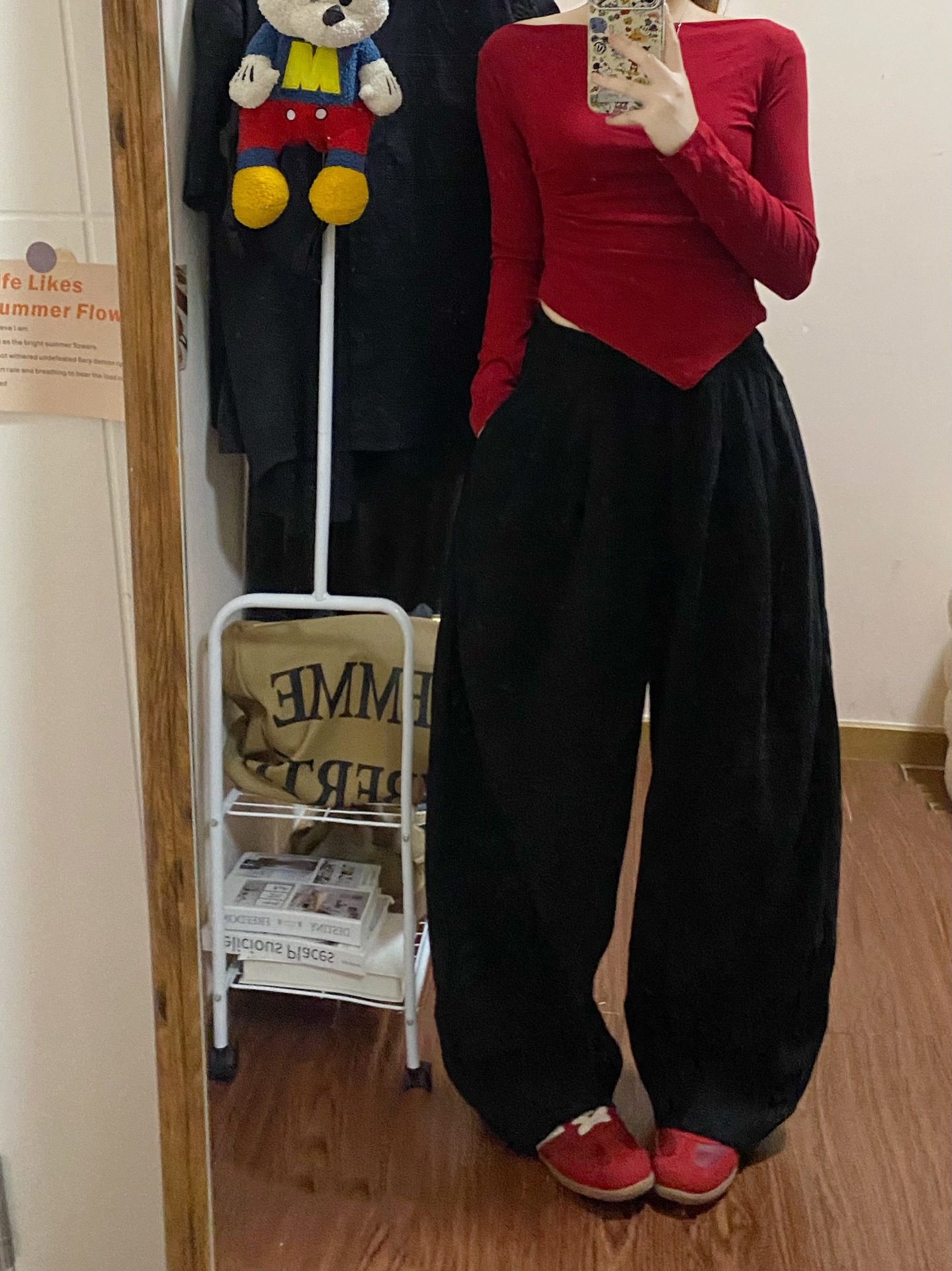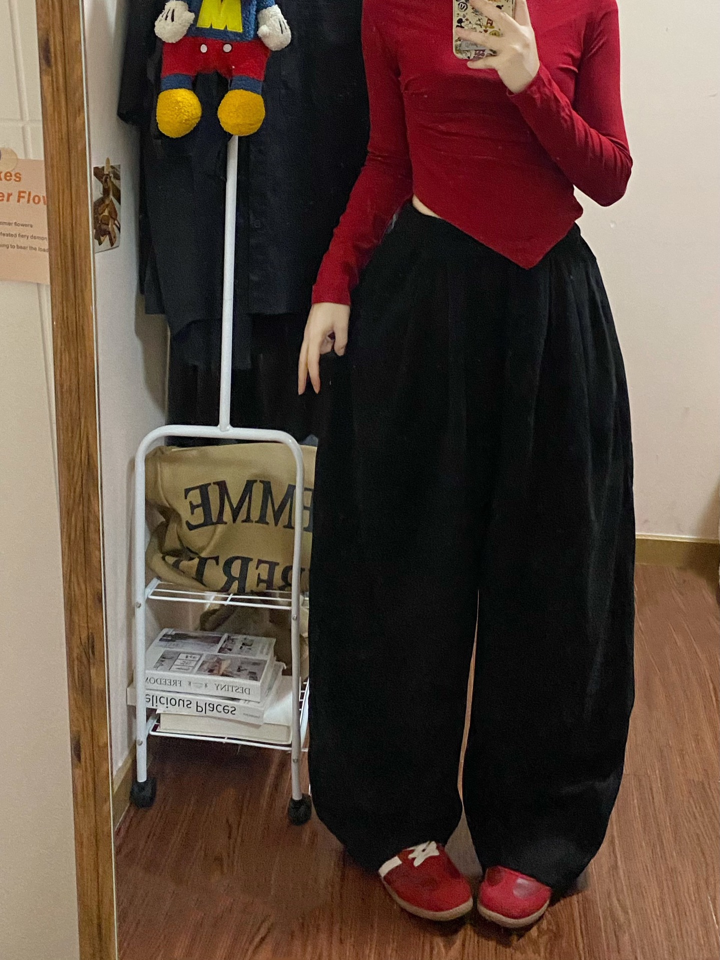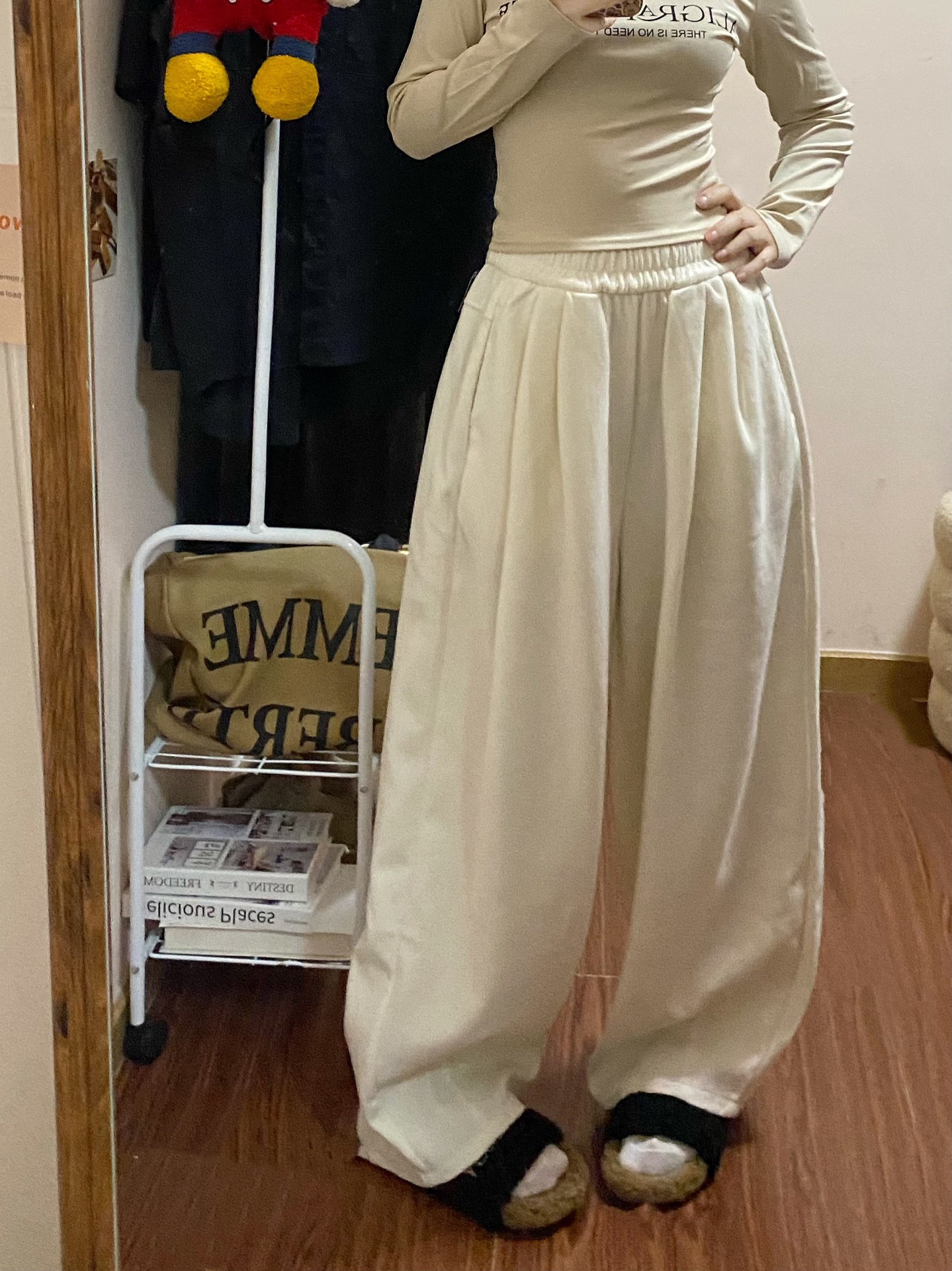 새로운 복합 가공 탄성 높은 허리 느슨한 슬리밍 풍선 핫팬츠 올 매치 캐주얼 고기 고기 걷기 넓은 다리 바지