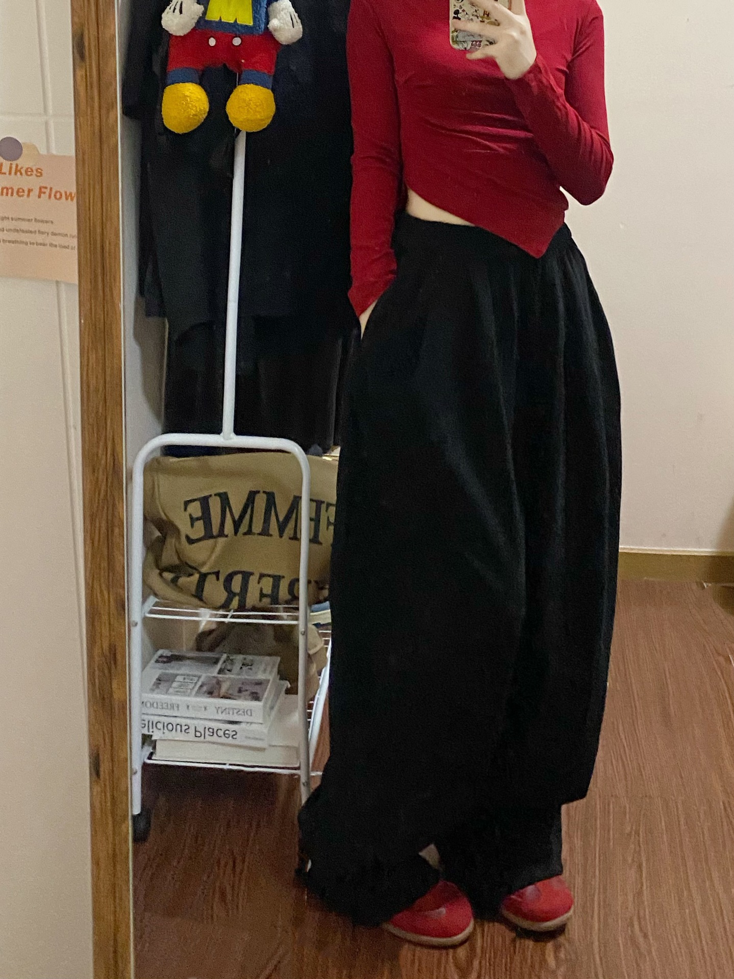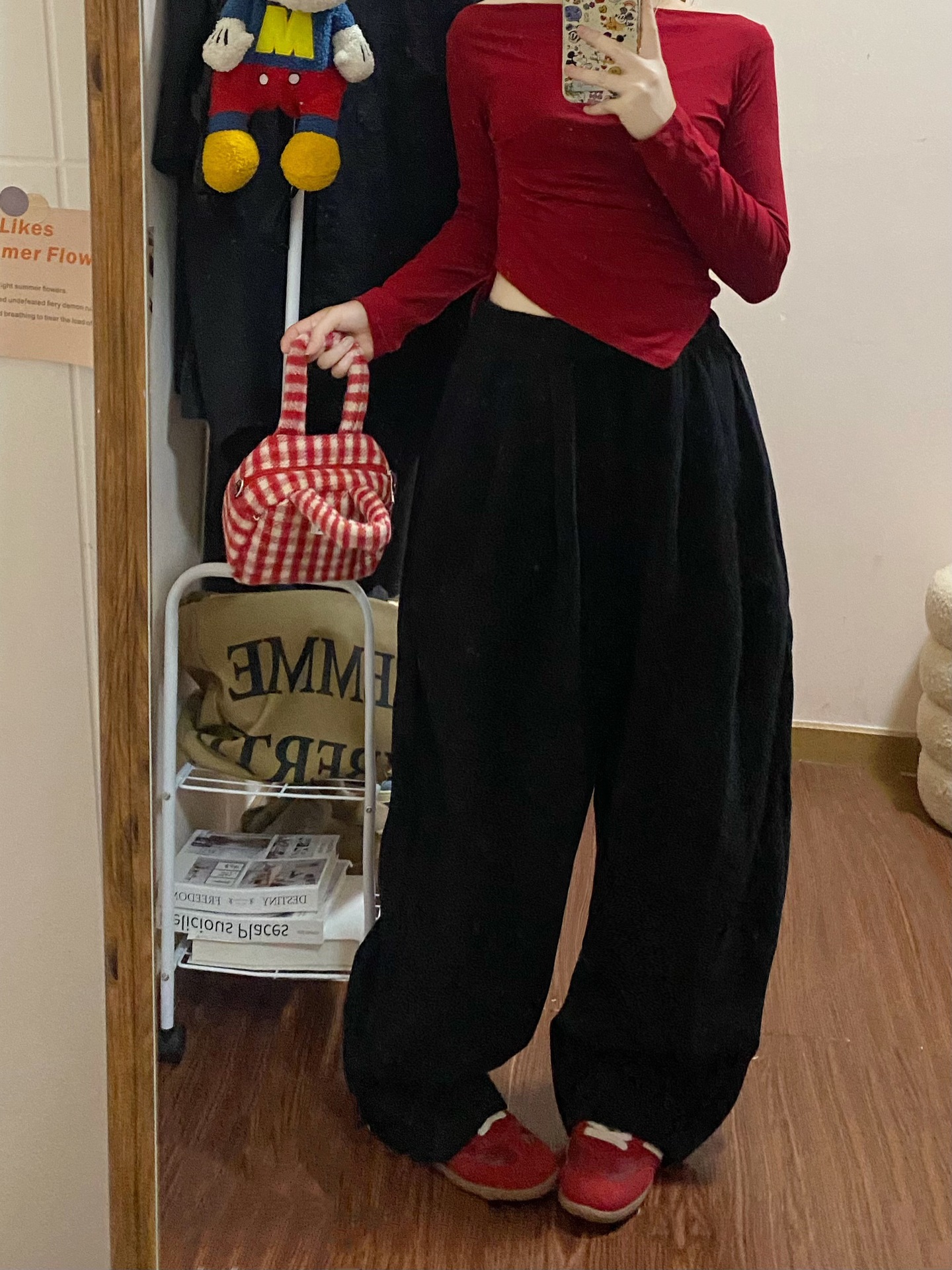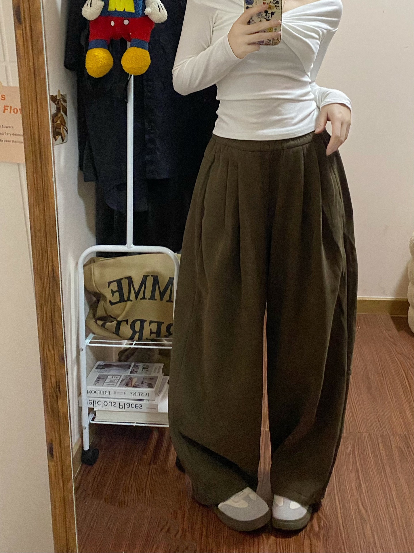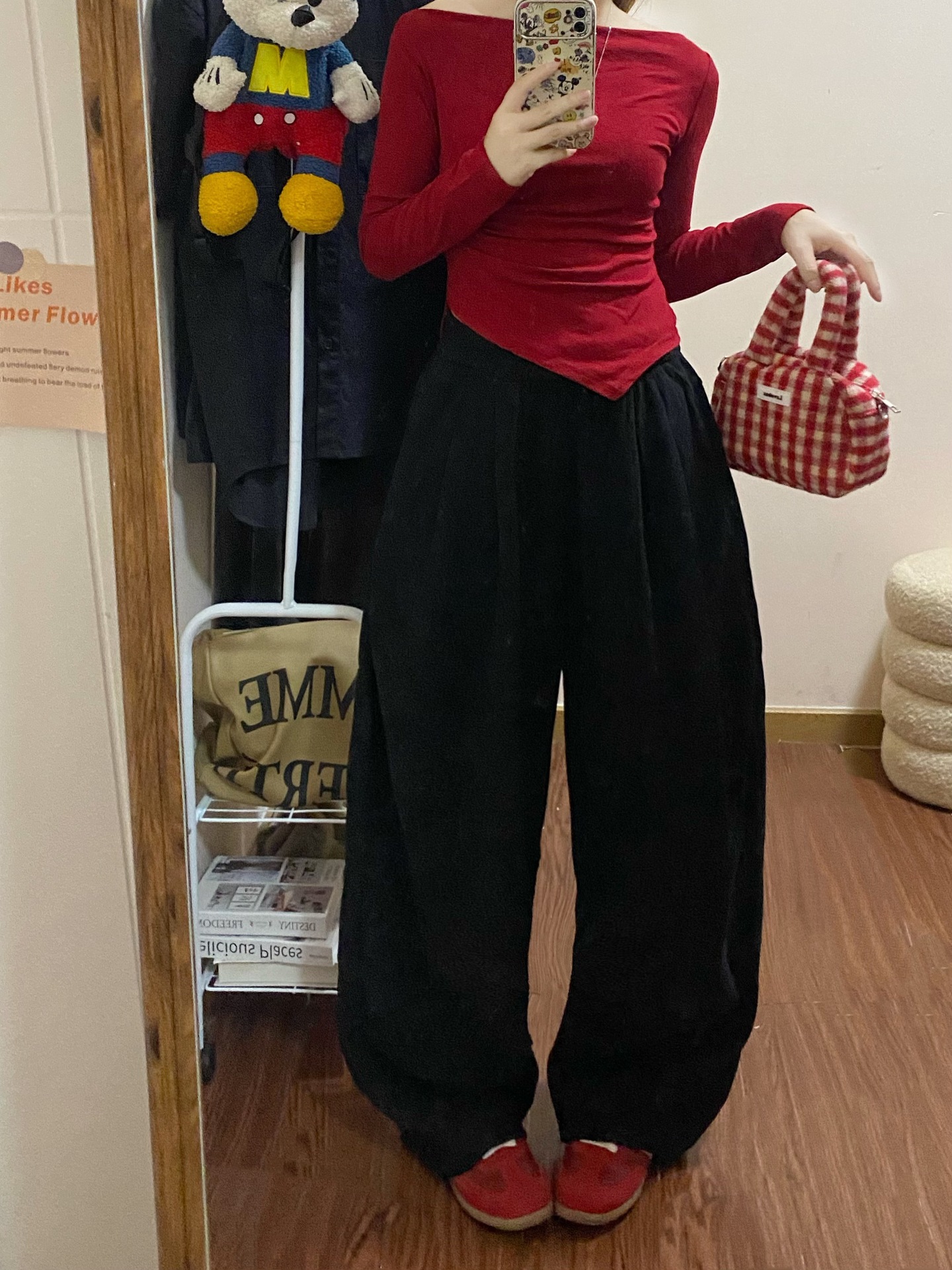 새로운 복합 가공 탄성 높은 허리 느슨한 슬리밍 풍선 핫팬츠 올 매치 캐주얼 고기 고기 걷기 넓은 다리 바지