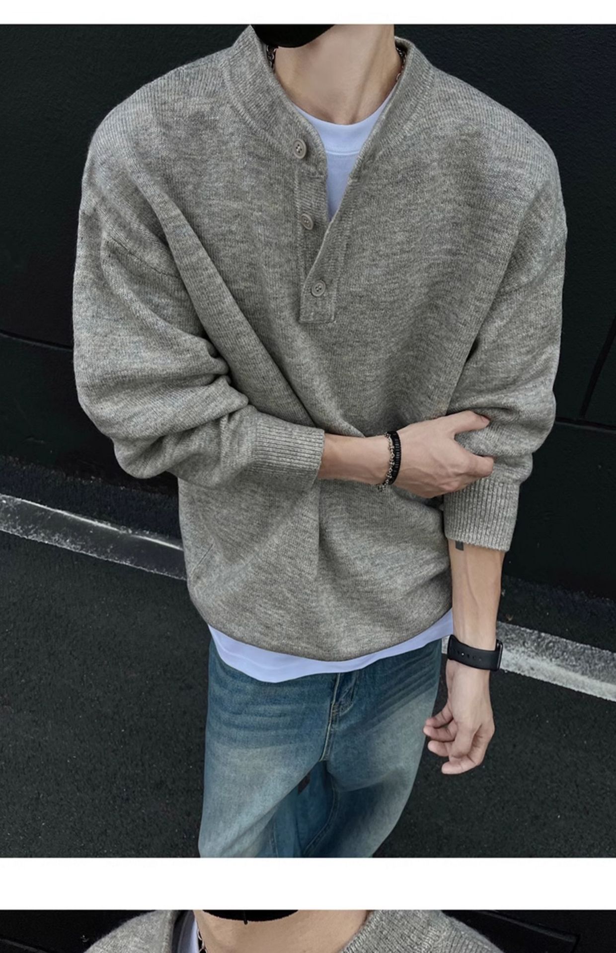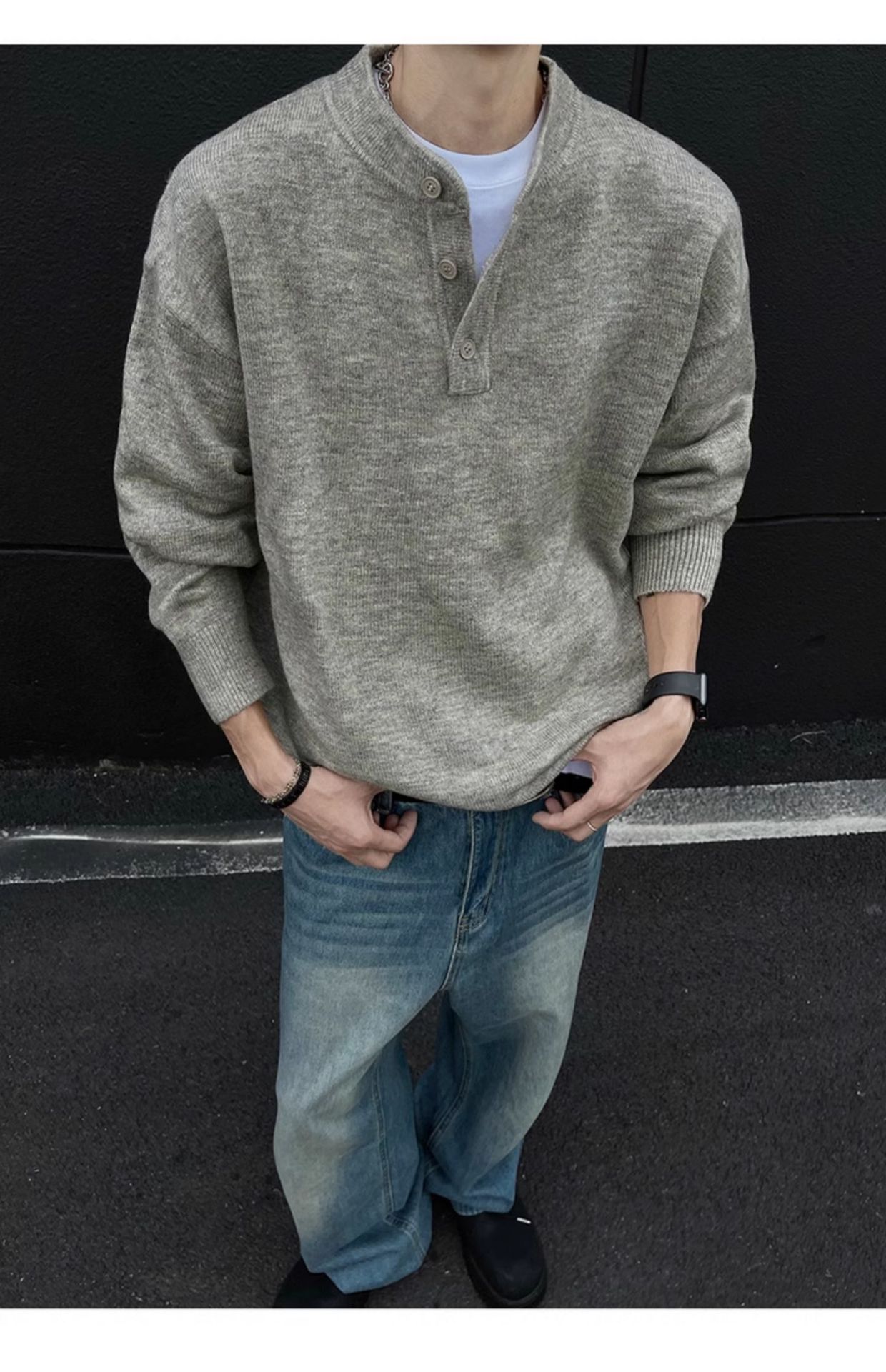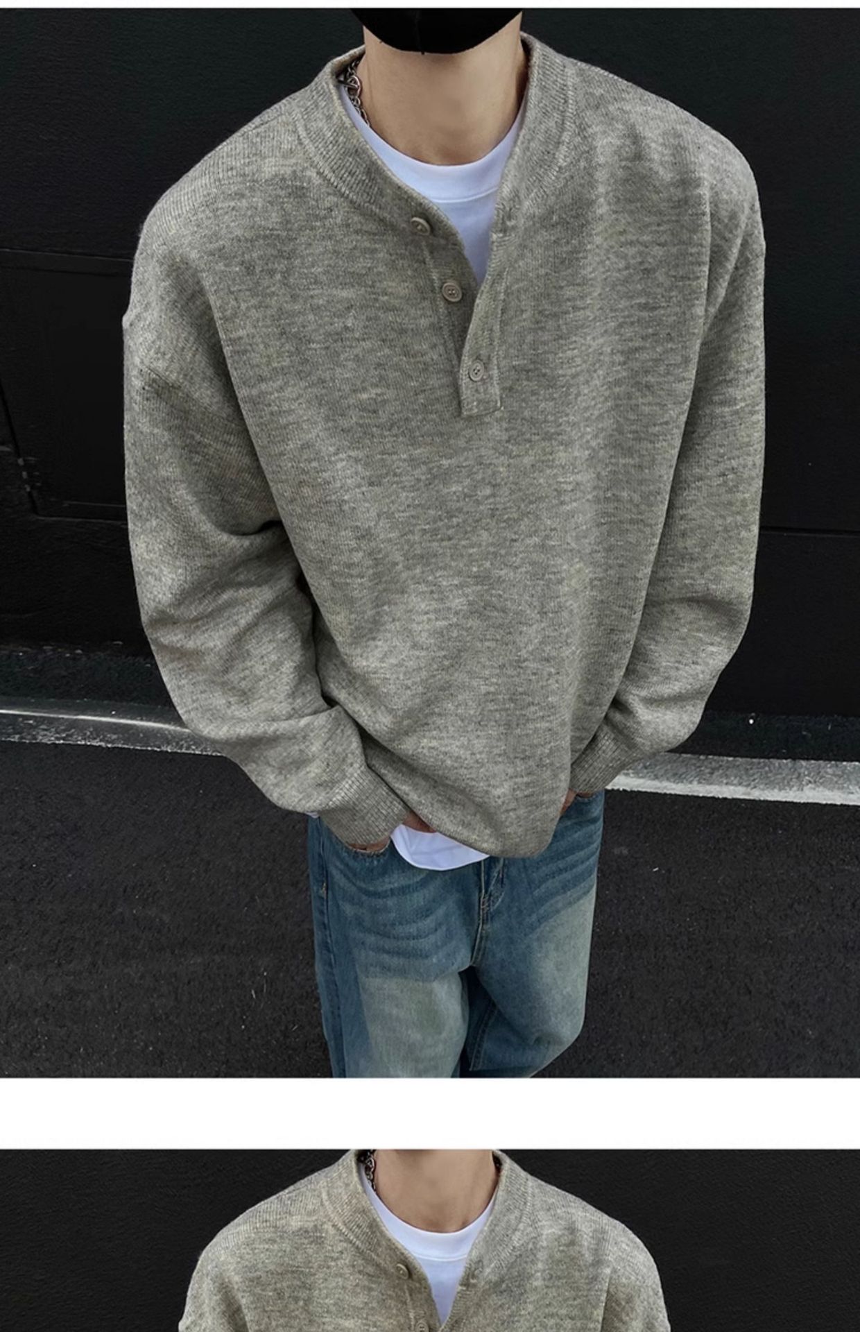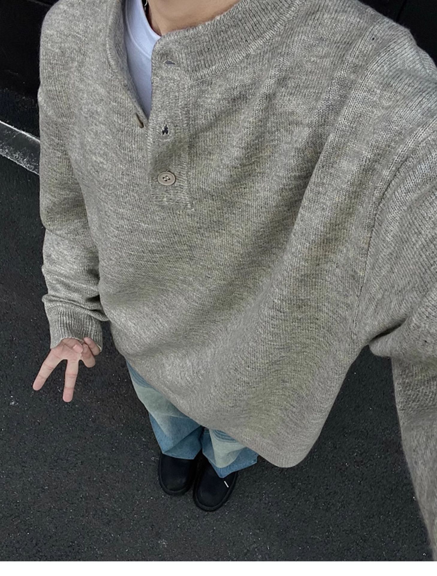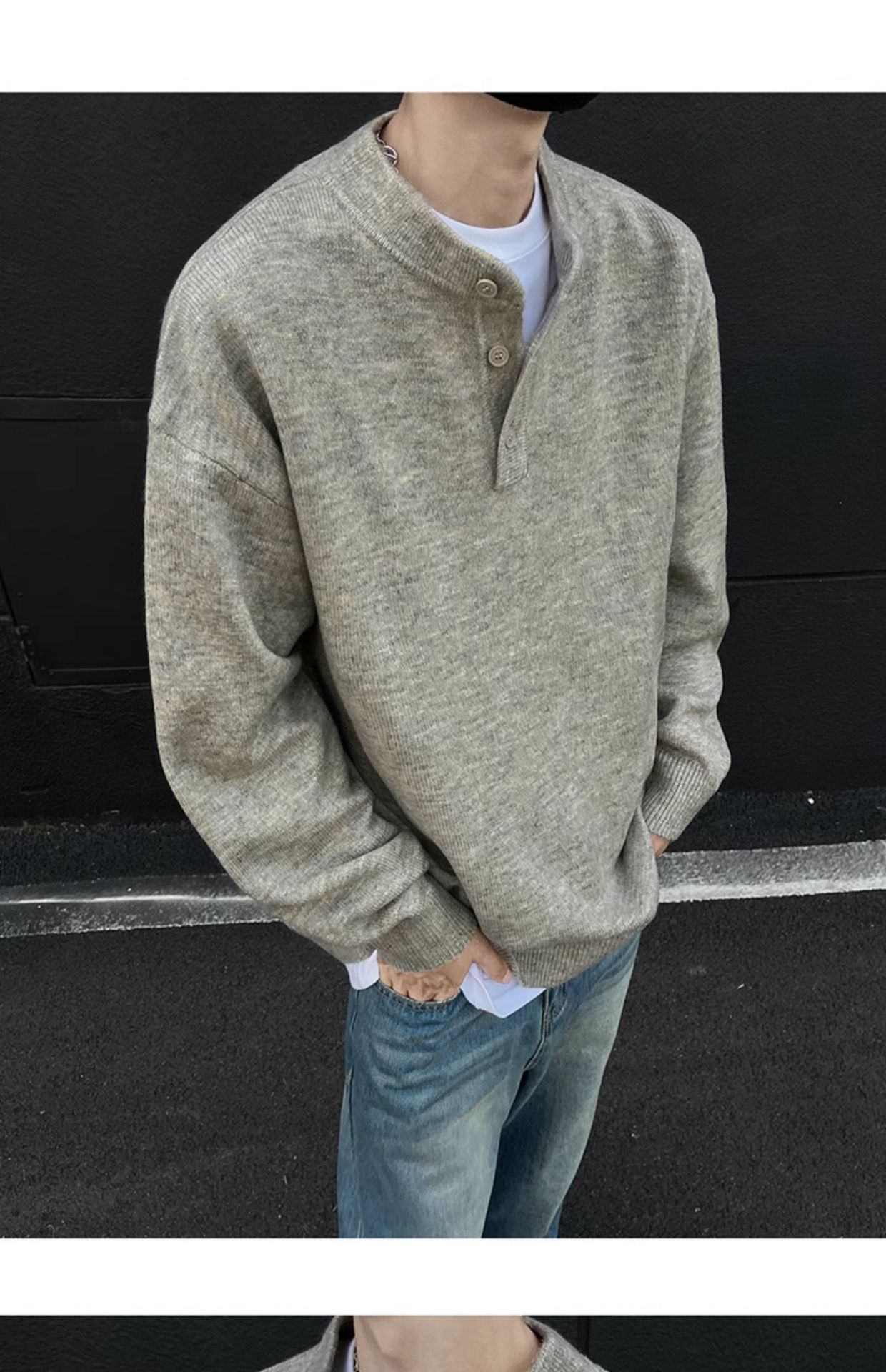 클린핏 헨리 칼라 스웨터 남자 가을 겨울 한국 스타일 긴 소매 그레이 스웨터 아메리칸 스타일 레트로 스웨터 재킷스토어 가기