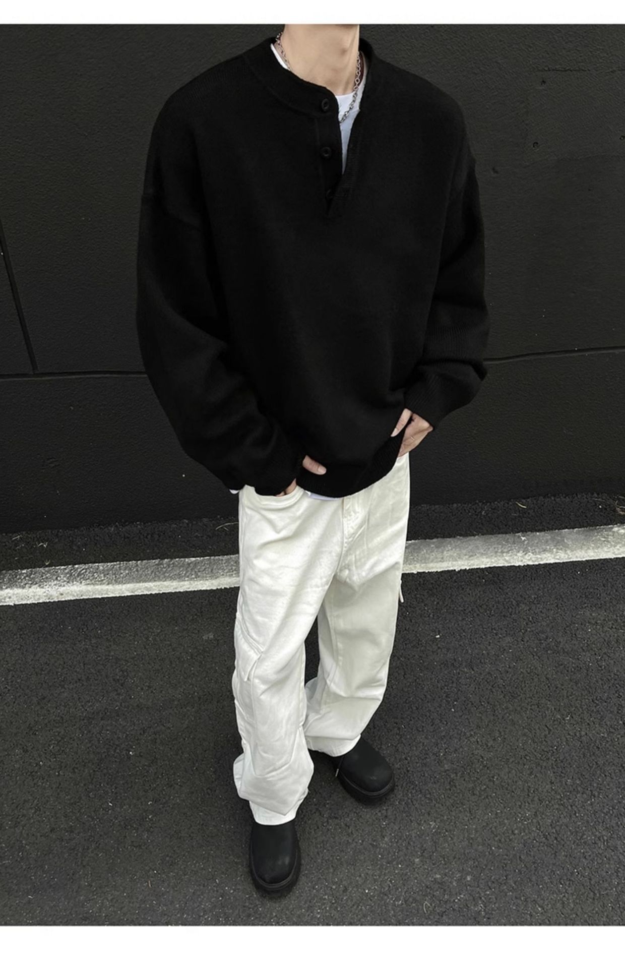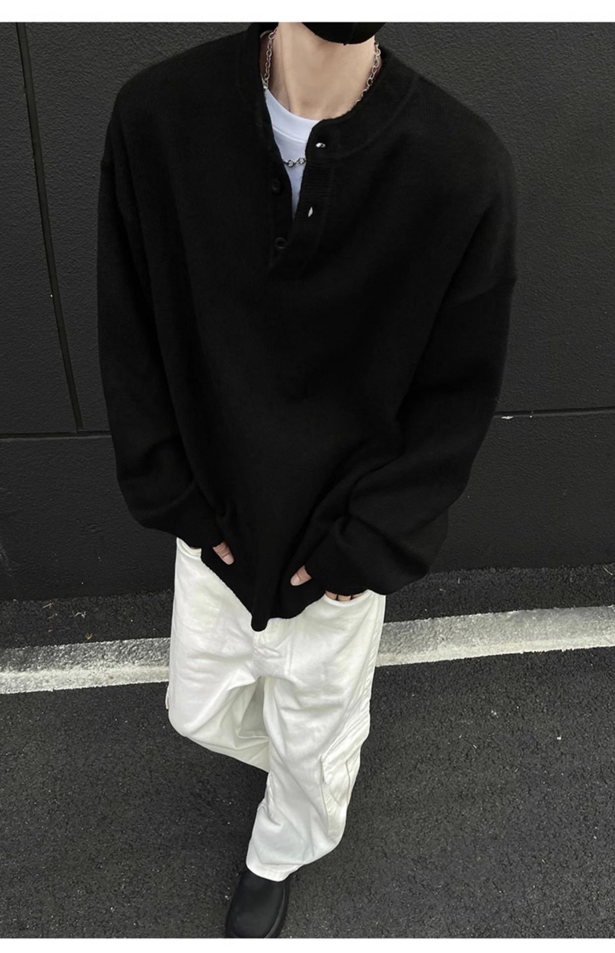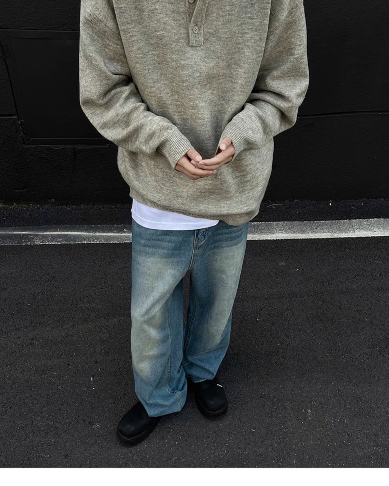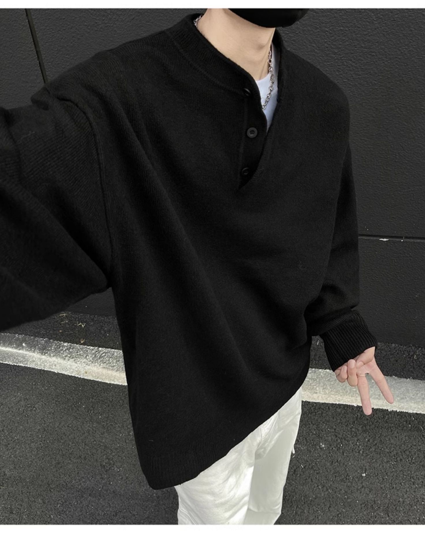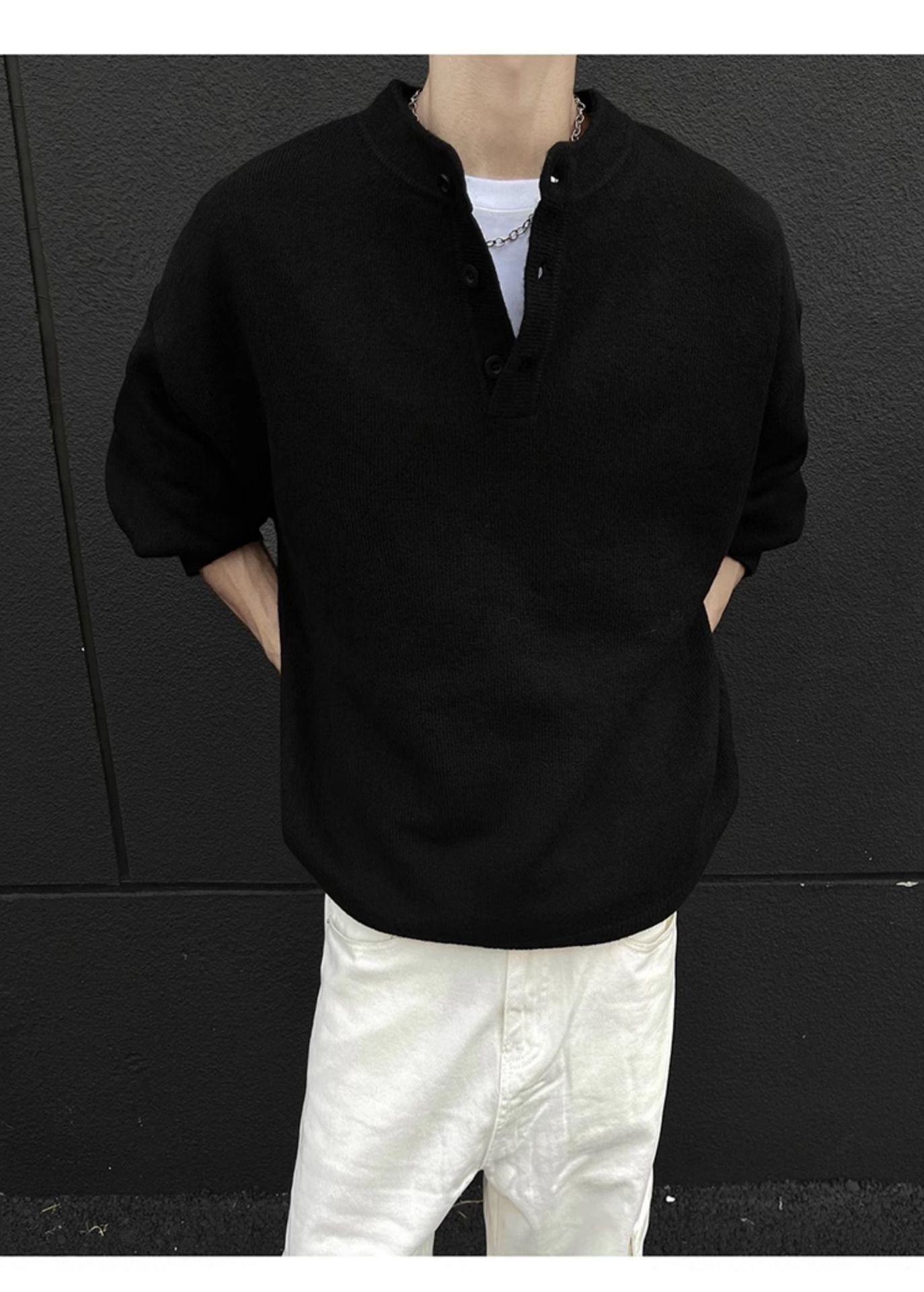 클린핏 헨리 칼라 스웨터 남자 가을 겨울 한국 스타일 긴 소매 그레이 스웨터 아메리칸 스타일 레트로 스웨터 재킷스토어 가기