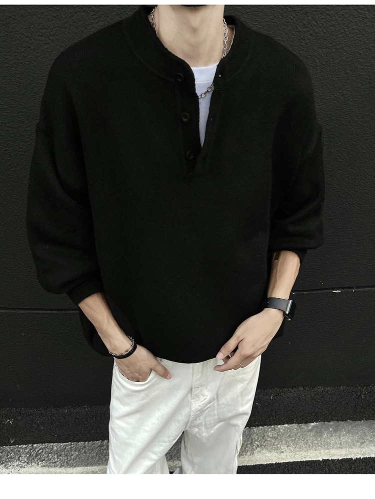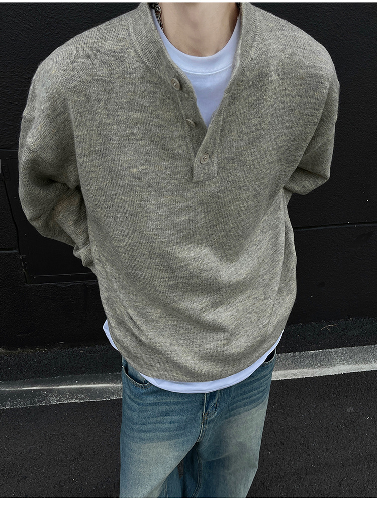 클린핏 헨리 칼라 스웨터 남자 가을 겨울 한국 스타일 긴 소매 그레이 스웨터 아메리칸 스타일 레트로 스웨터 재킷