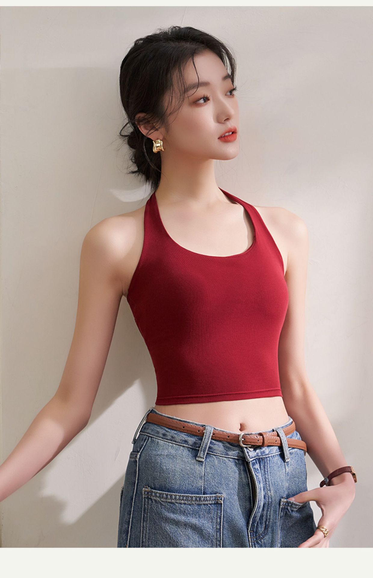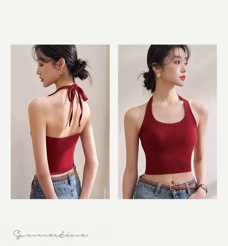 여자 홀터 카미솔, 가슴 패드 짧은 여름 의상 레트로 홍콩 스타일 속옷 레드베이스 탑