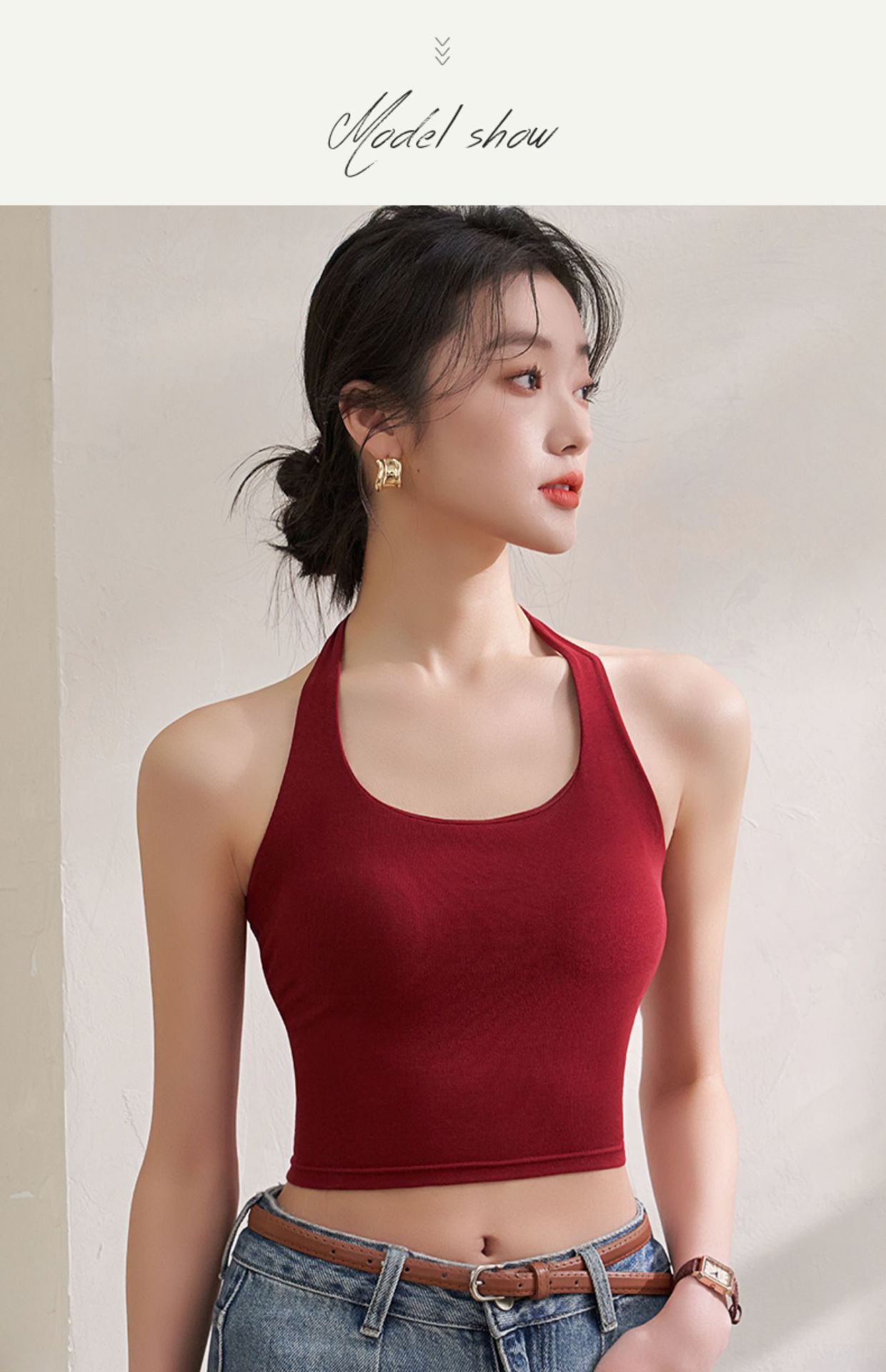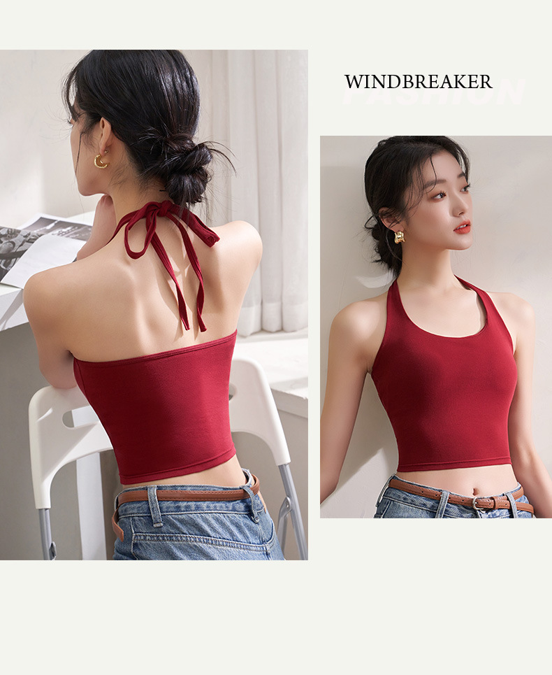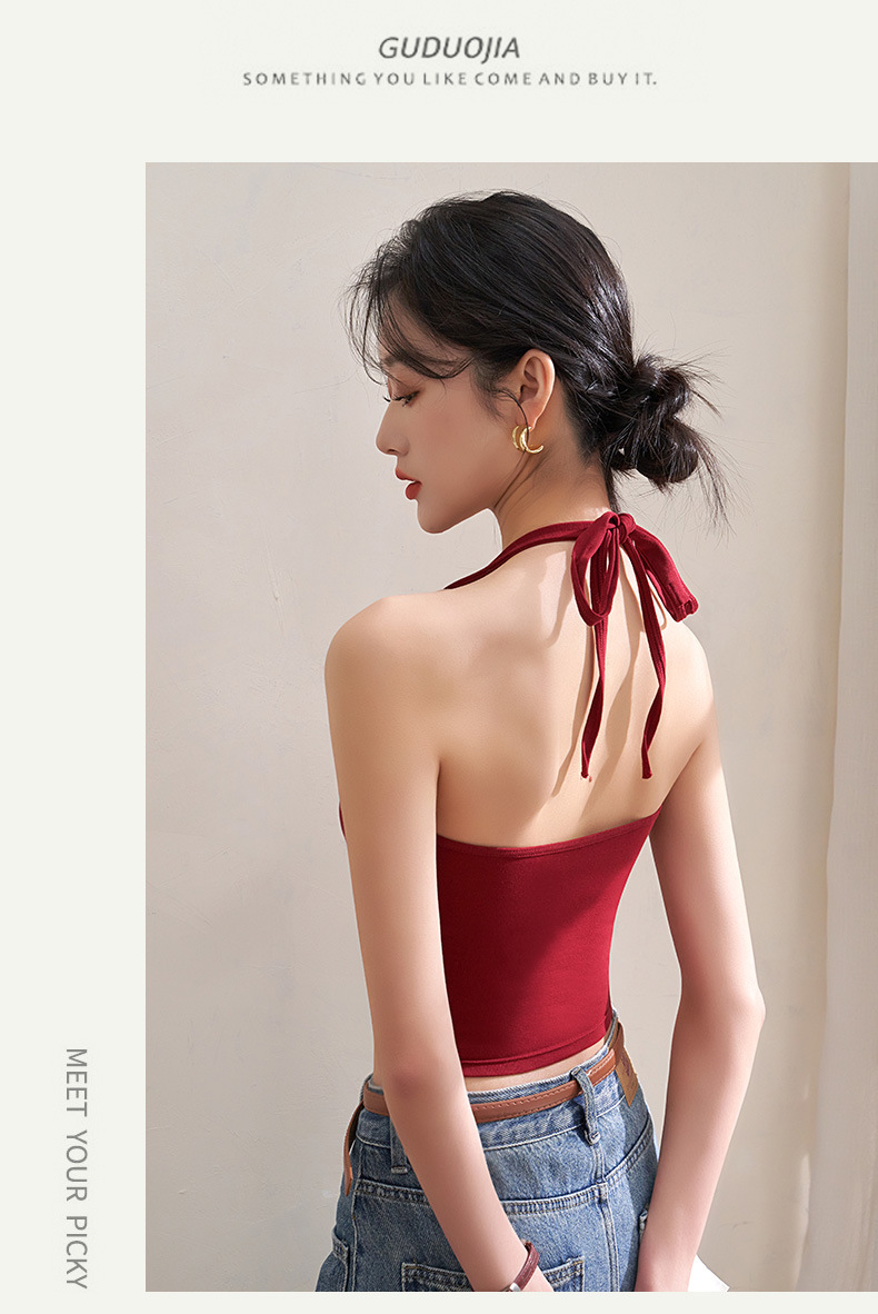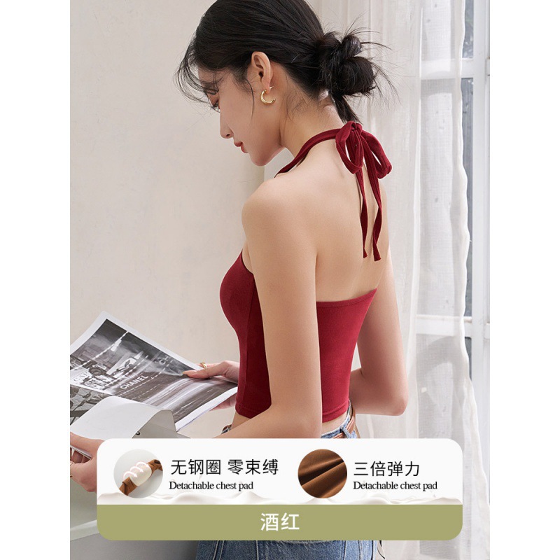 여자 홀터 카미솔, 가슴 패드 짧은 여름 의상 레트로 홍콩 스타일 속옷 레드베이스 탑스토어 가기