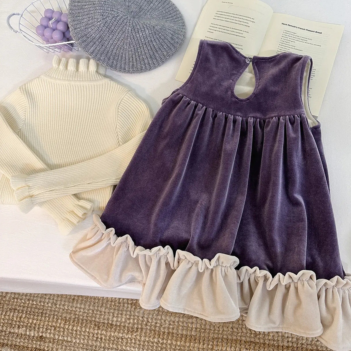 소녀의 가을과 겨울 벨벳 원피스 어린이 기모 기질 공주 스커트 어린 소녀의 하이 엔드 생일 원피스