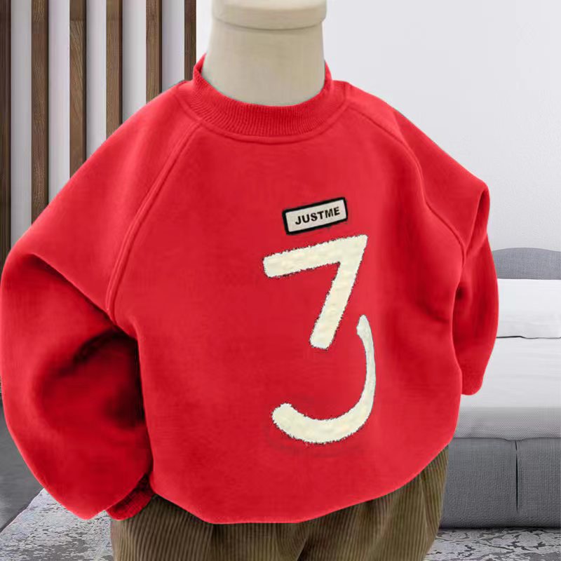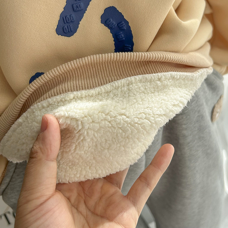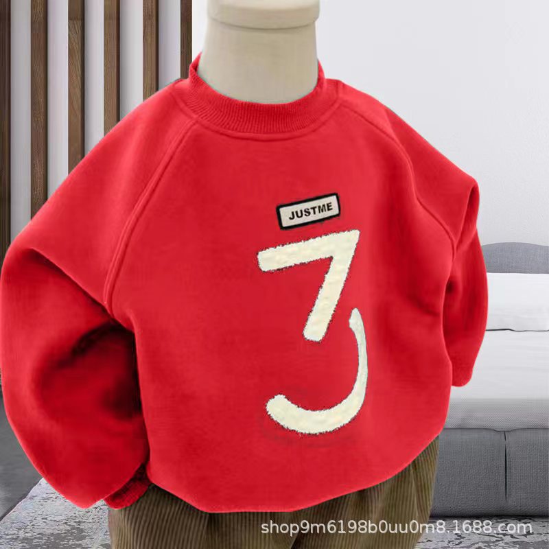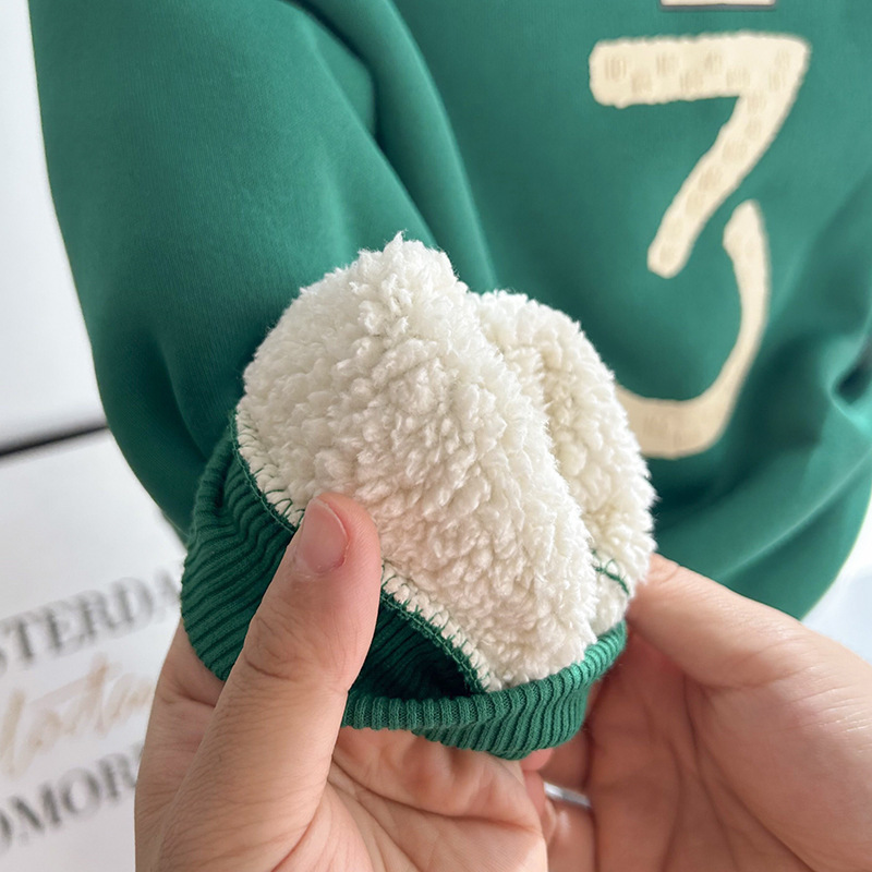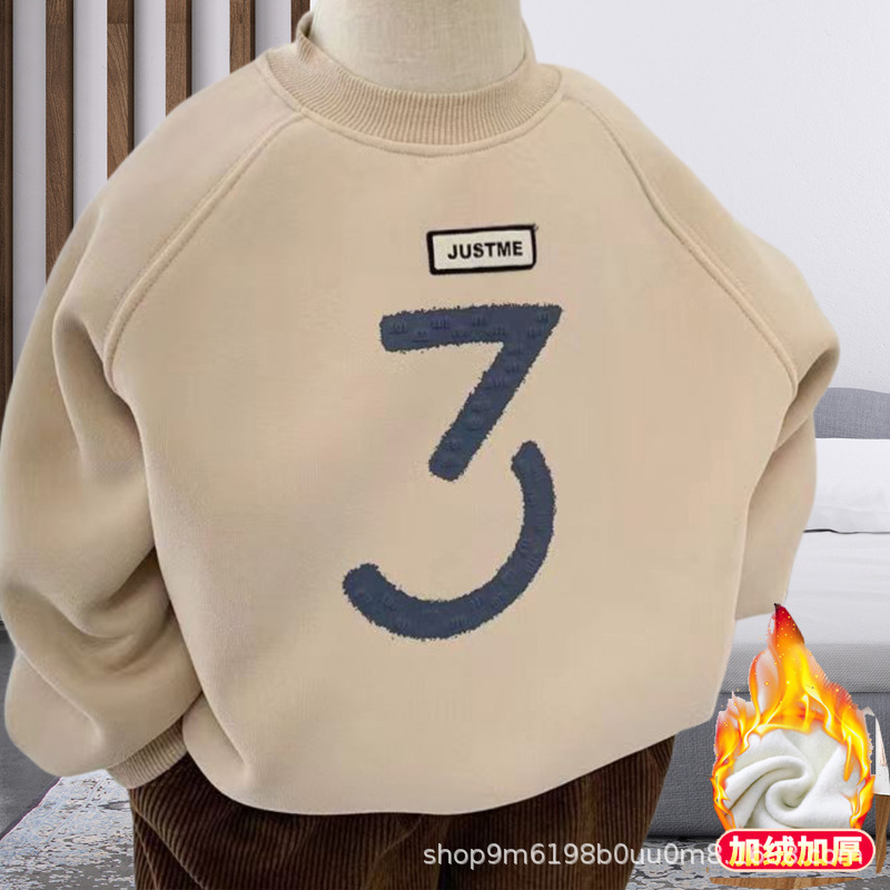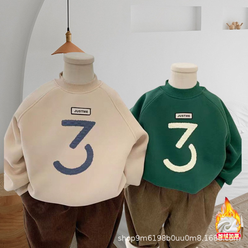 아동복 벨벳 두꺼운 소년 라운드 넥 스웨트 셔츠 23 겨울 새 스타일 소녀 따뜻한 문자 대비 색상 한국 스타일 탑 유행스토어 가기