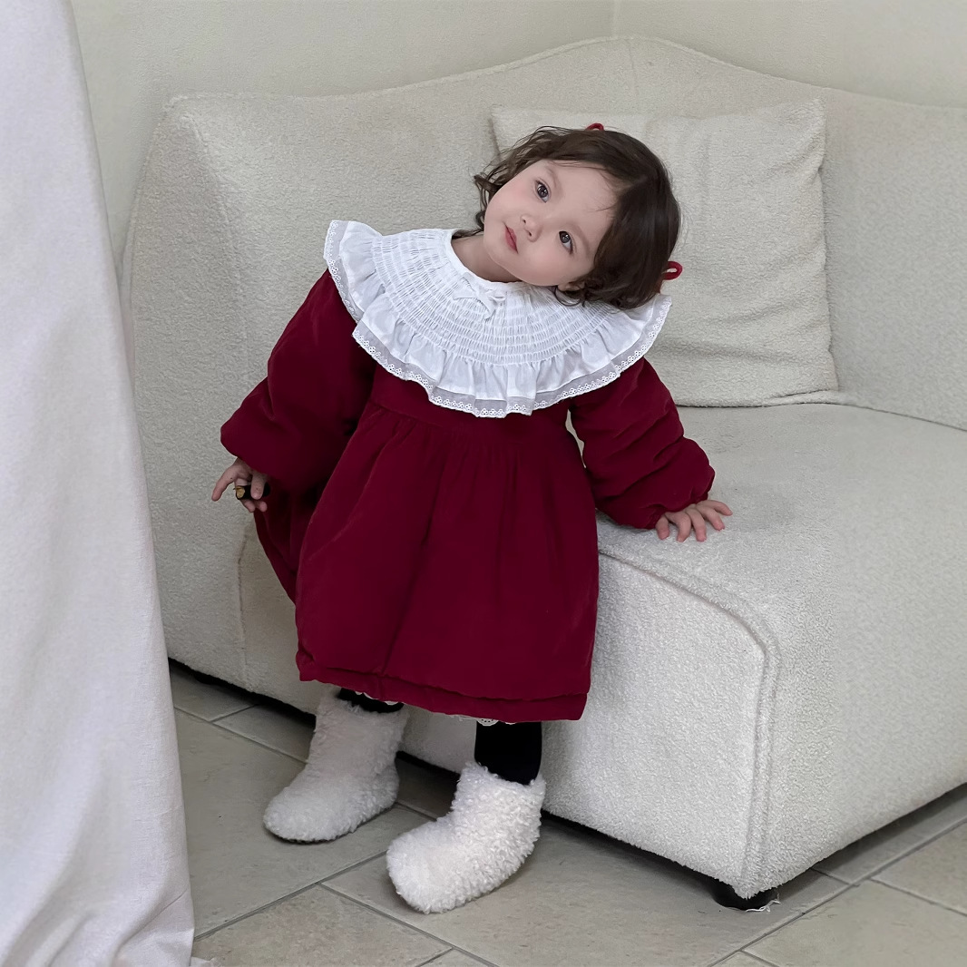 어린이 겨울옷 아기 두꺼운 원피스 한국 스타일 아동복 아기 플리스 스커트 여자아이 면옷