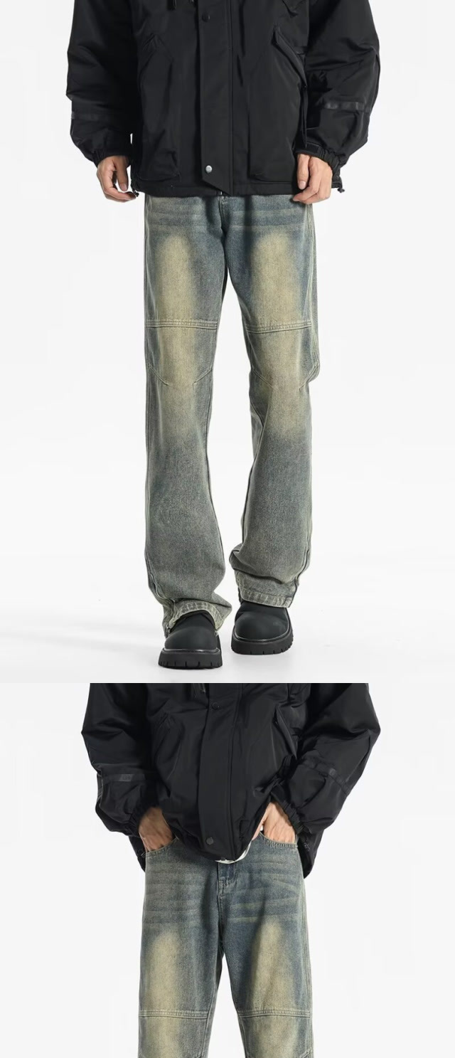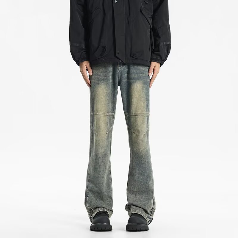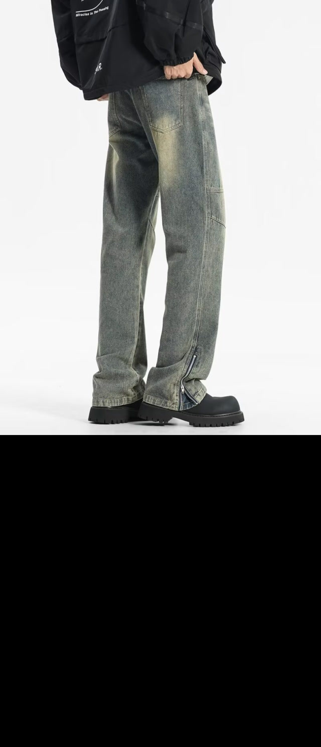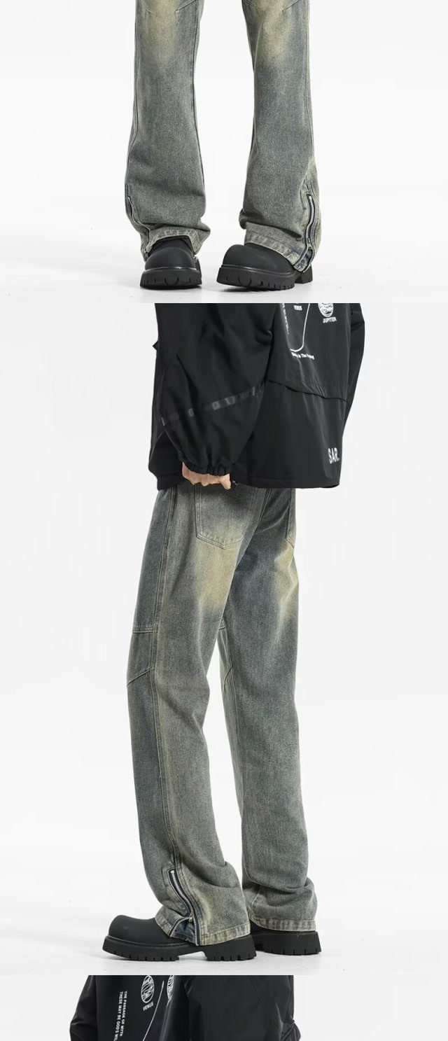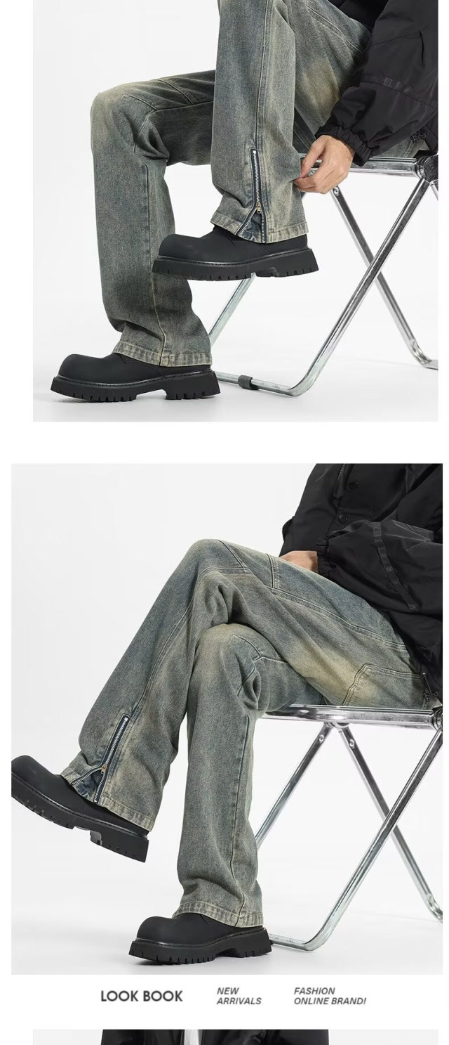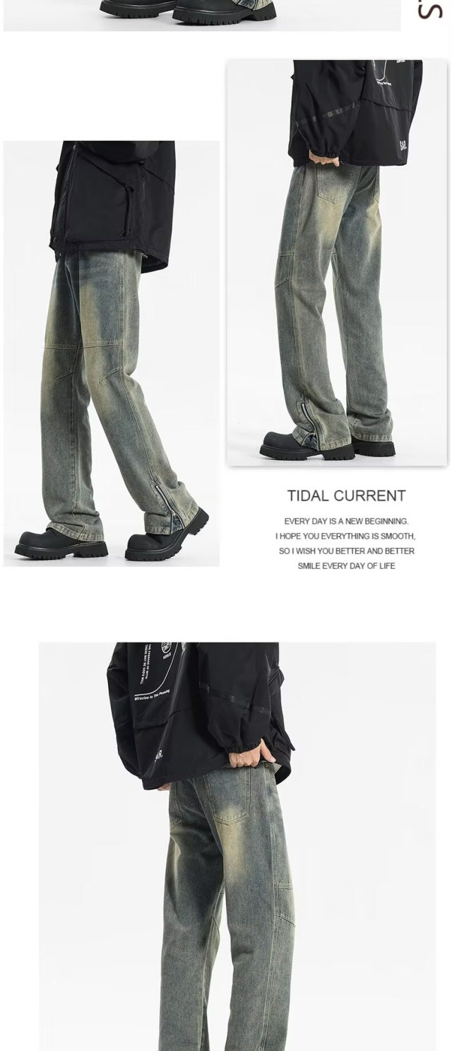 트렌디 한 멀티 포켓 데님 스포츠 복고풍 스티칭 청바지 지퍼가있는 남녀 하이 스트리트 바지스토어 가기