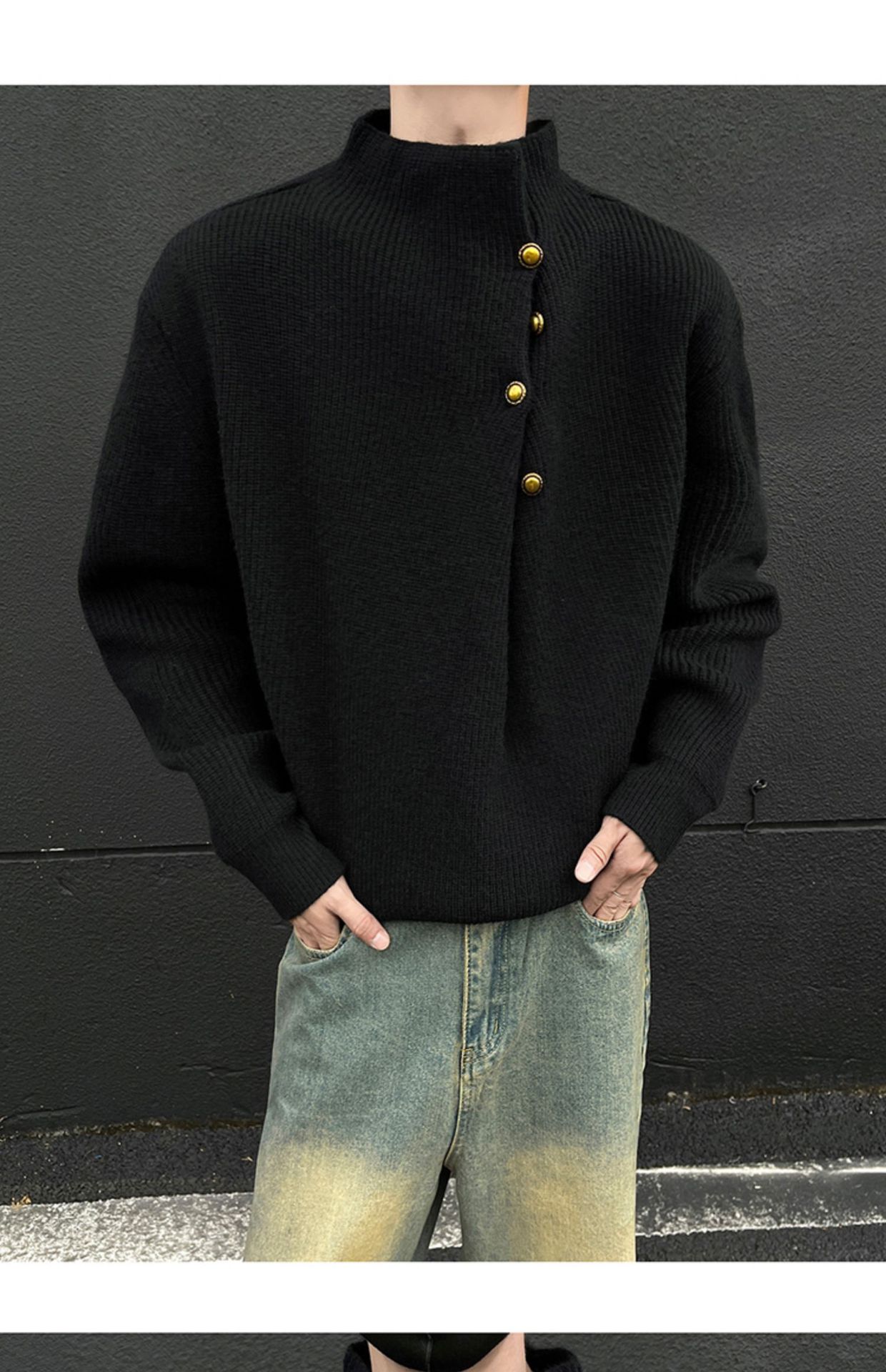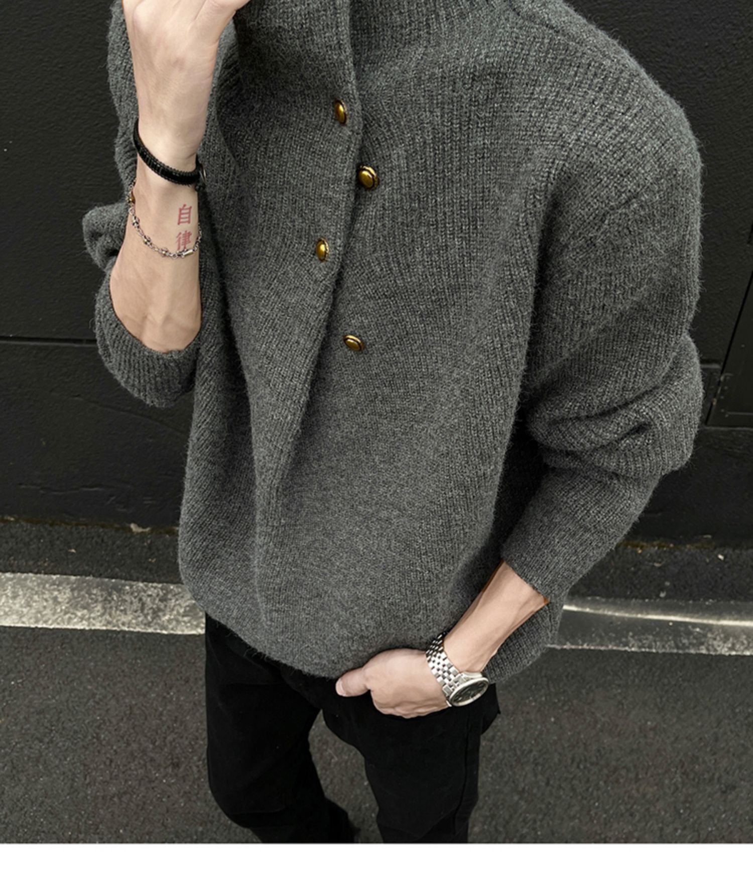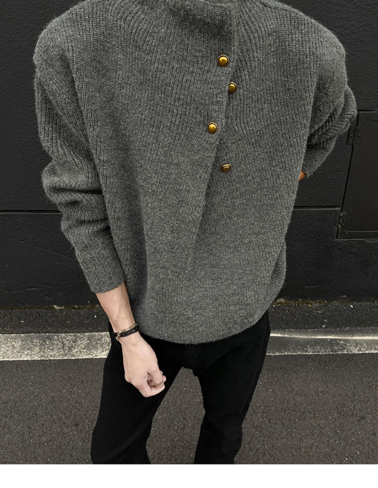 불규칙한 버튼 디자인 센스 터틀넥 스웨터 남자 한국 스타일 트렌디 브랜드 표절 잘 생긴 게으른 오버 사이즈 스웨터 탑
