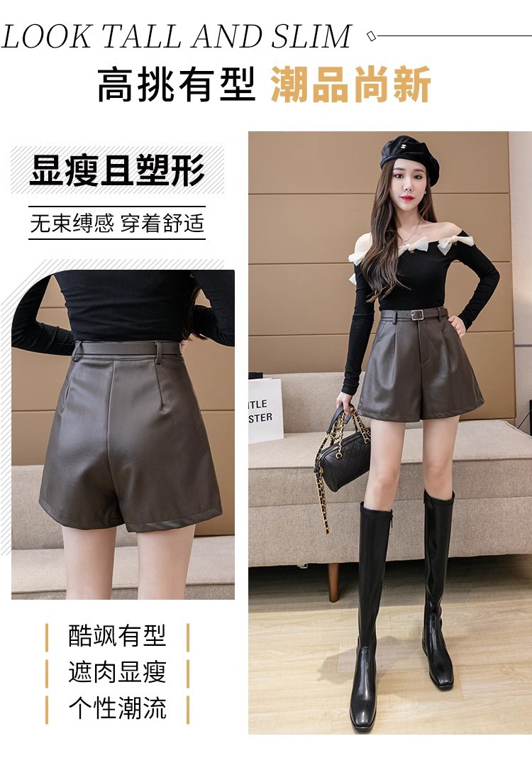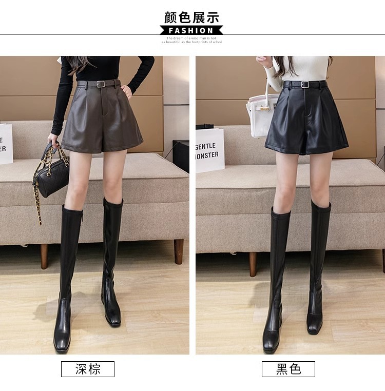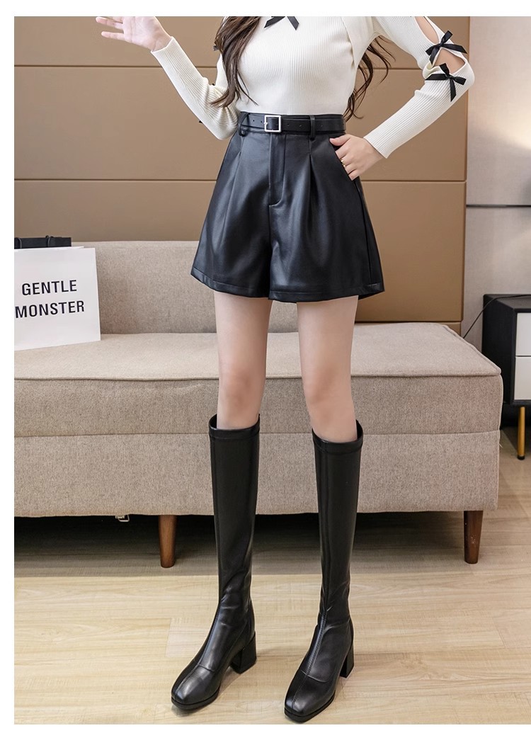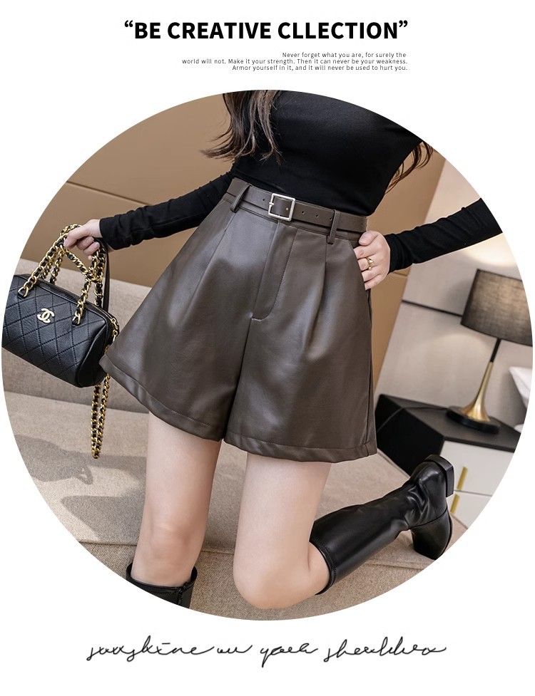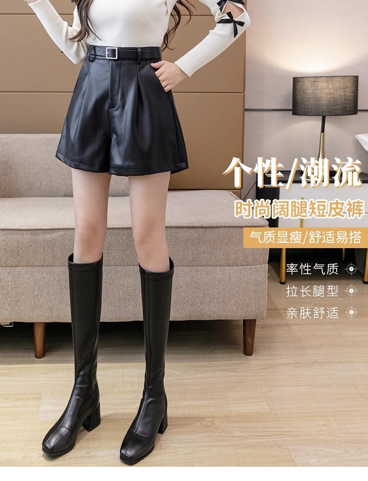 블랙 PU 가죽 반바지 여성용 2025 가을 겨울 신상 캐주얼 하이웨이스트 슬림 패션 루즈 와이드 레그 가죽 바지스토어 가기