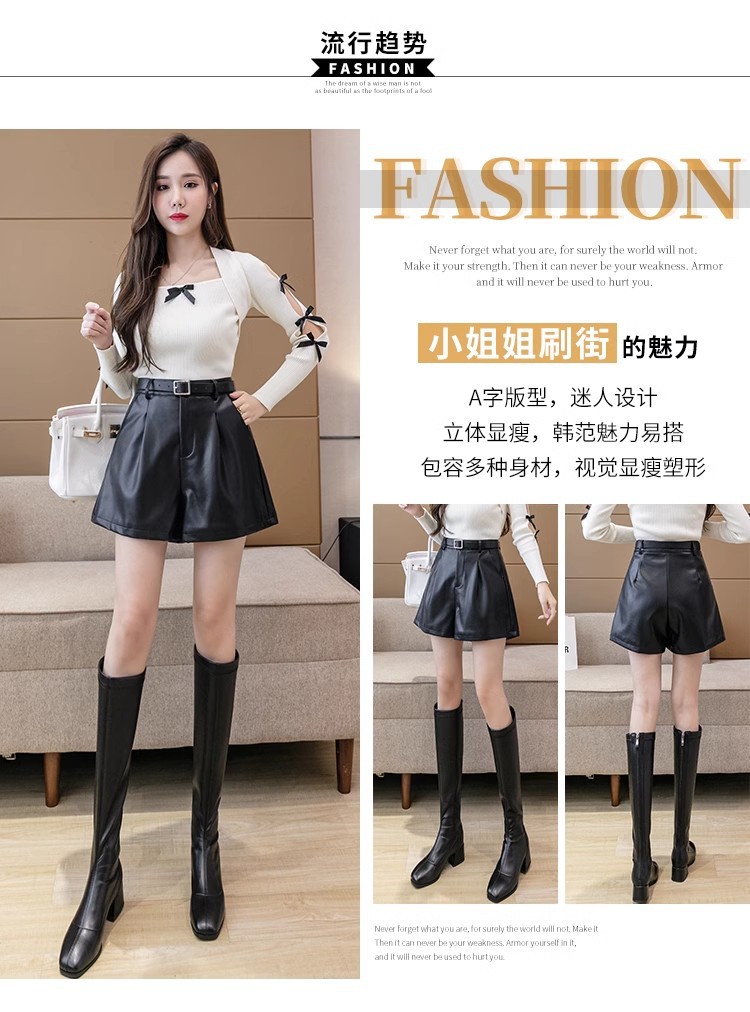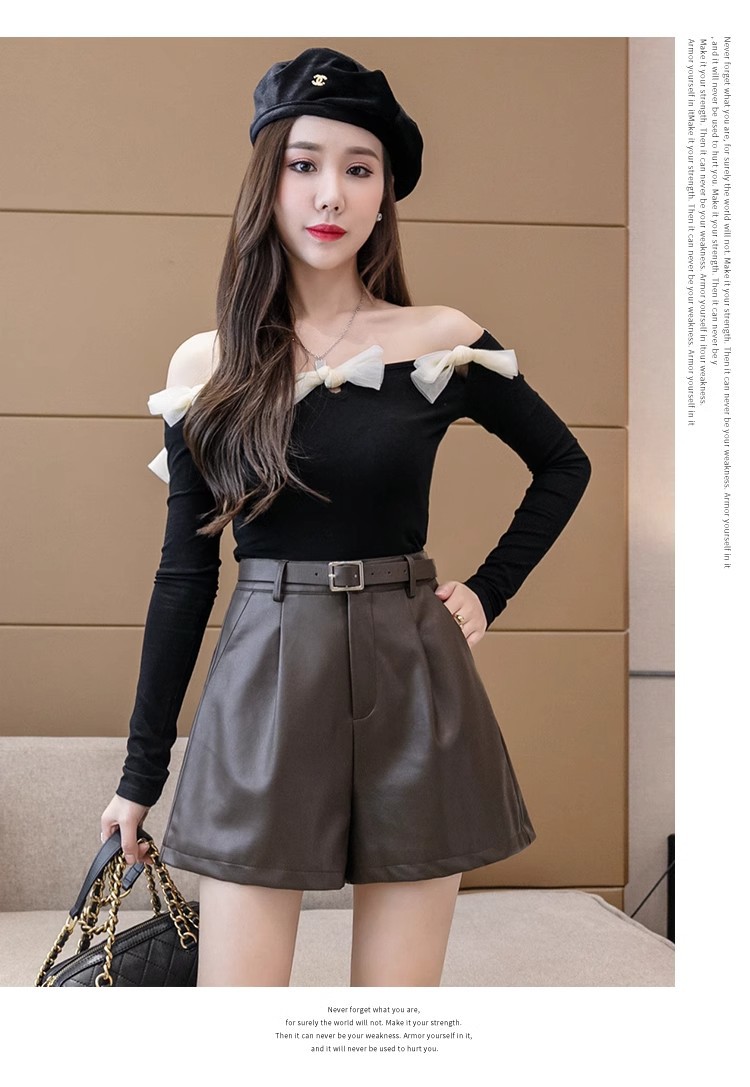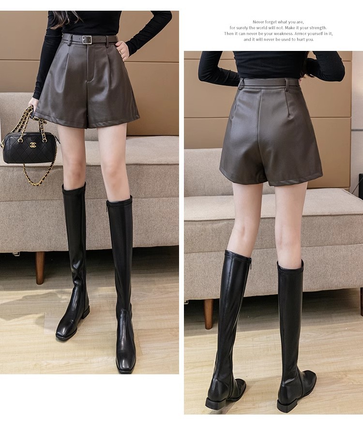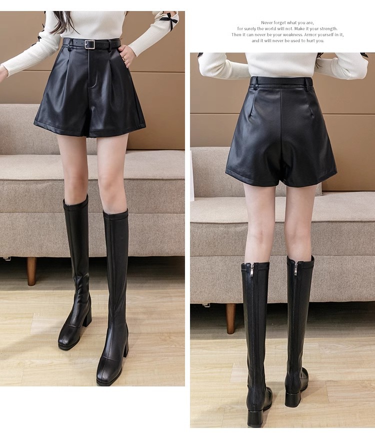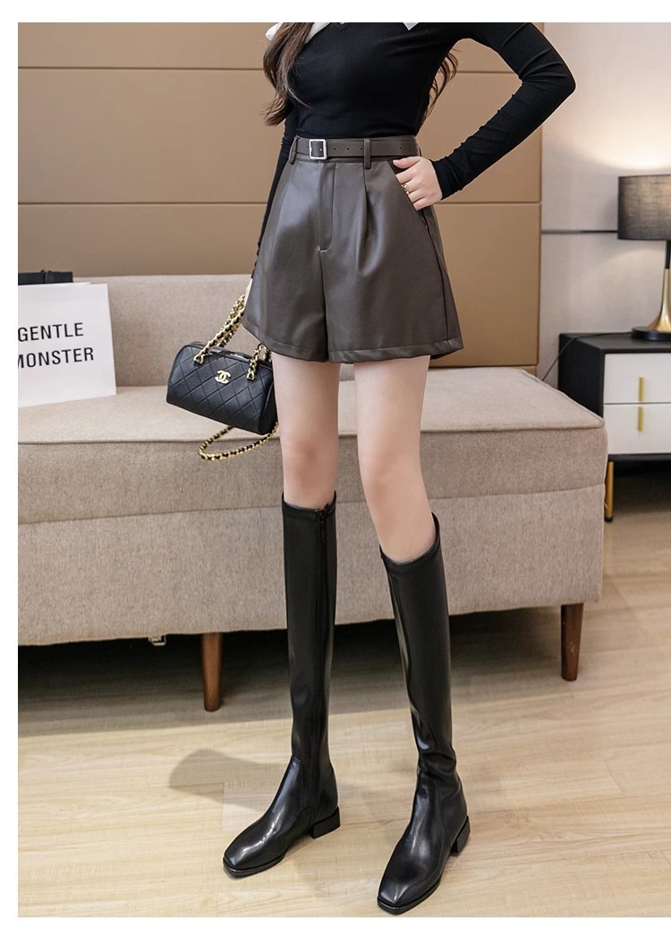 블랙 PU 가죽 반바지 여성용 2025 가을 겨울 신상 캐주얼 하이웨이스트 슬림 패션 루즈 와이드 레그 가죽 바지스토어 가기