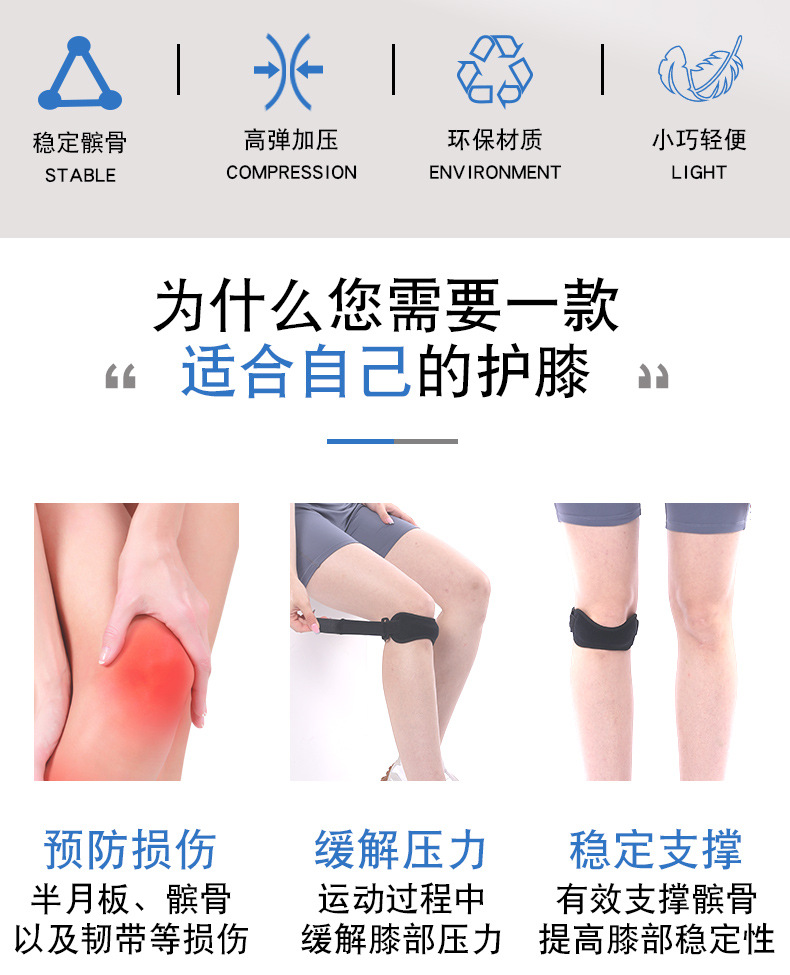 스포츠 및 피트니스 실리콘 가압 슬개골 벨트 배드민턴 사이클링 등산 통기성 충격 흡수 남성 및 여성 러닝 무릎 패드 재고 있음스토어 가기